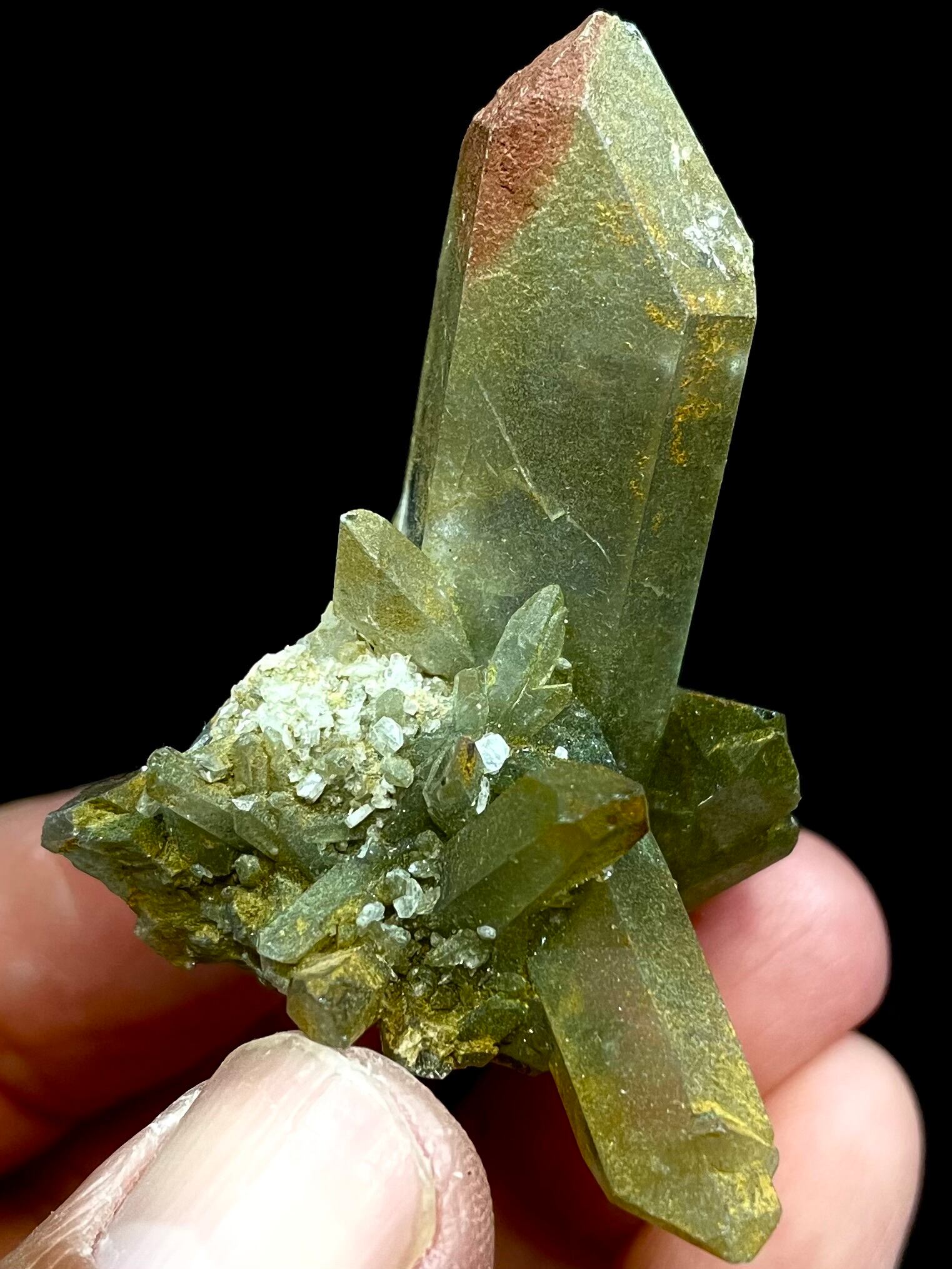 品種によっては、ヘマタイト、クロライト、ルチルなどの他の鉱物を内包し、形而上学的な特性を高めているものもあります。