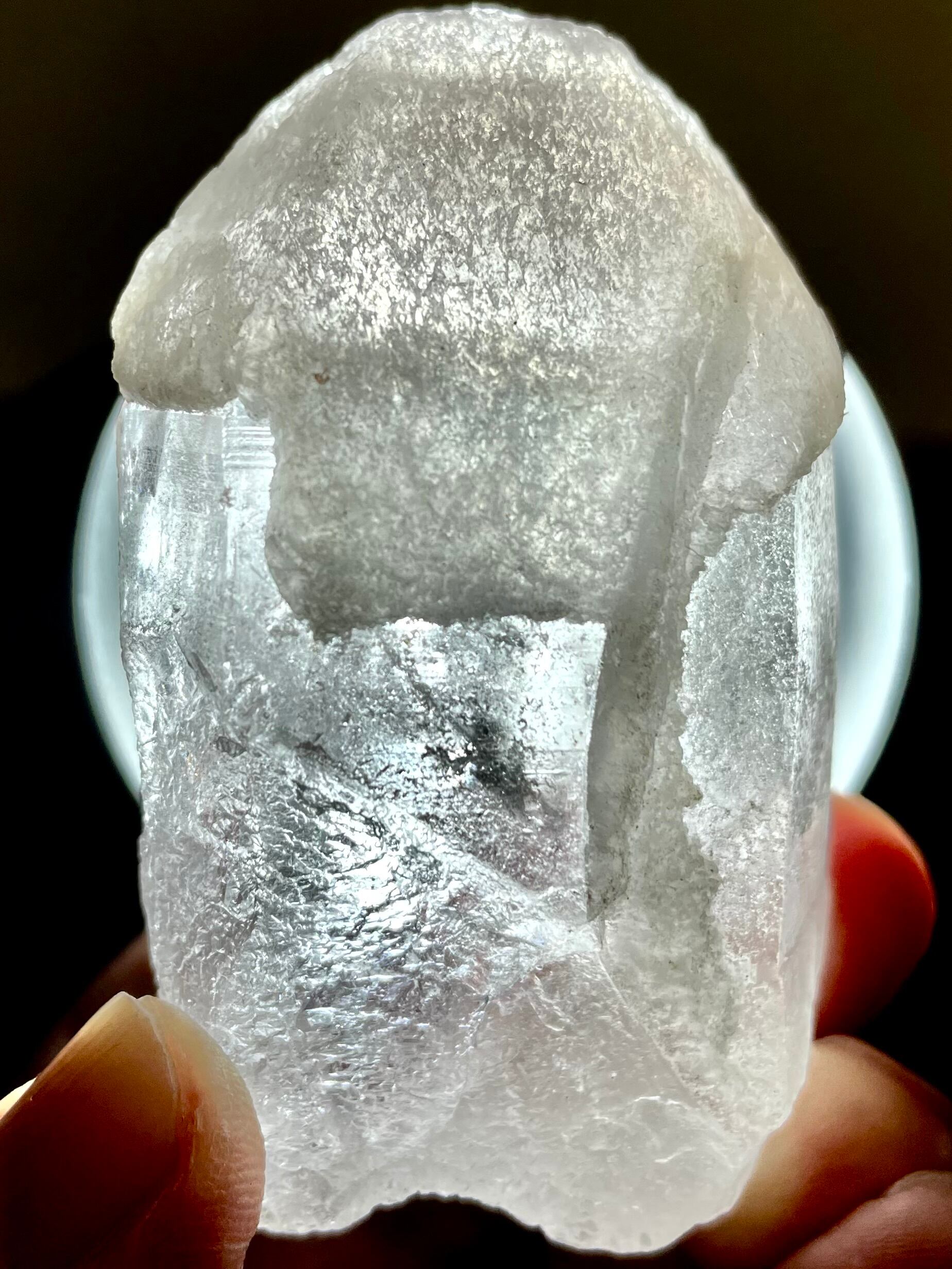 この「ドリーム・シクル」は、水晶の上に雪の帽子を被ったように白い水晶が育っています。