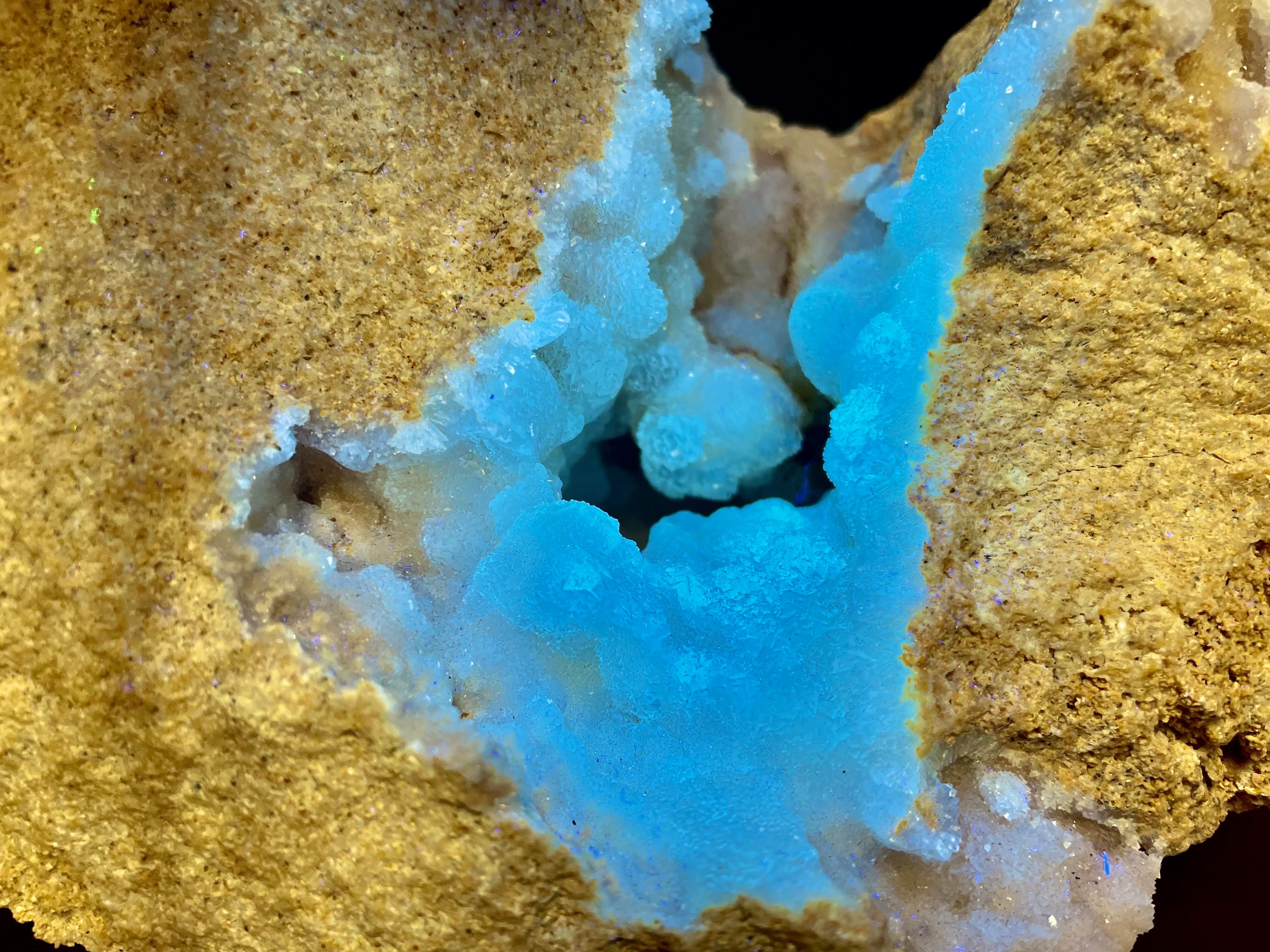 紫外線ライト(365nm)で青白く蛍光します。