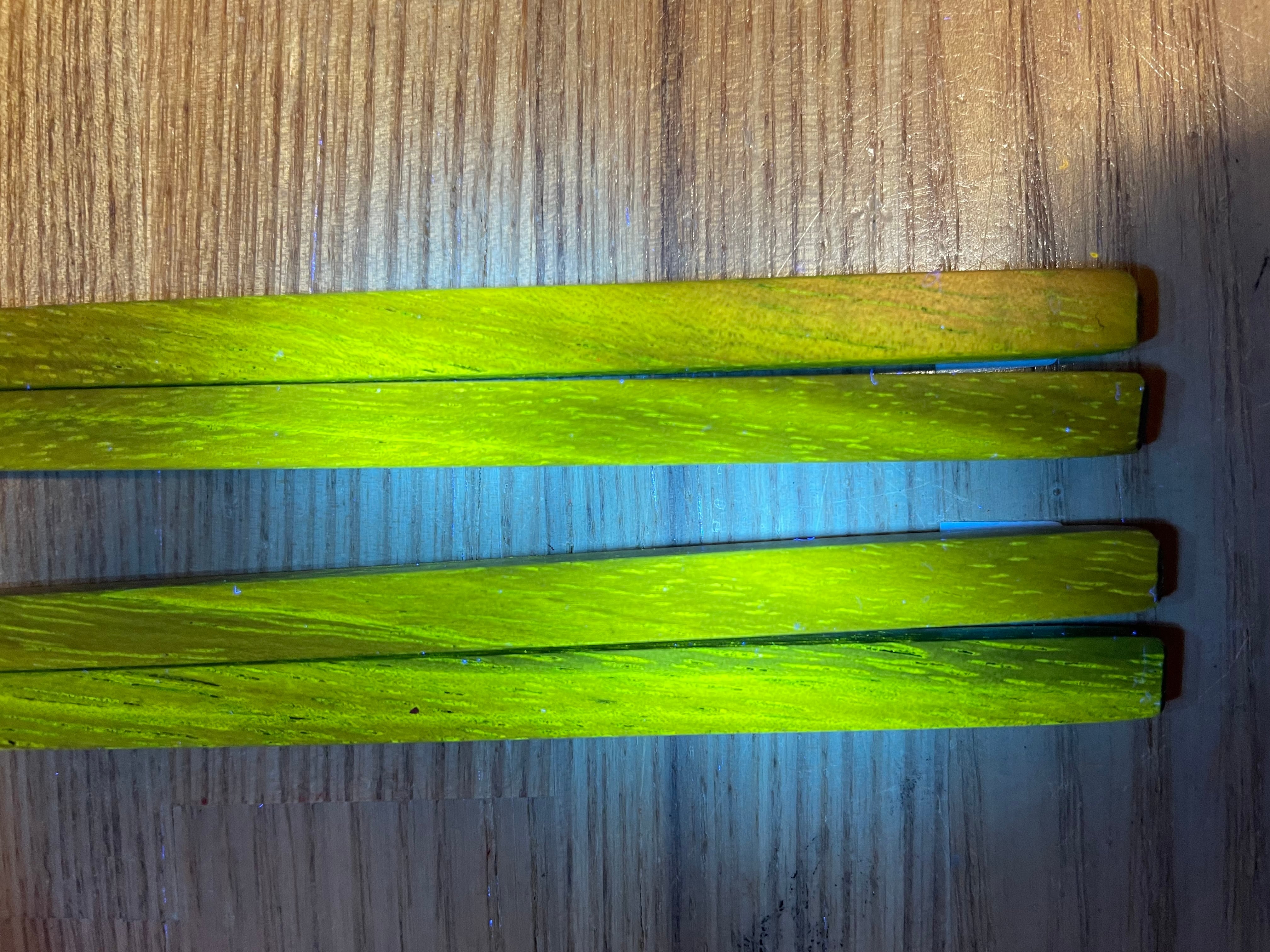 「コアウッド」は紫外線ライトを照射すると黄金色に蛍光する特性がある珍しい木でもあります。