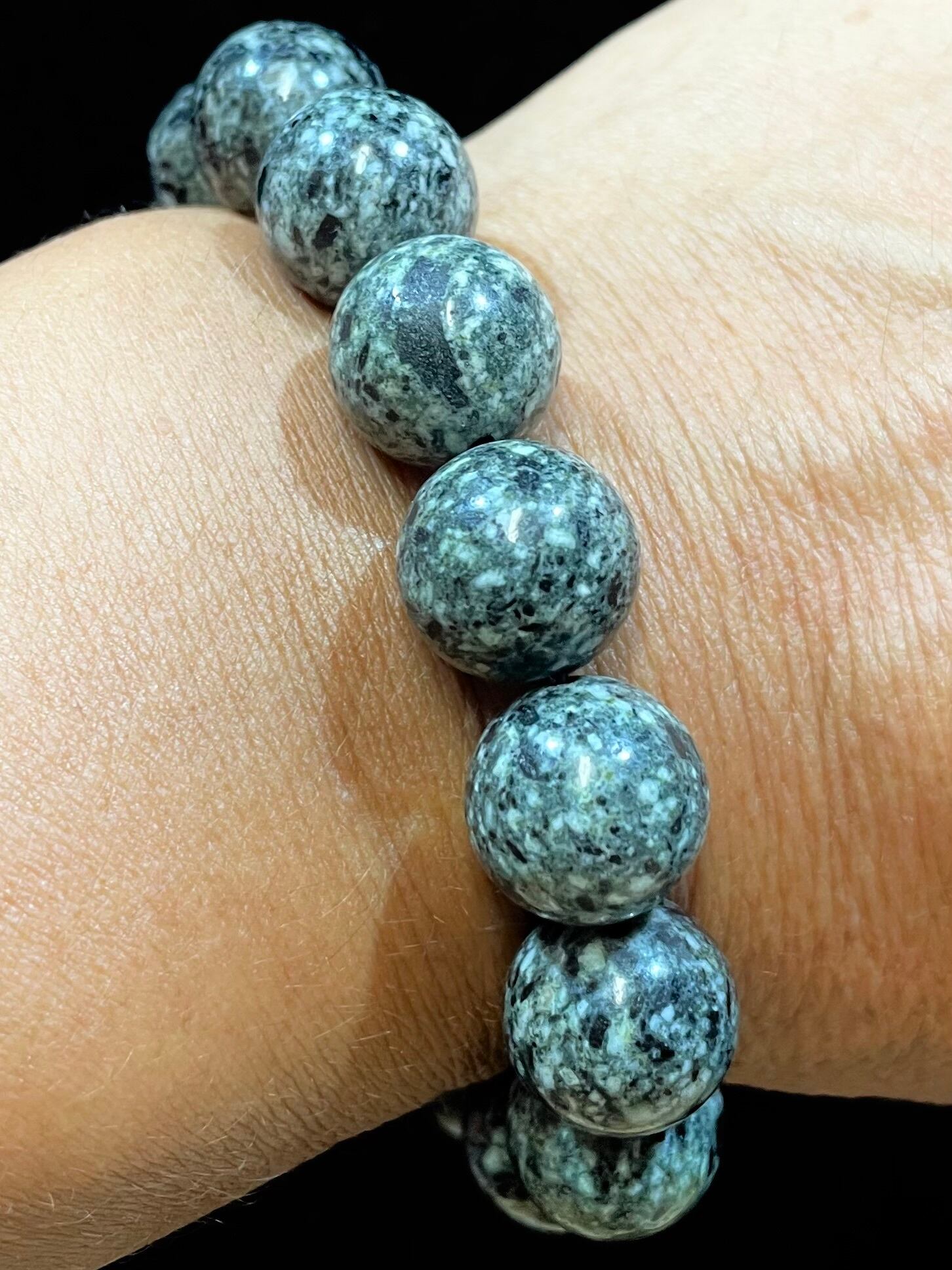 1) 霊石「遠野の石」14mmビーズ・ブレスレット