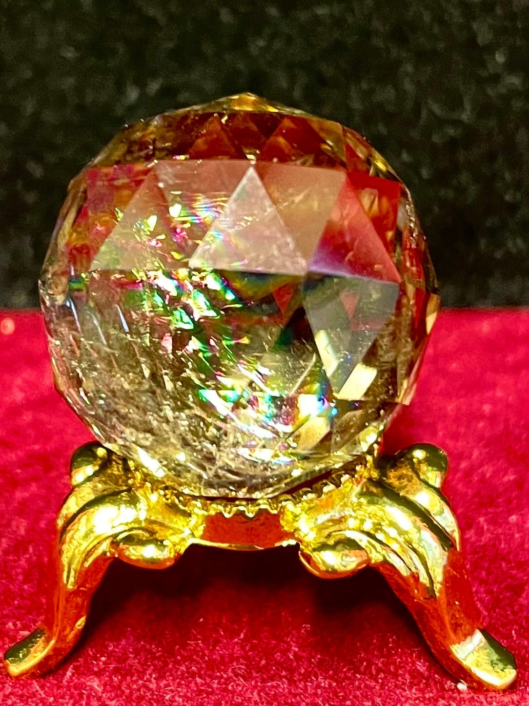 3) 美品!レインボー「スモーキー・クオーツ」多面体カット・ミニスフィア(台座付き)