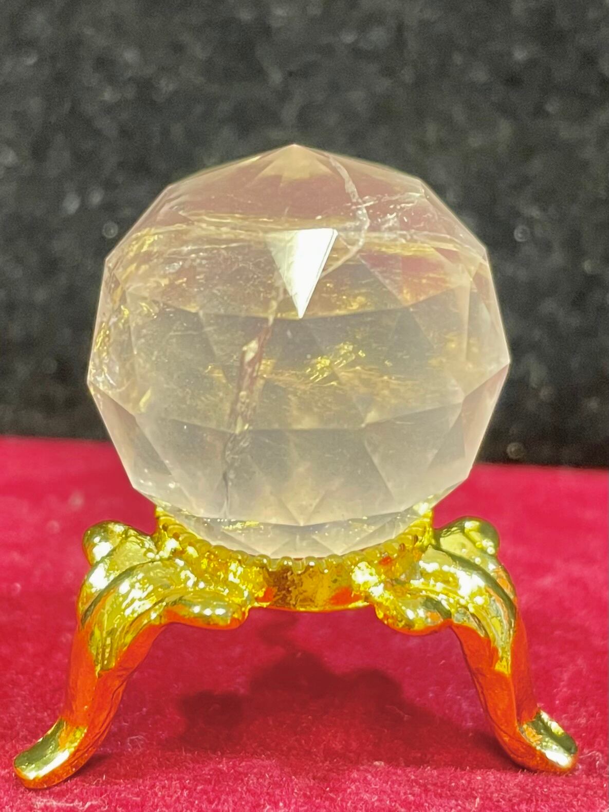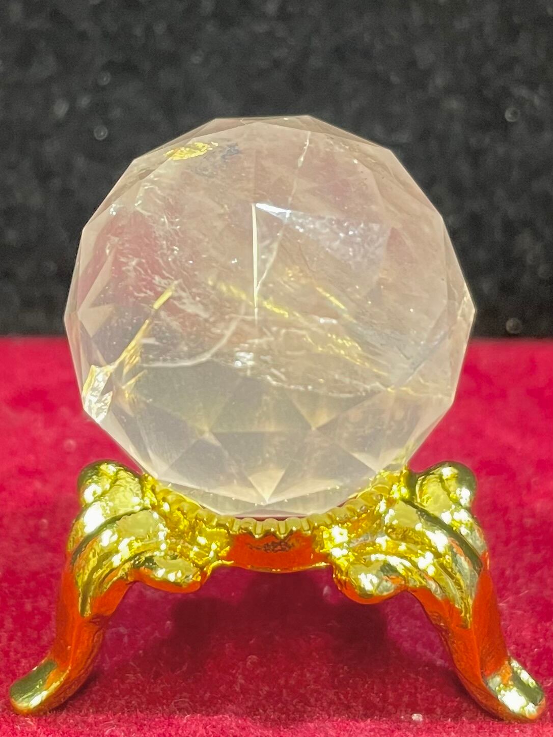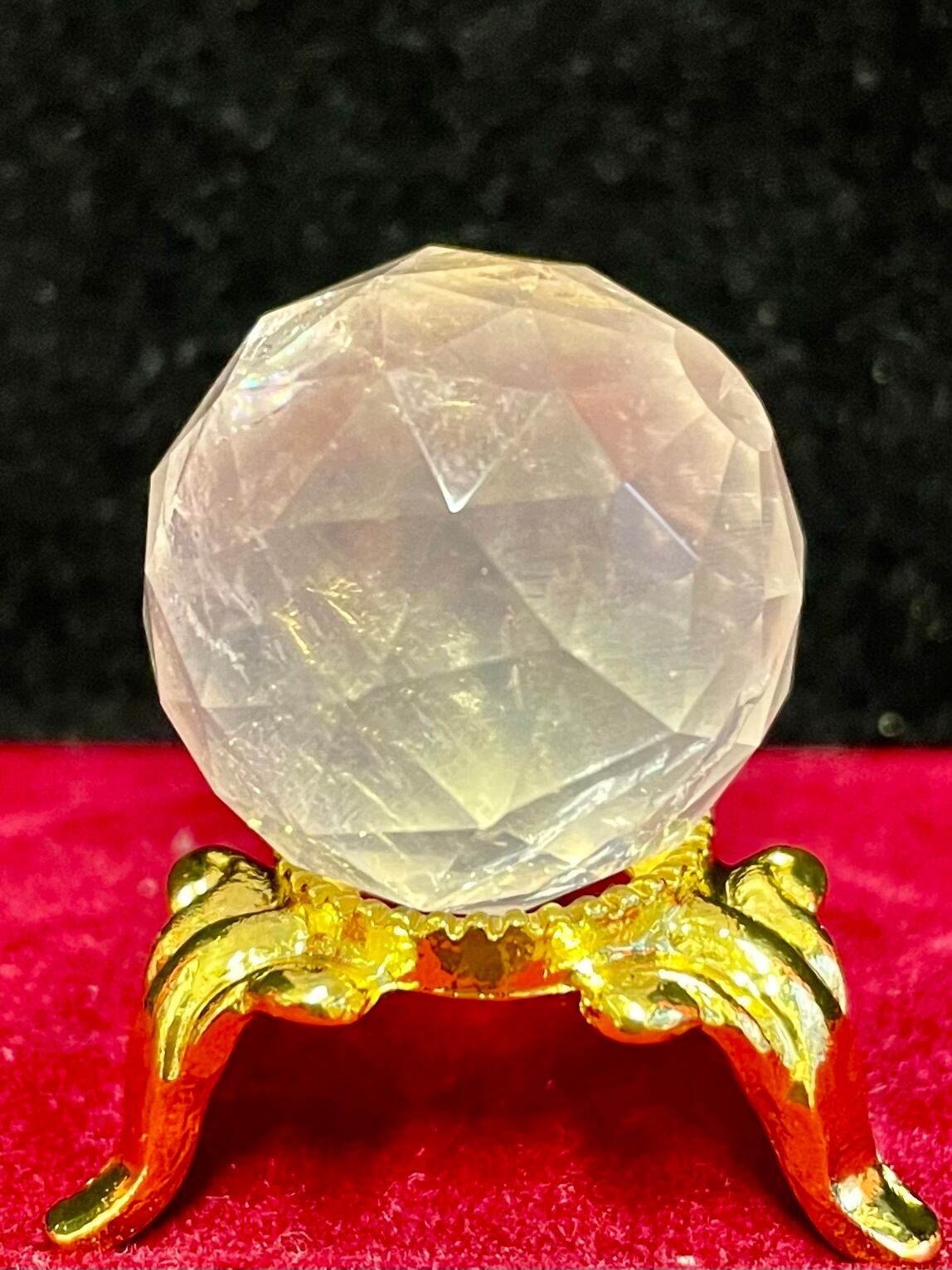 1) 美品!「ローズ・クオーツ」多面体カット・ミニスフィア(台座付き)