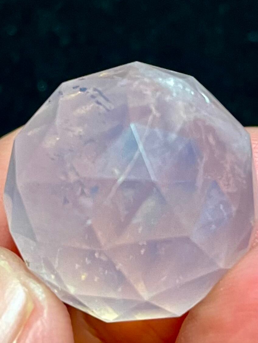 3) 美品!「ローズ・クオーツ」多面体カット・ミニスフィア(台座付き)