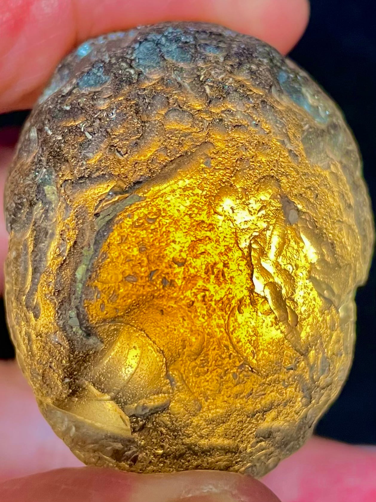 隕石が地球に落下衝突した際の熱とエネルギー、衝撃波で変形形成されたオブシディアン(天然ガラス)の「モルダバイト」「リビアングラス」「チンターマニ」「アグニマニタイト」などと同じ「インパクトガラス」といわれている「コロンビアナイト」。
