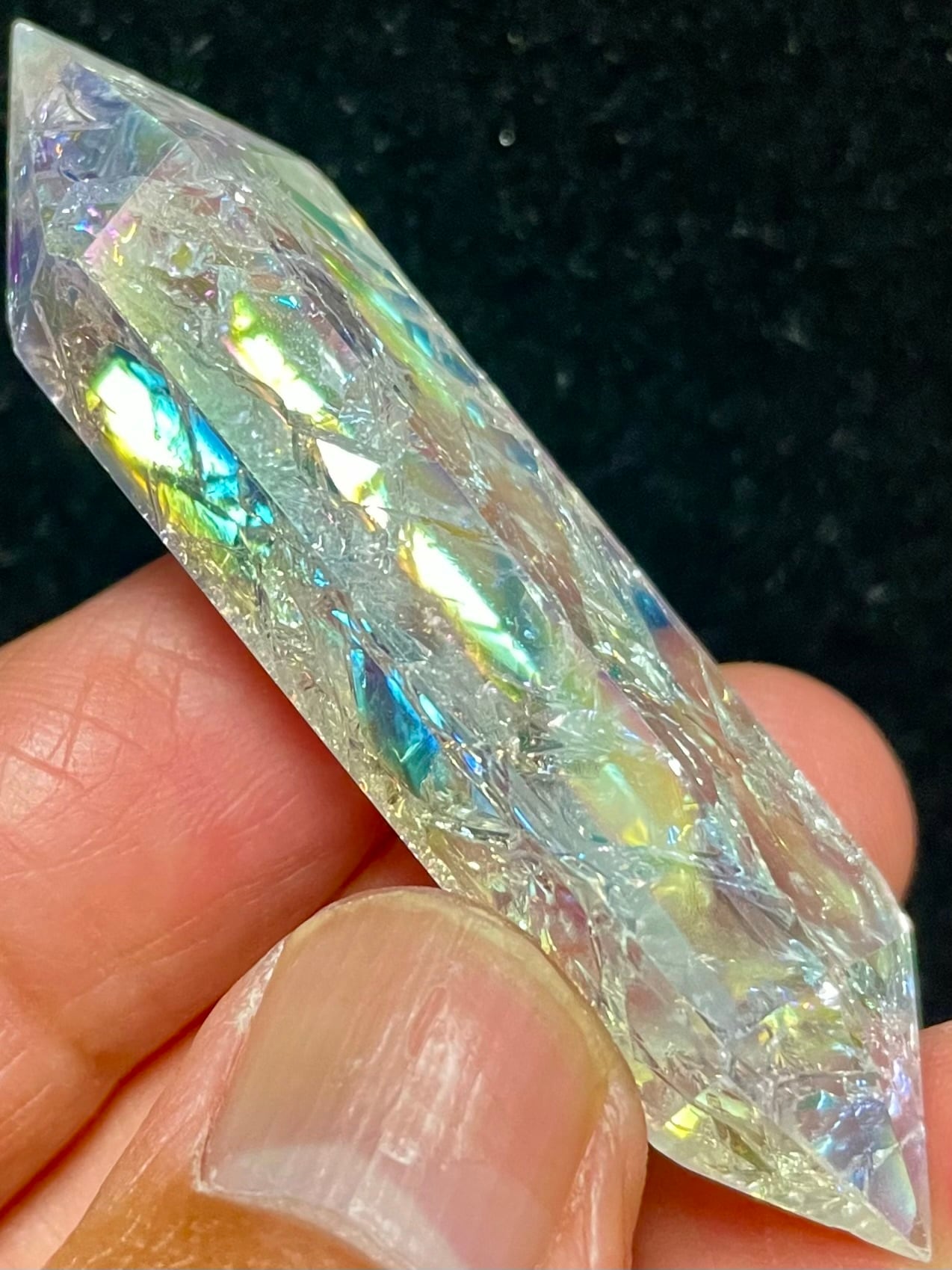 人工的にクラックを入れ、オーラ加工を施して、エネルギーレベルを上げている水晶です。
