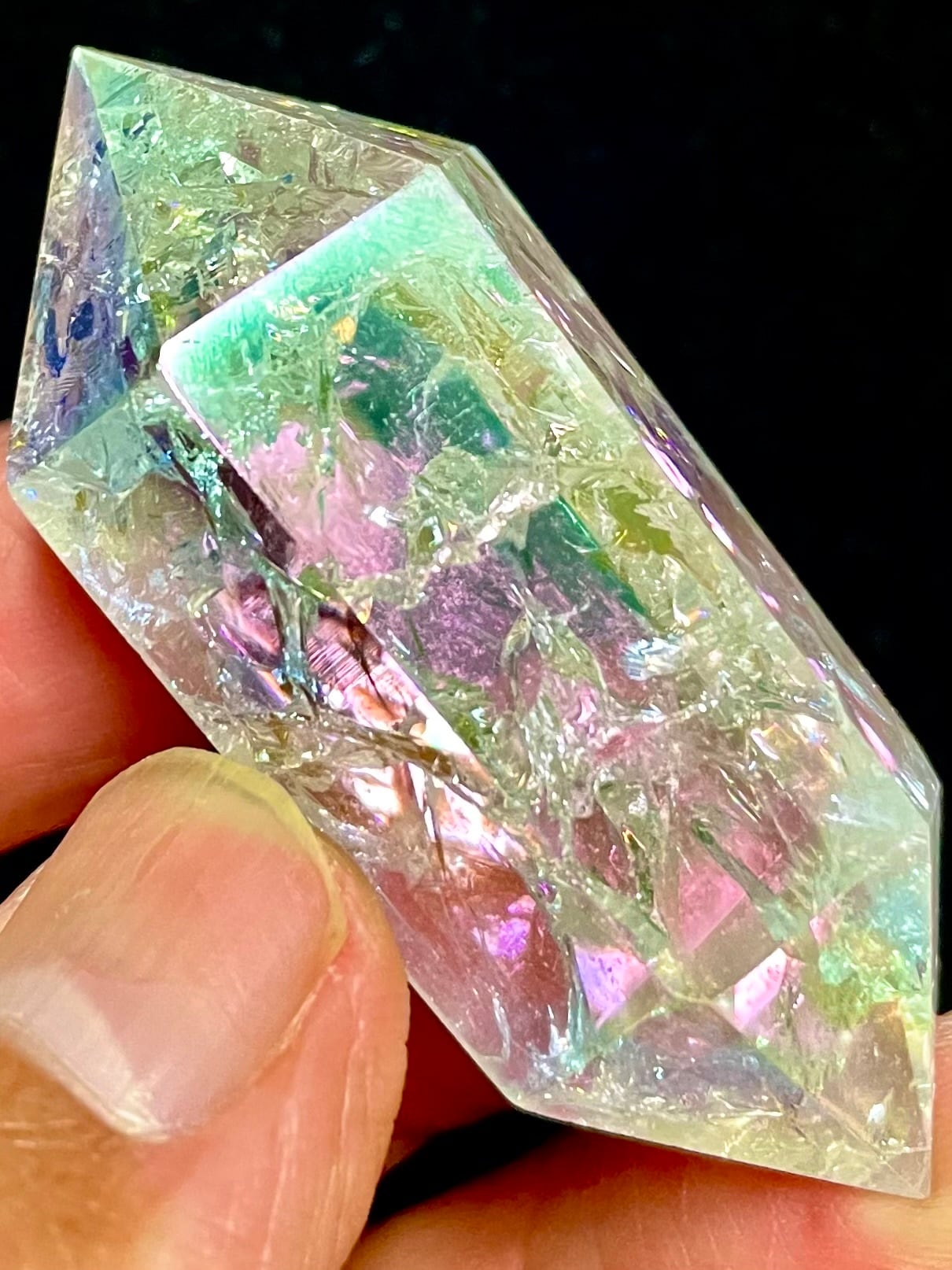 人工的にクラックを入れ、オーラ加工を施して、エネルギーレベルを上げている水晶です。