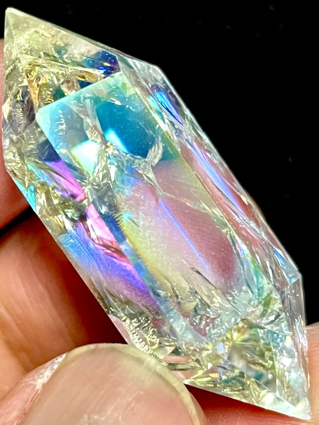 人工的にクラックを入れ、オーラ加工を施して、エネルギーレベルを上げている水晶です。
