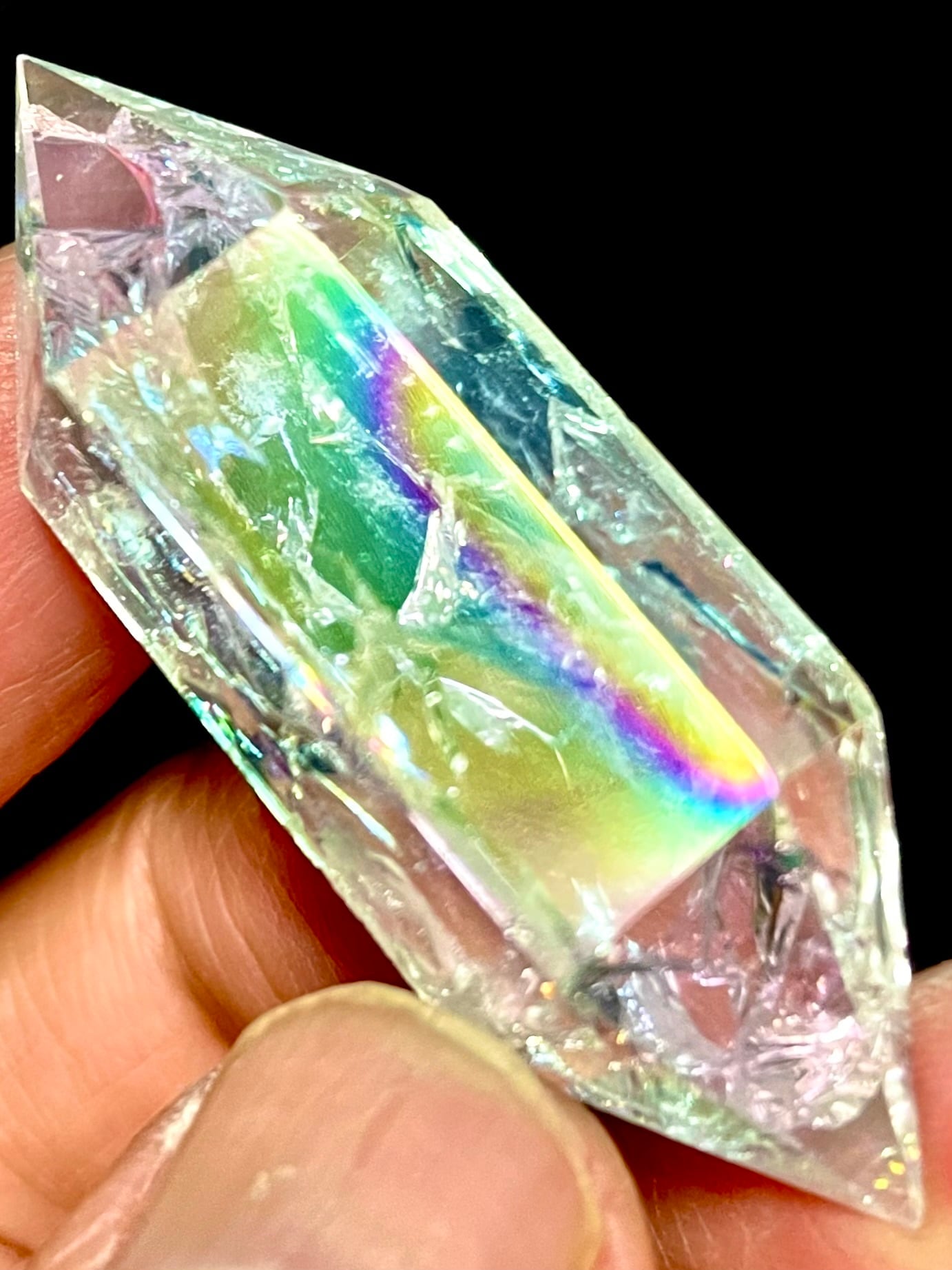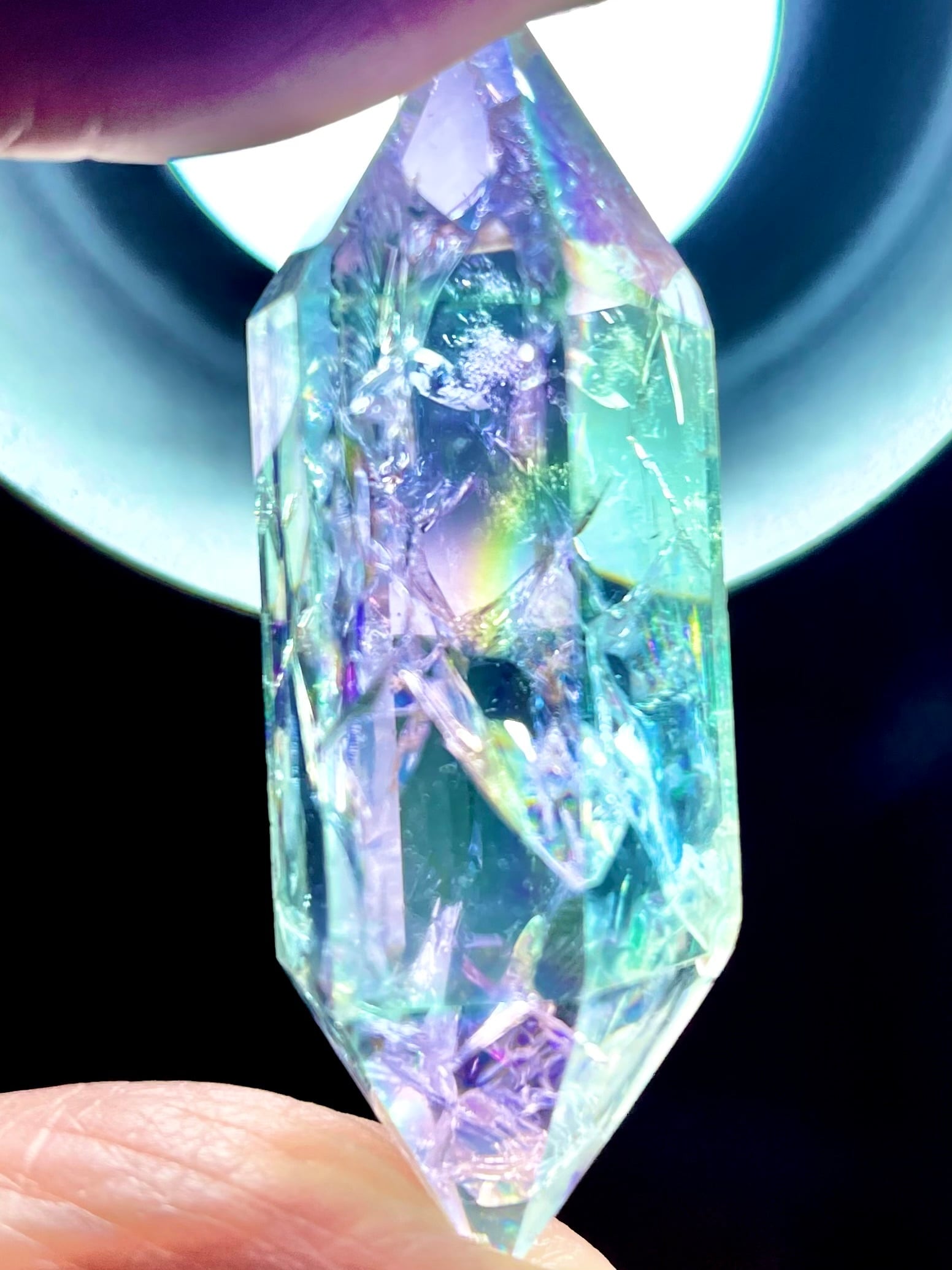 人工的にクラックを入れ、オーラ加工を施して、エネルギーレベルを上げている水晶です。
