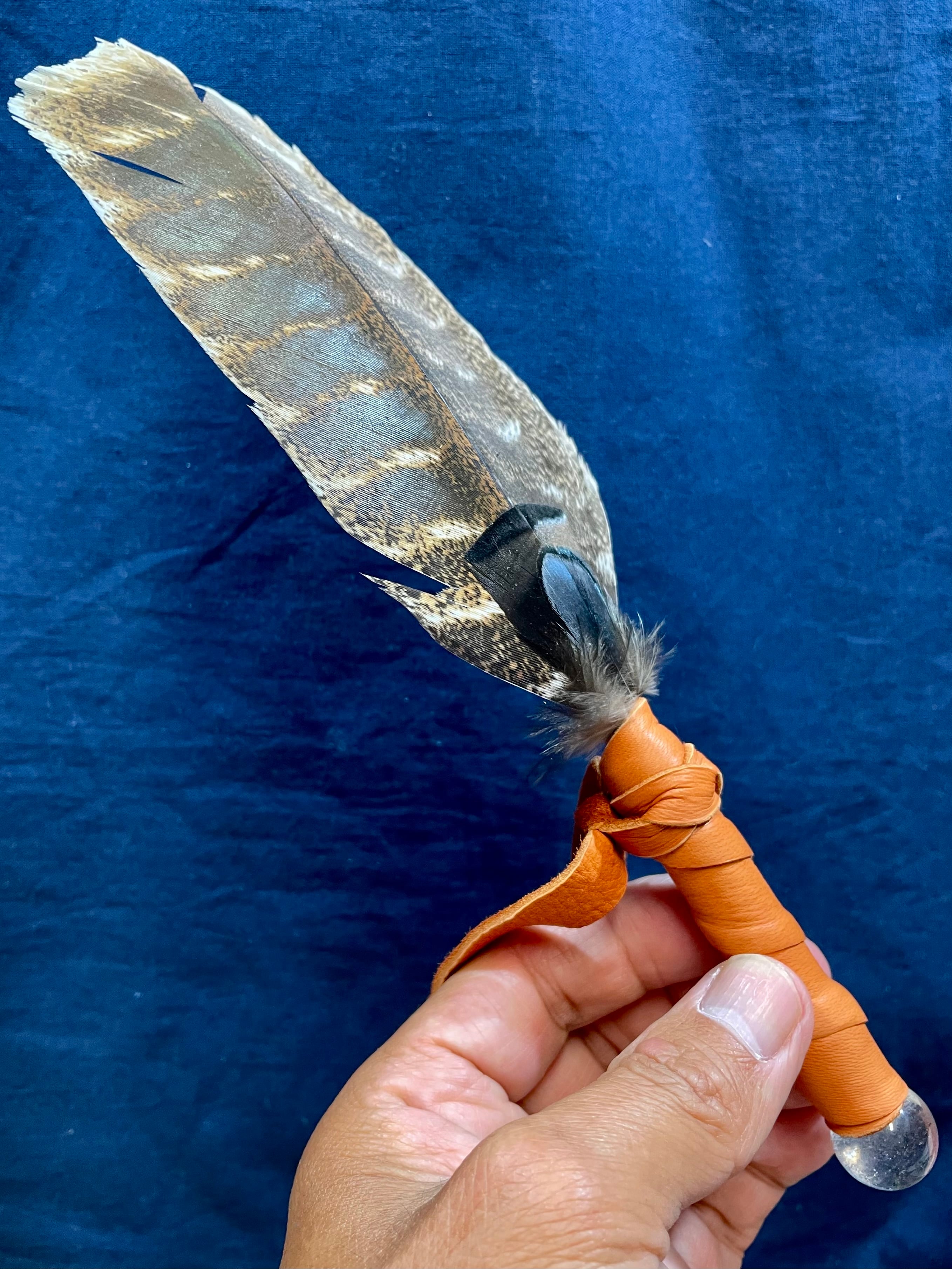 セージやパロサントなどのハーブと併用することで、羽根は煙を漂わせ導き、停滞したエネルギーや負のエネルギーを掃き清めます。羽根の掃くような動きは、飛翔する鳥の浄化作用を映し出しています。