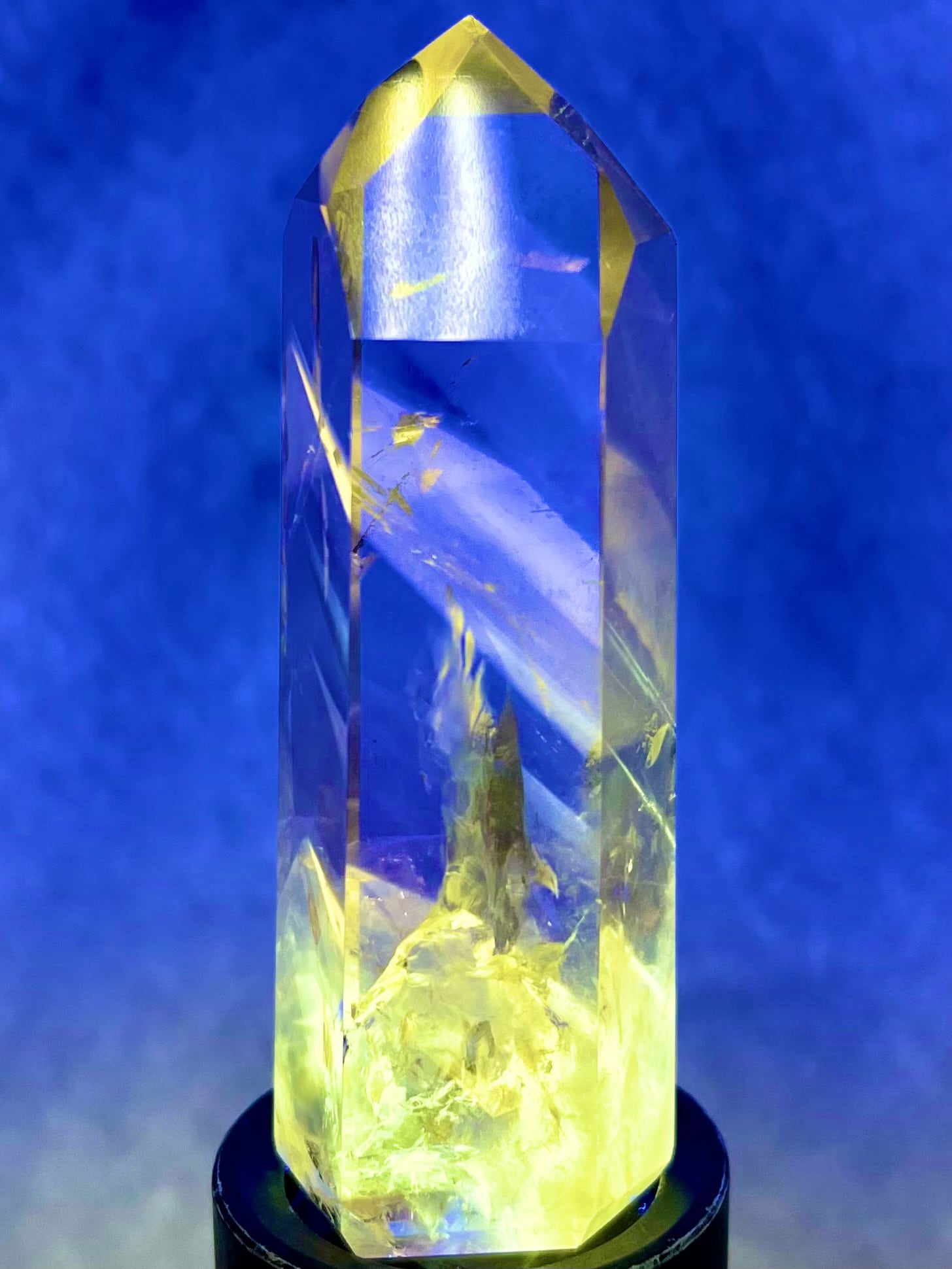 蛍光特性により高次元との繋がりが増幅され、瞑想やスピリットガイド・ハイヤーセルフからのメッセージ受容に極めて有効な補助となります。