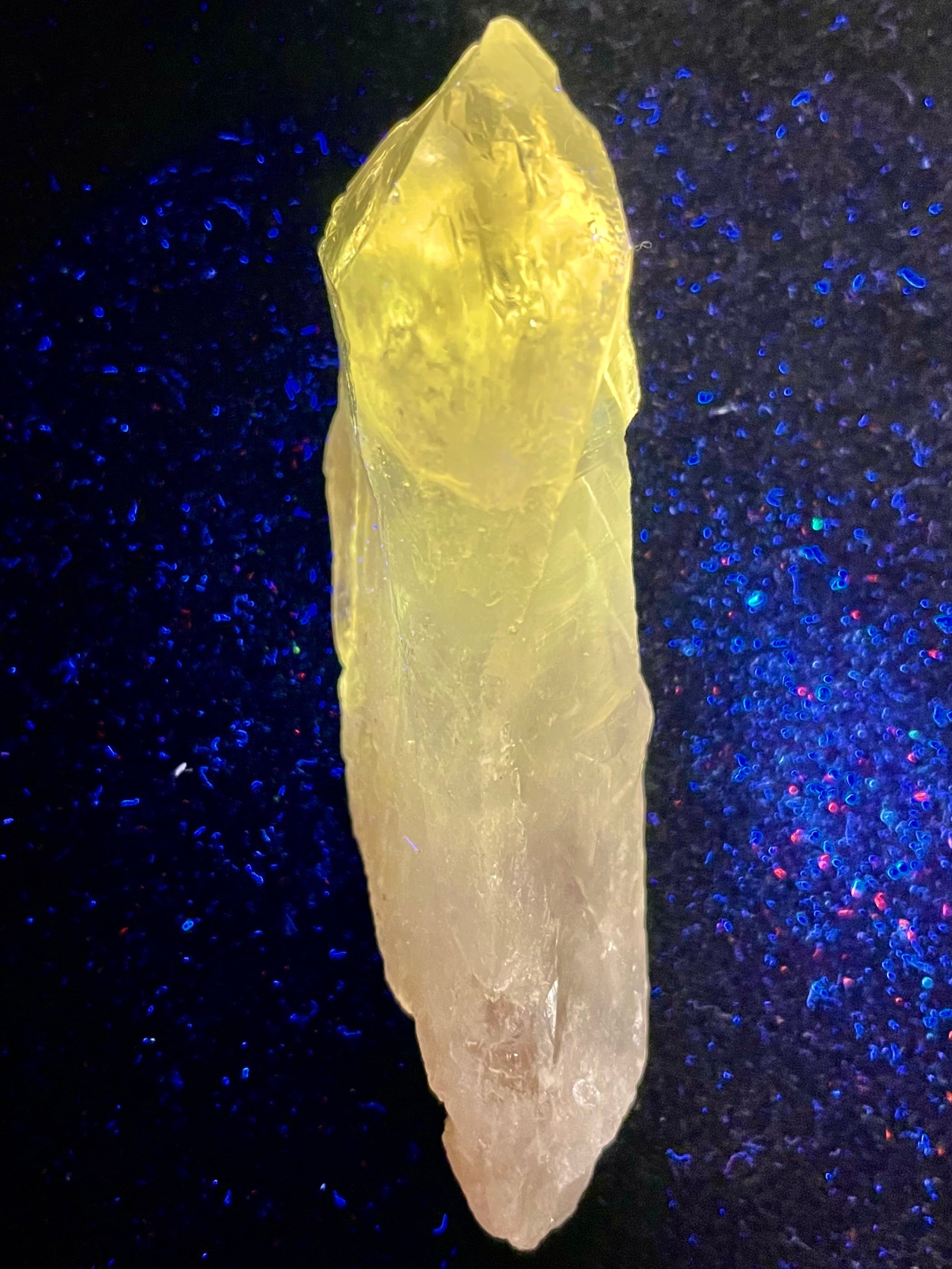 蛍光特性により高次元との繋がりが増幅され、瞑想やスピリットガイド・ハイヤーセルフからのメッセージ受容に極めて有効な補助となります。