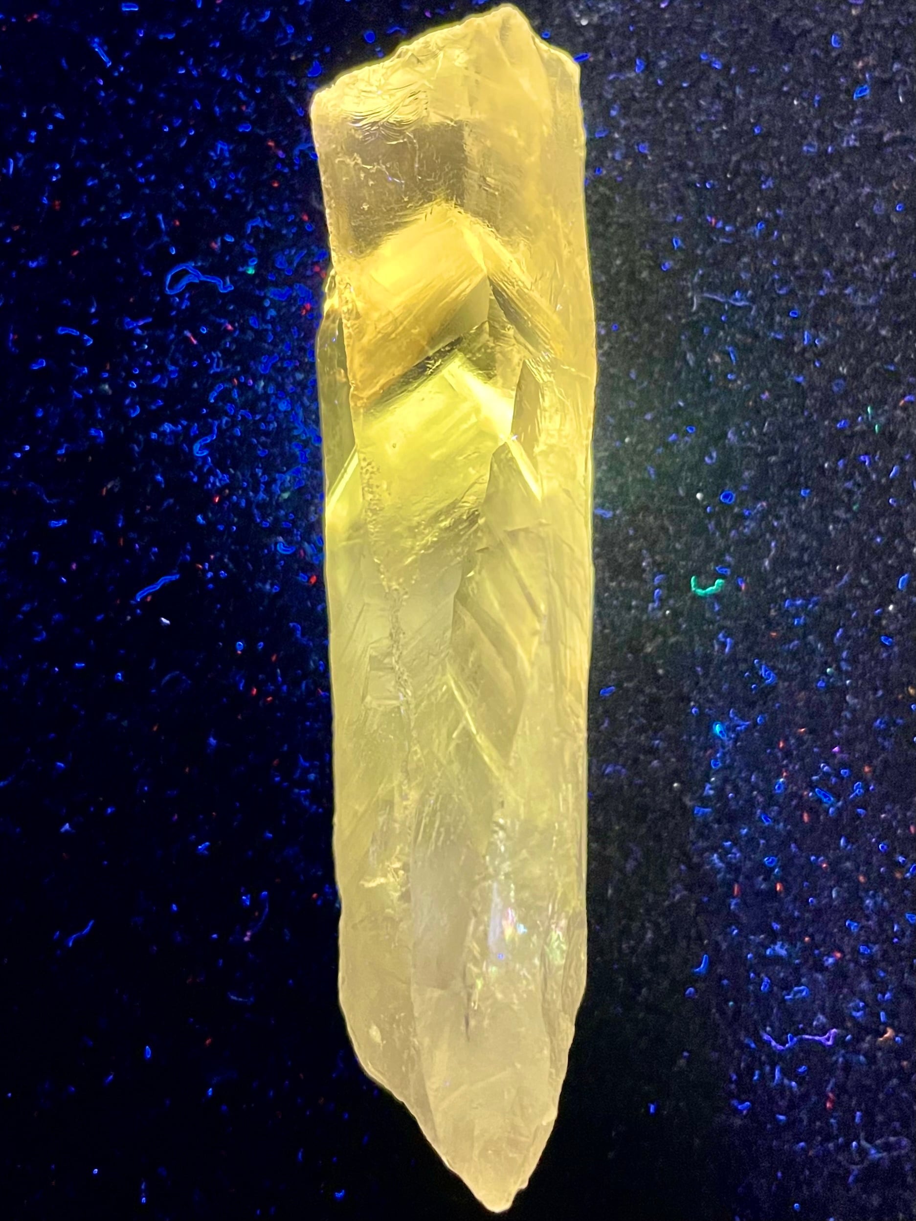 蛍光特性により高次元との繋がりが増幅され、瞑想やスピリットガイド・ハイヤーセルフからのメッセージ受容に極めて有効な補助となります。