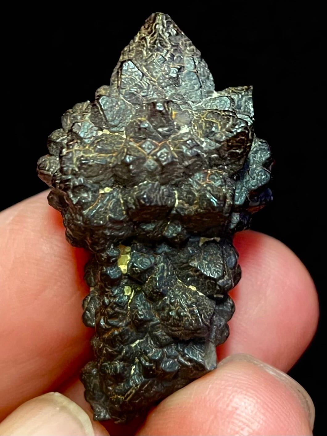 マーカサイト(白鉄鉱)という鉱物が、長い時間をかけてゲーサイト(針鉄鉱)に変化した、マーカサイトの仮晶です。
