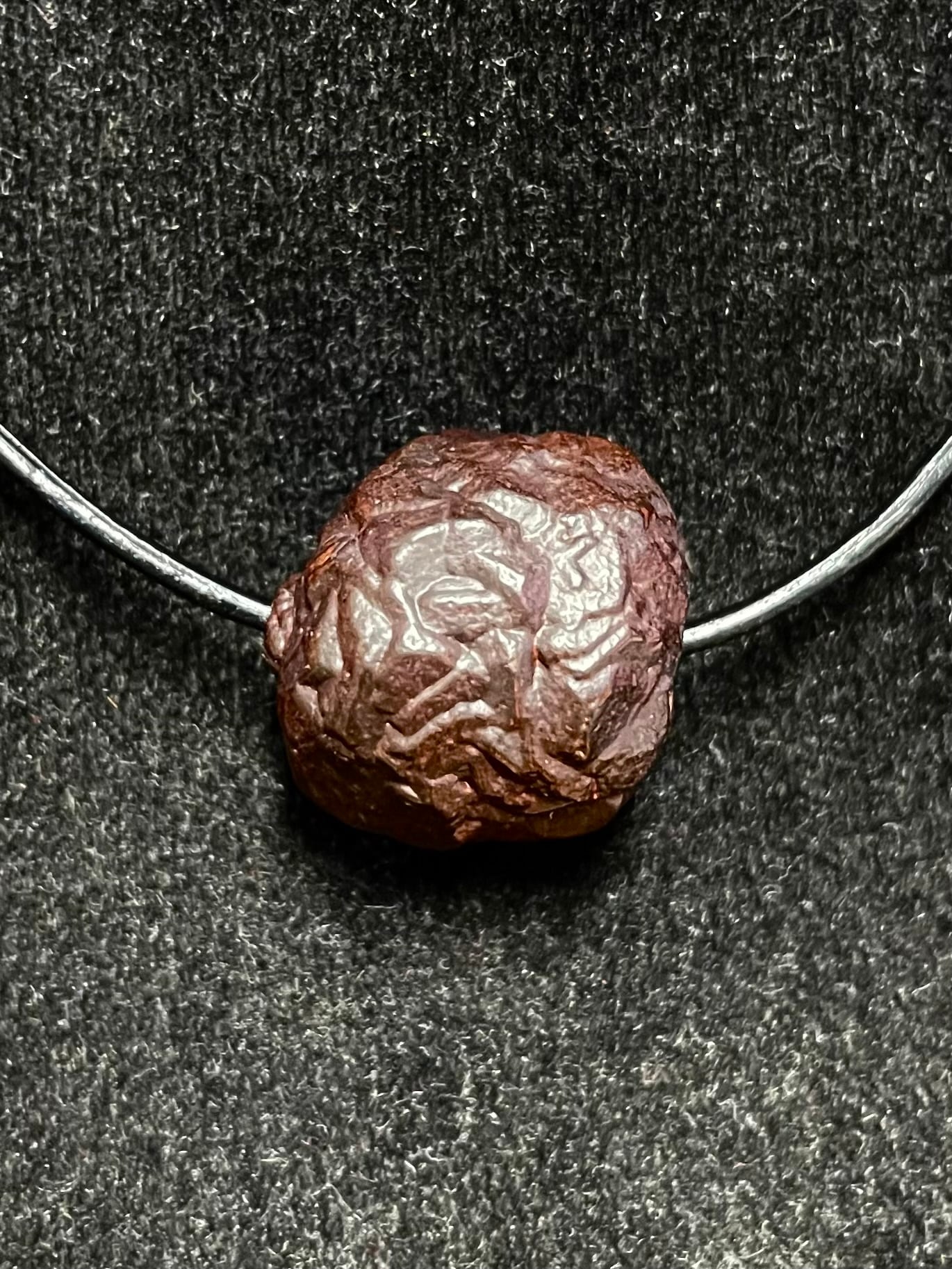 マーカサイト(白鉄鉱)という鉱物が、長い時間をかけてゲーサイト(針鉄鉱)に変化した、マーカサイトの仮晶です。