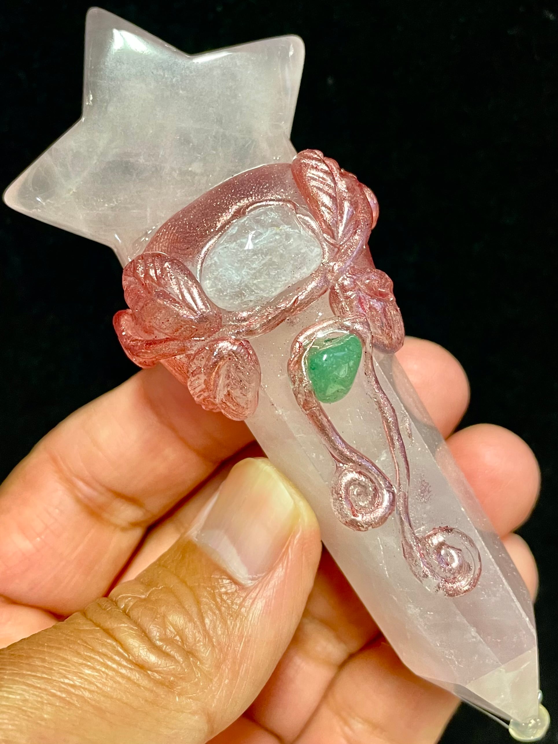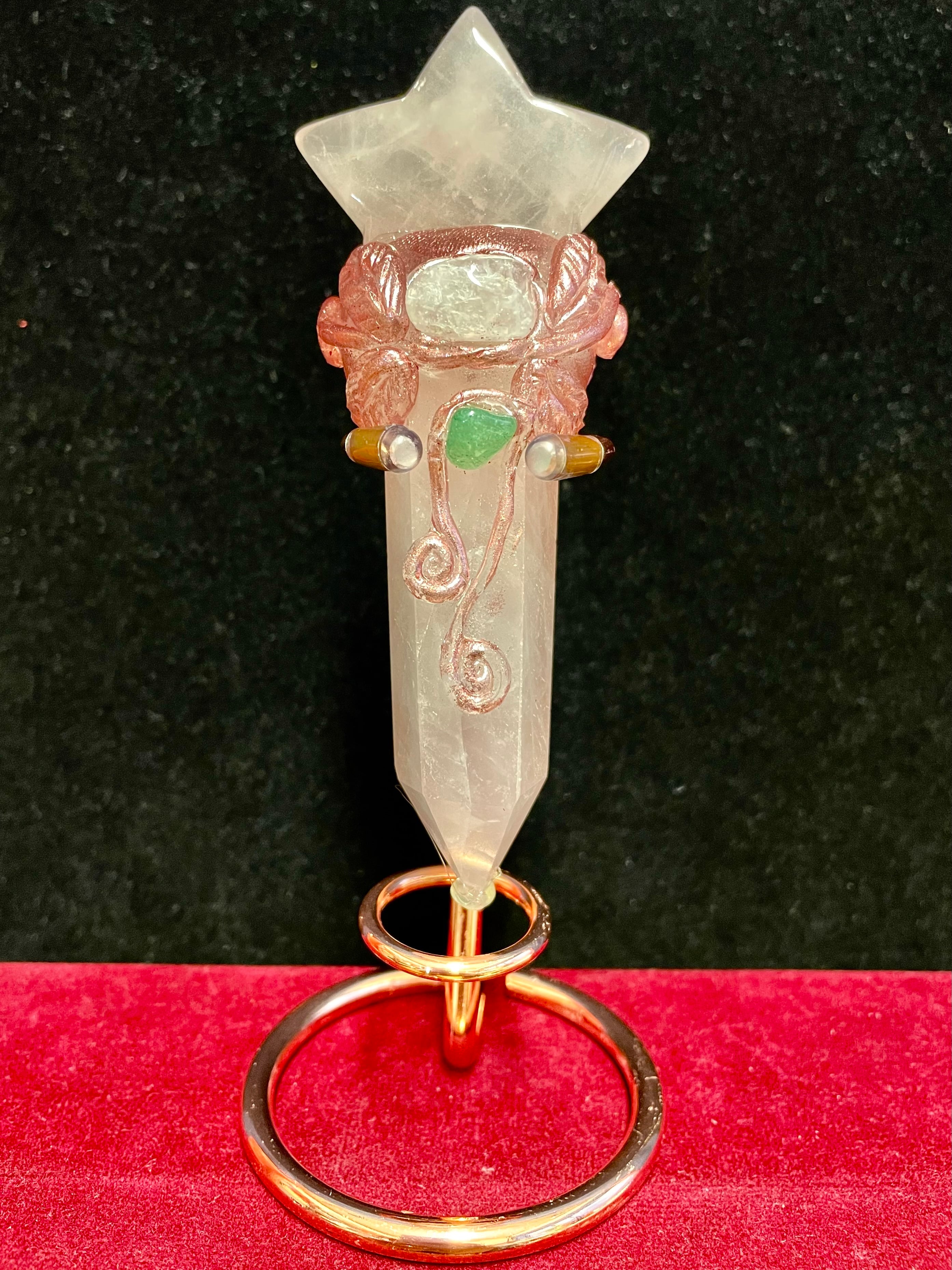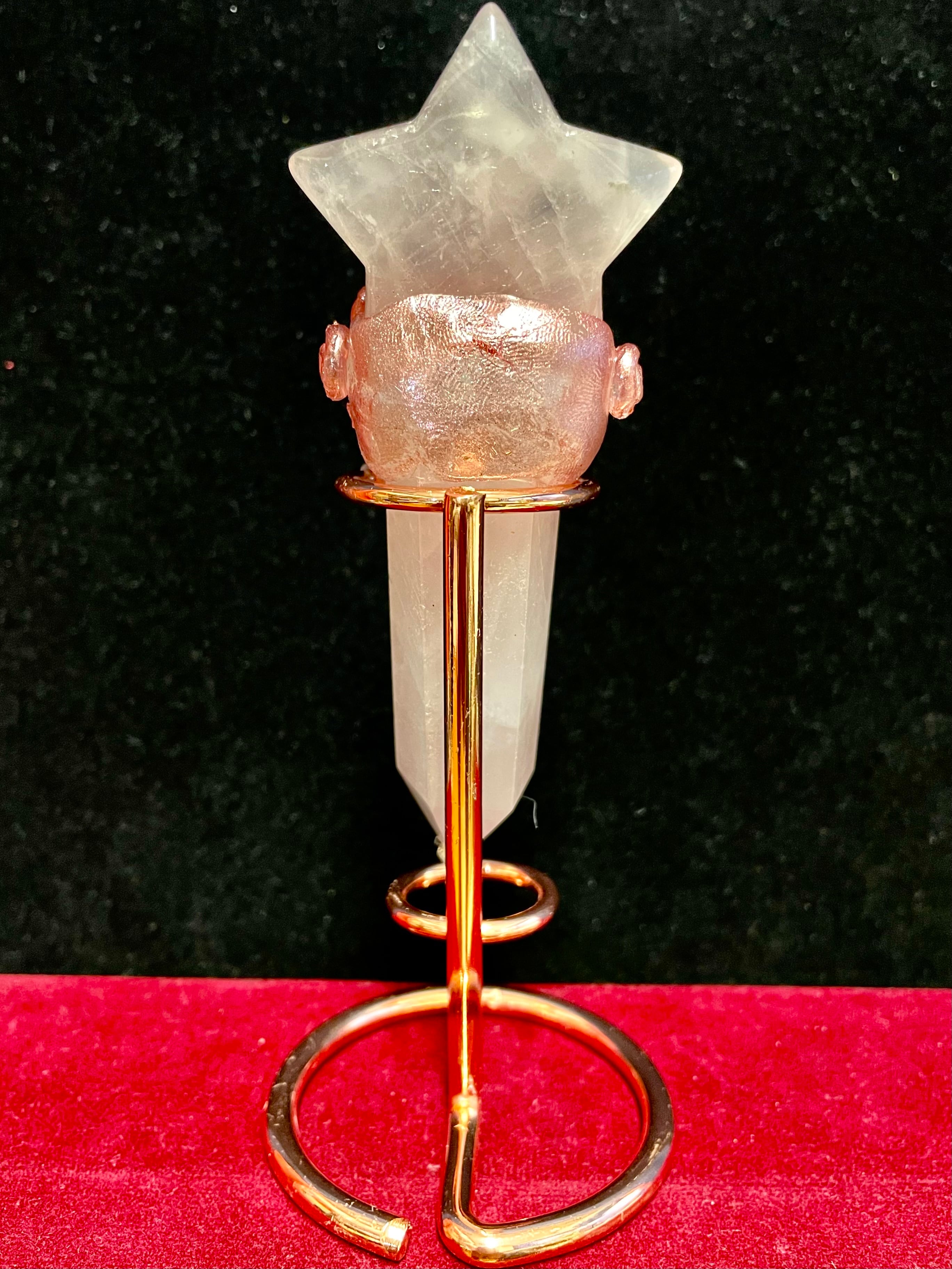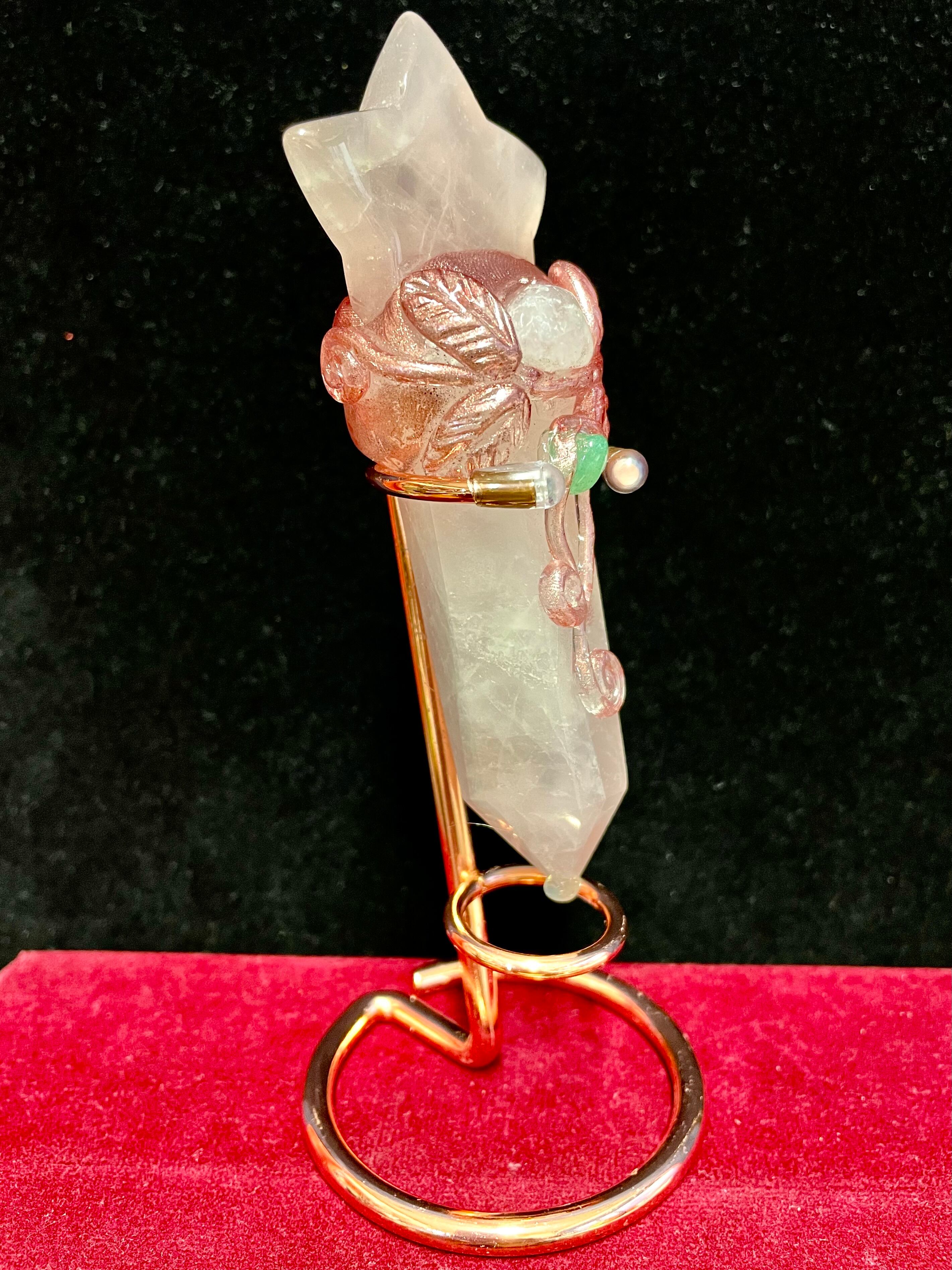 6) 愛と平和のエナジー「スター・ローズ・クオーツ」クリスタルワンドB(スタンド付き)