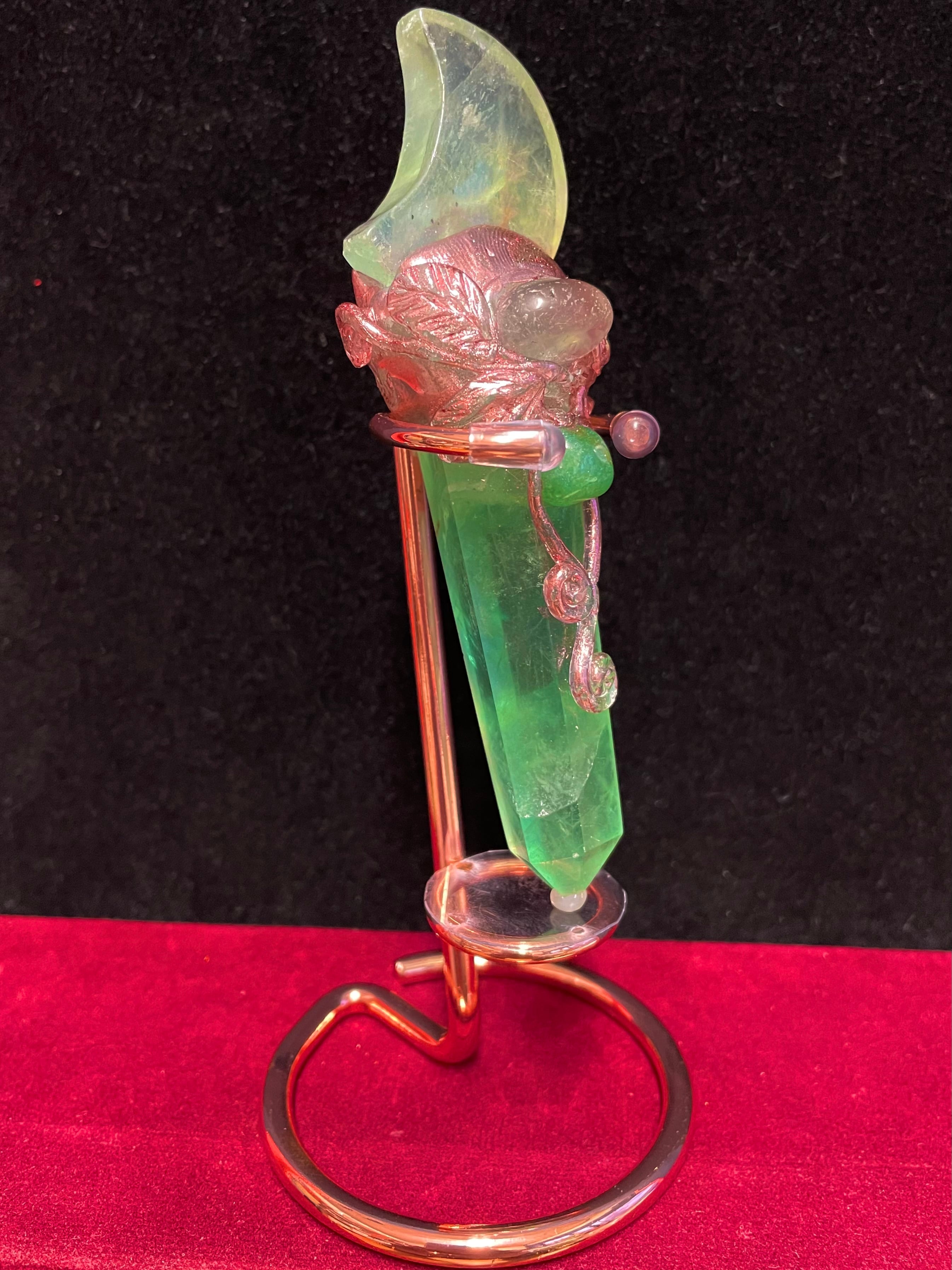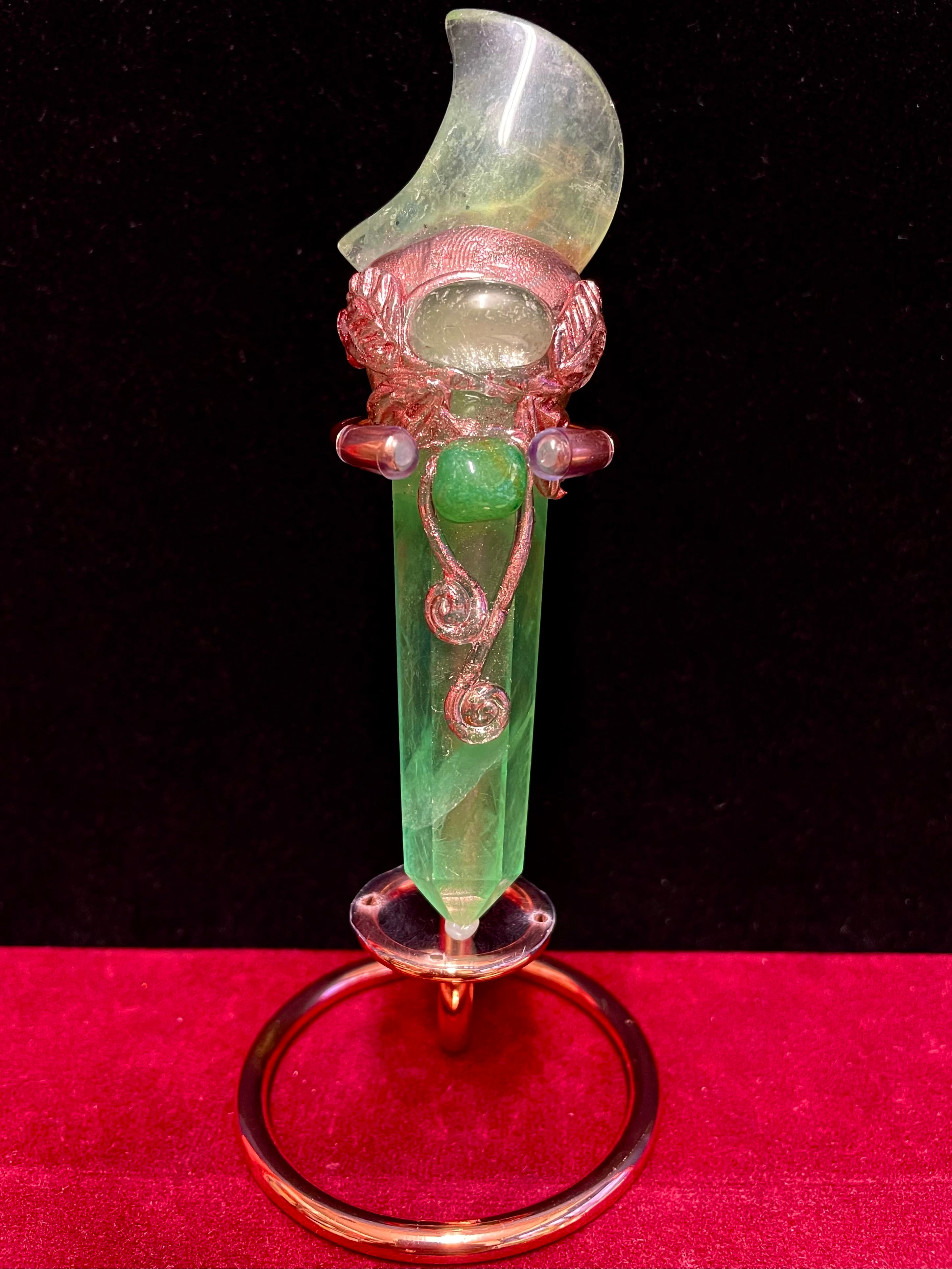 5) 知性と心の安定「クレセントムーン&フローライト」クリスタルワンドB(スタンド付き)