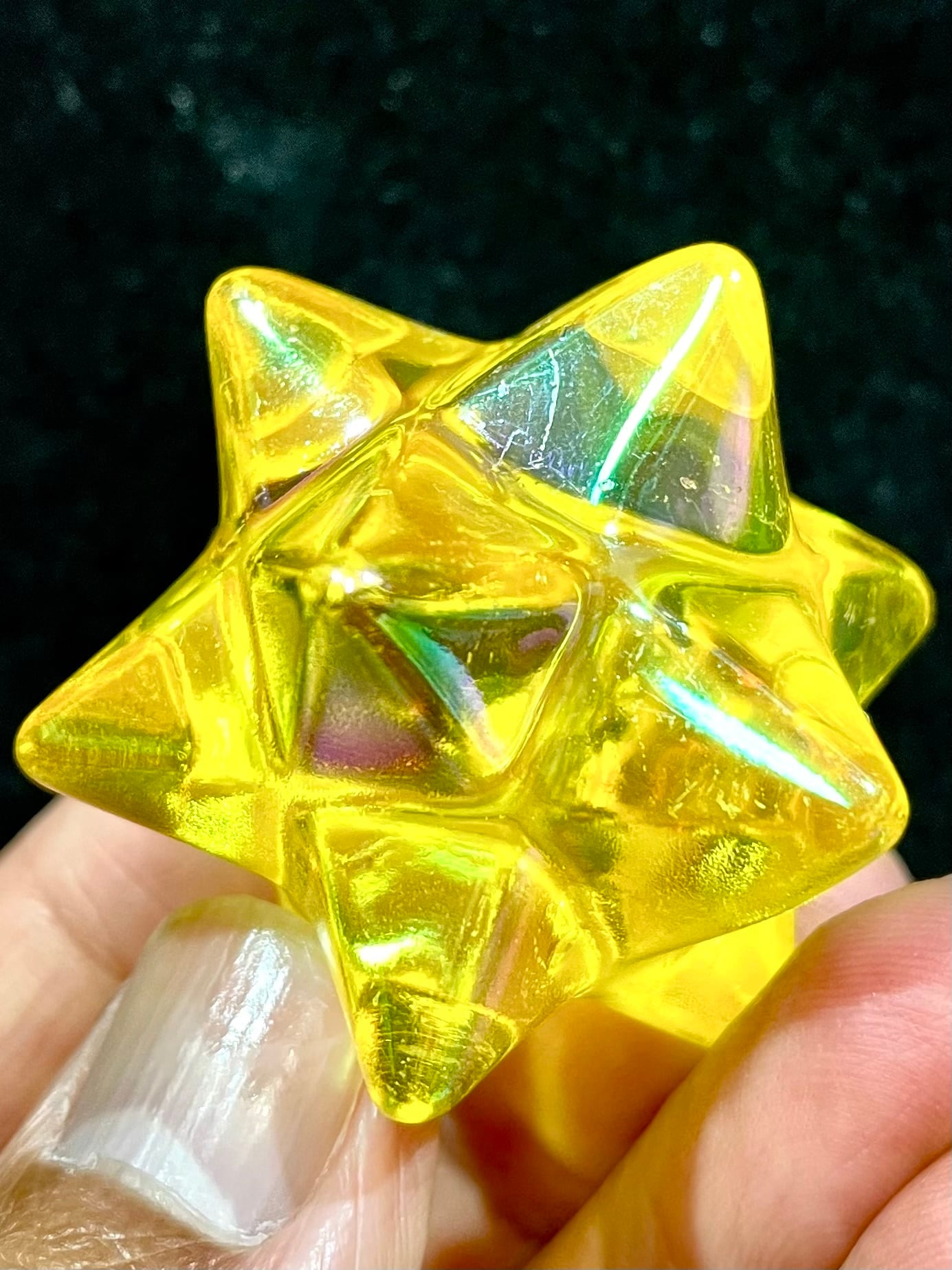 マカバ型クリスタルにオーラ加工が施されています。