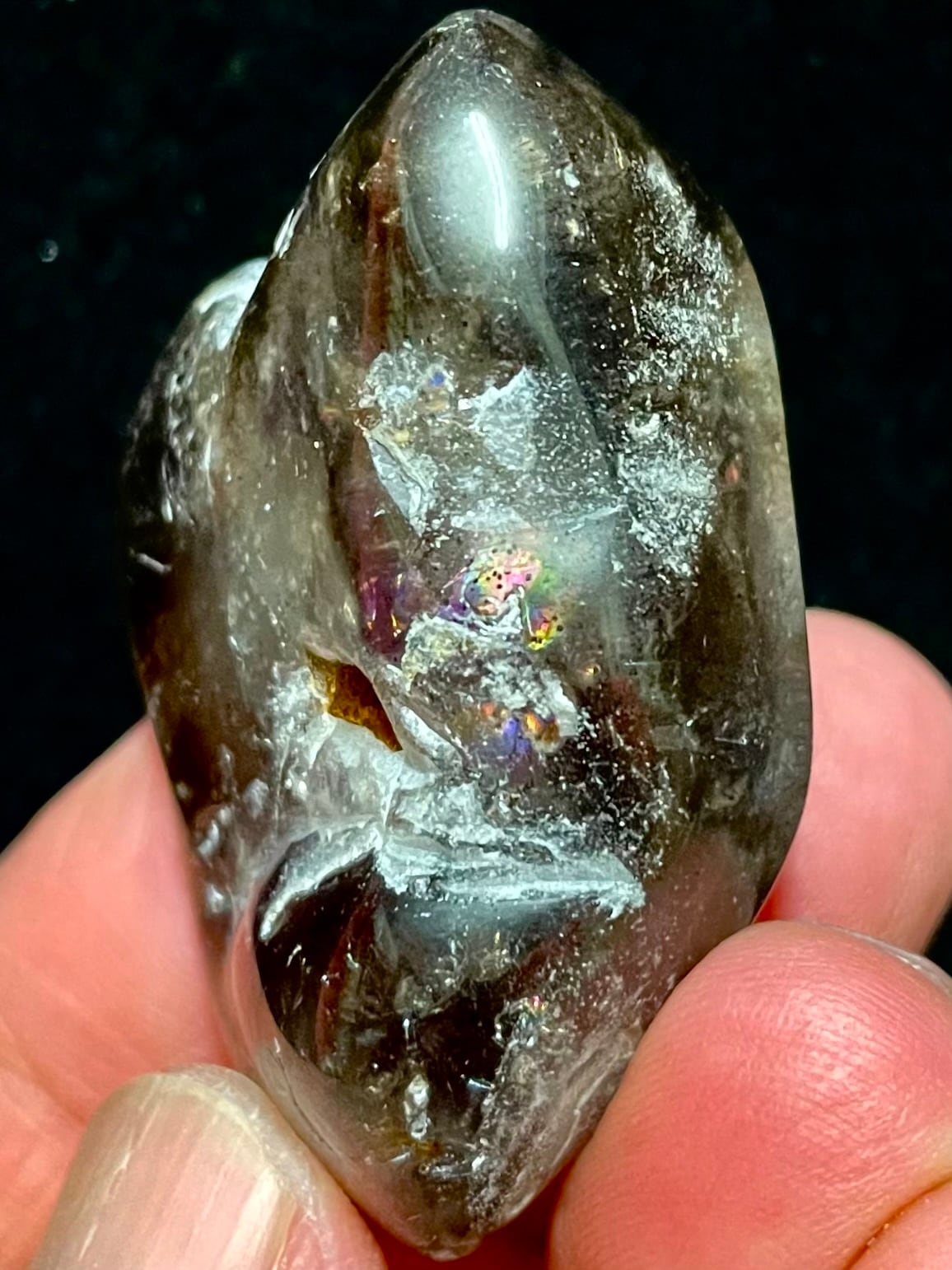 スモーキーアメジストに混ざり込んでいる白っぽい部分がオパールになります。