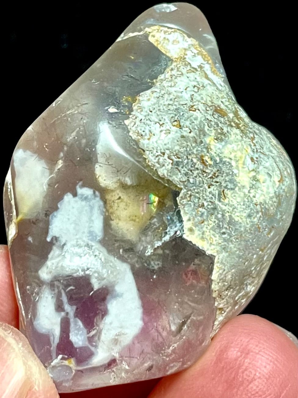 スモーキーアメジストに混ざり込んでいる白っぽい部分がオパールになります。