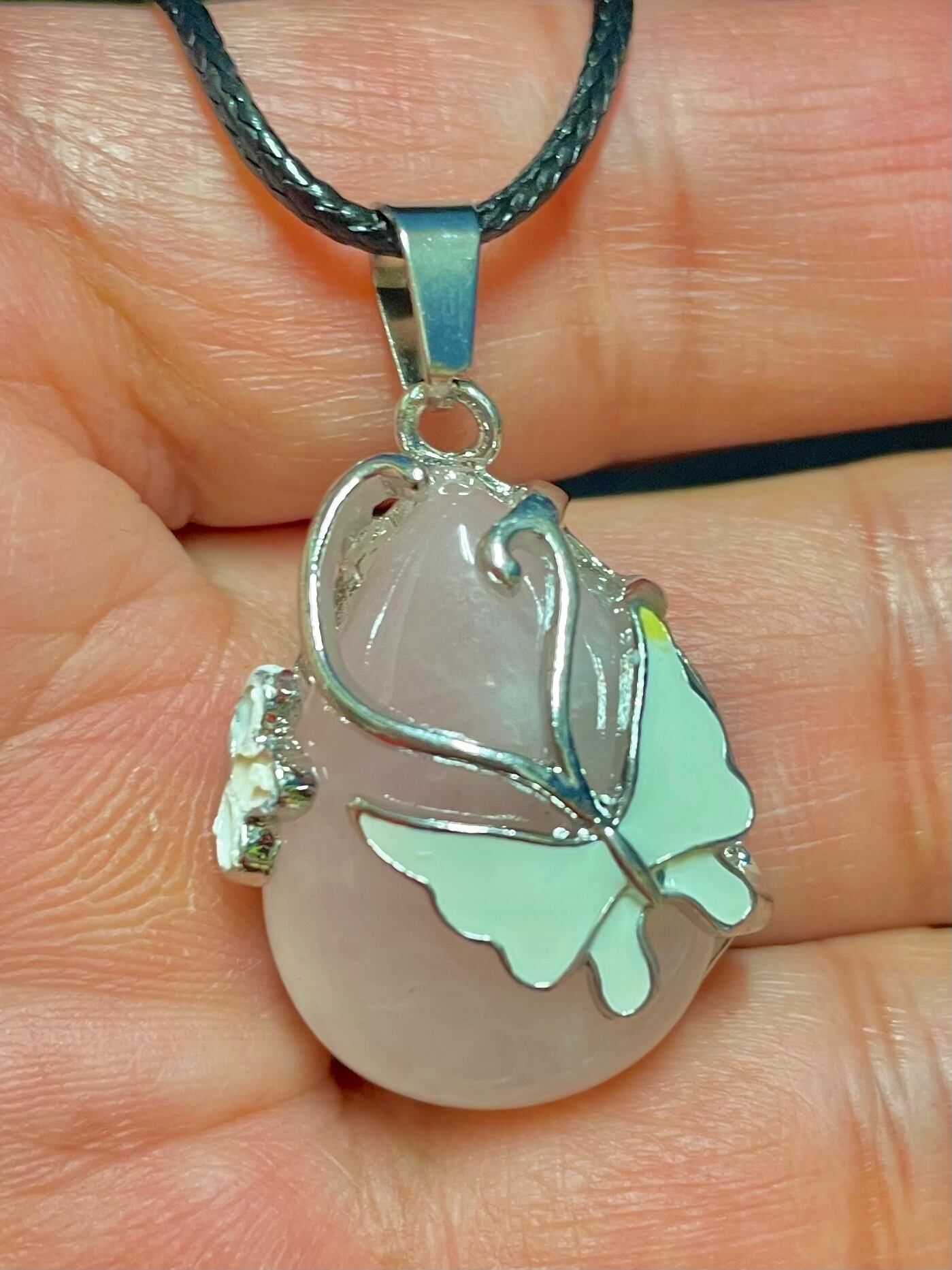 10) 「ローズクオーツ」フラワー&バタフライPT