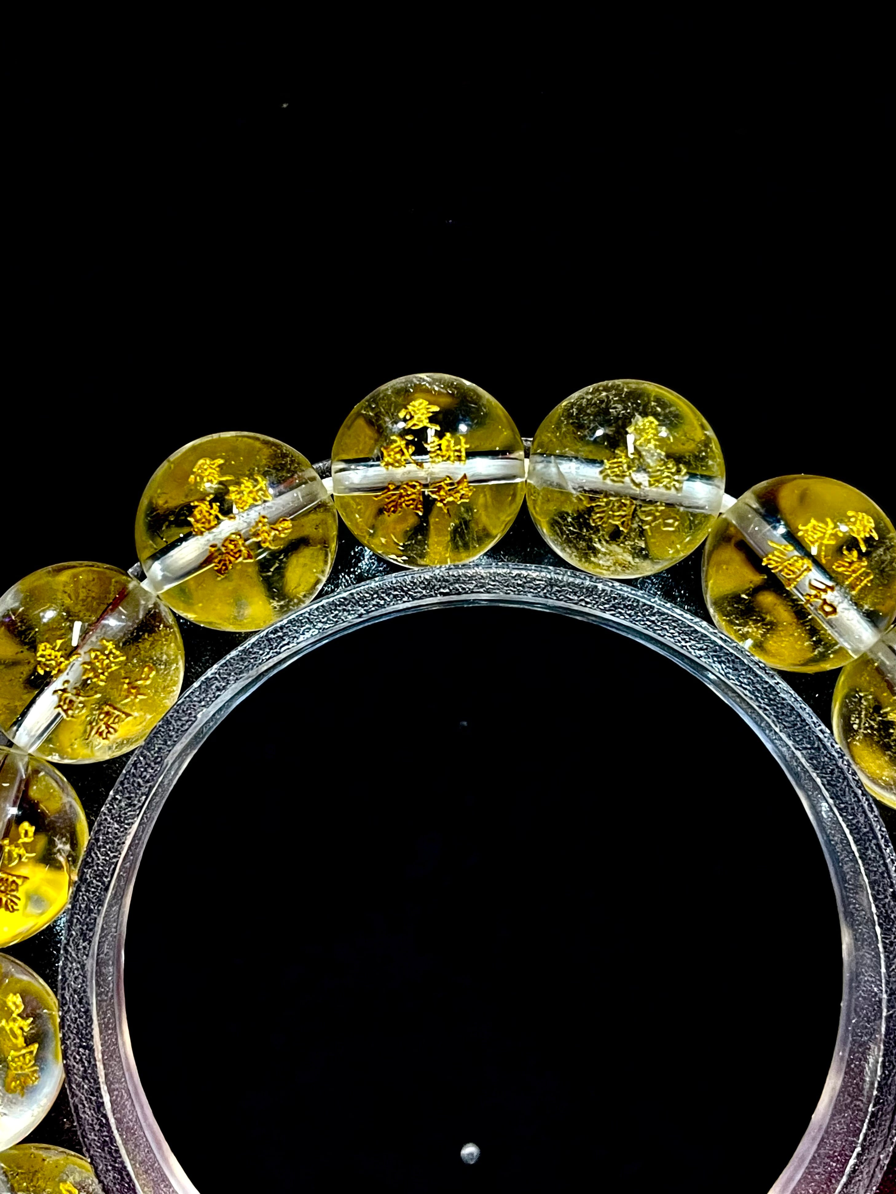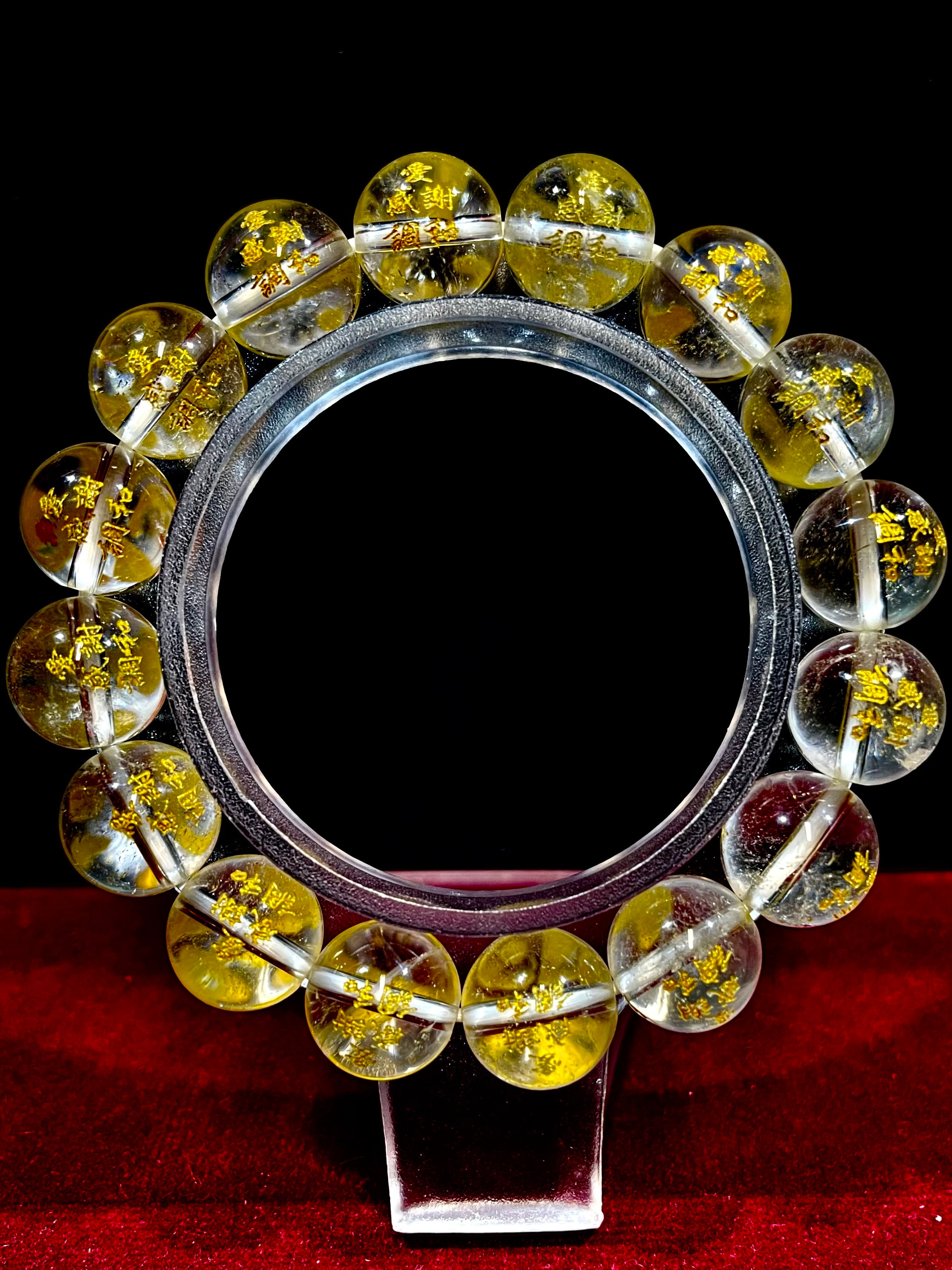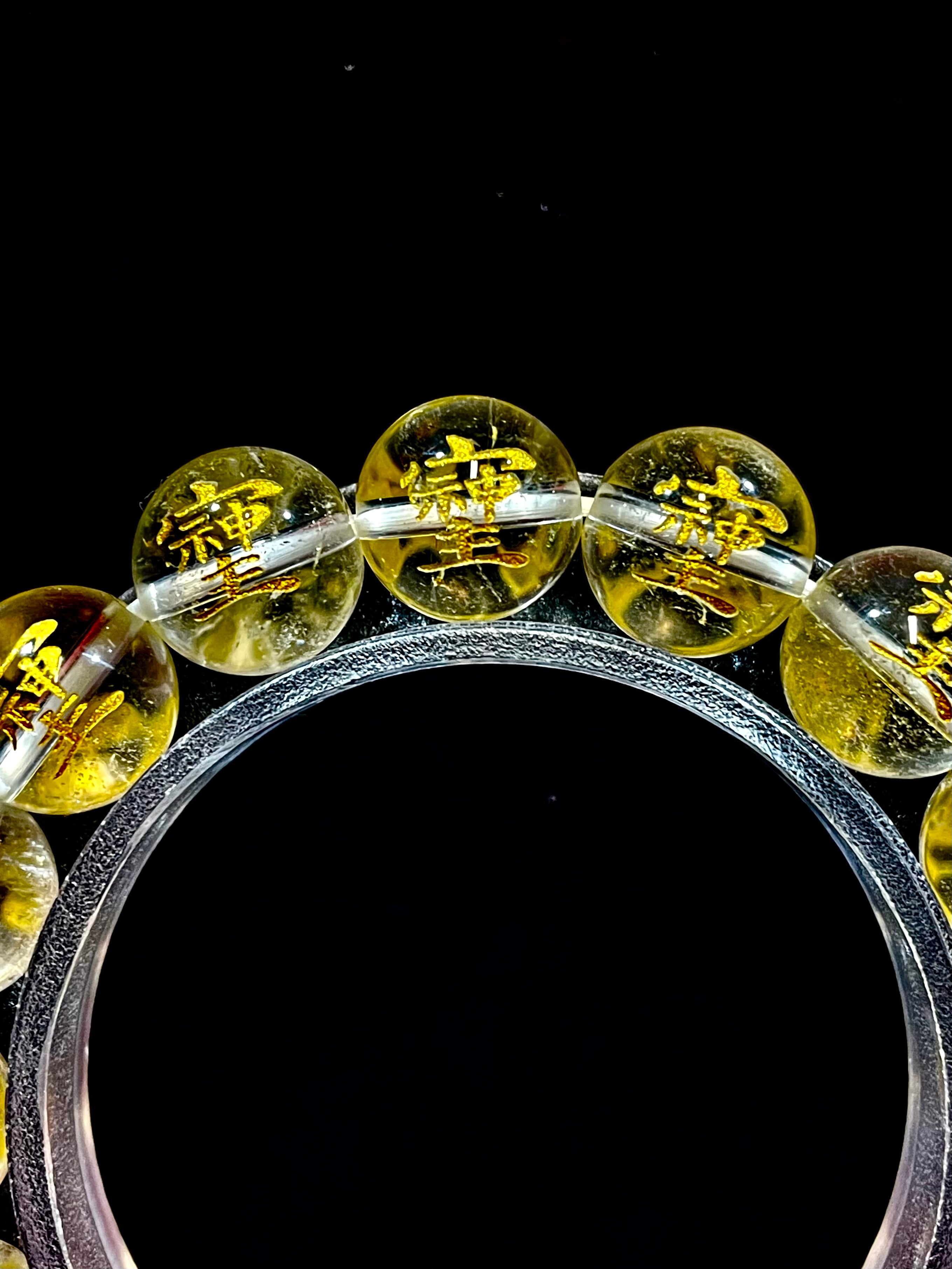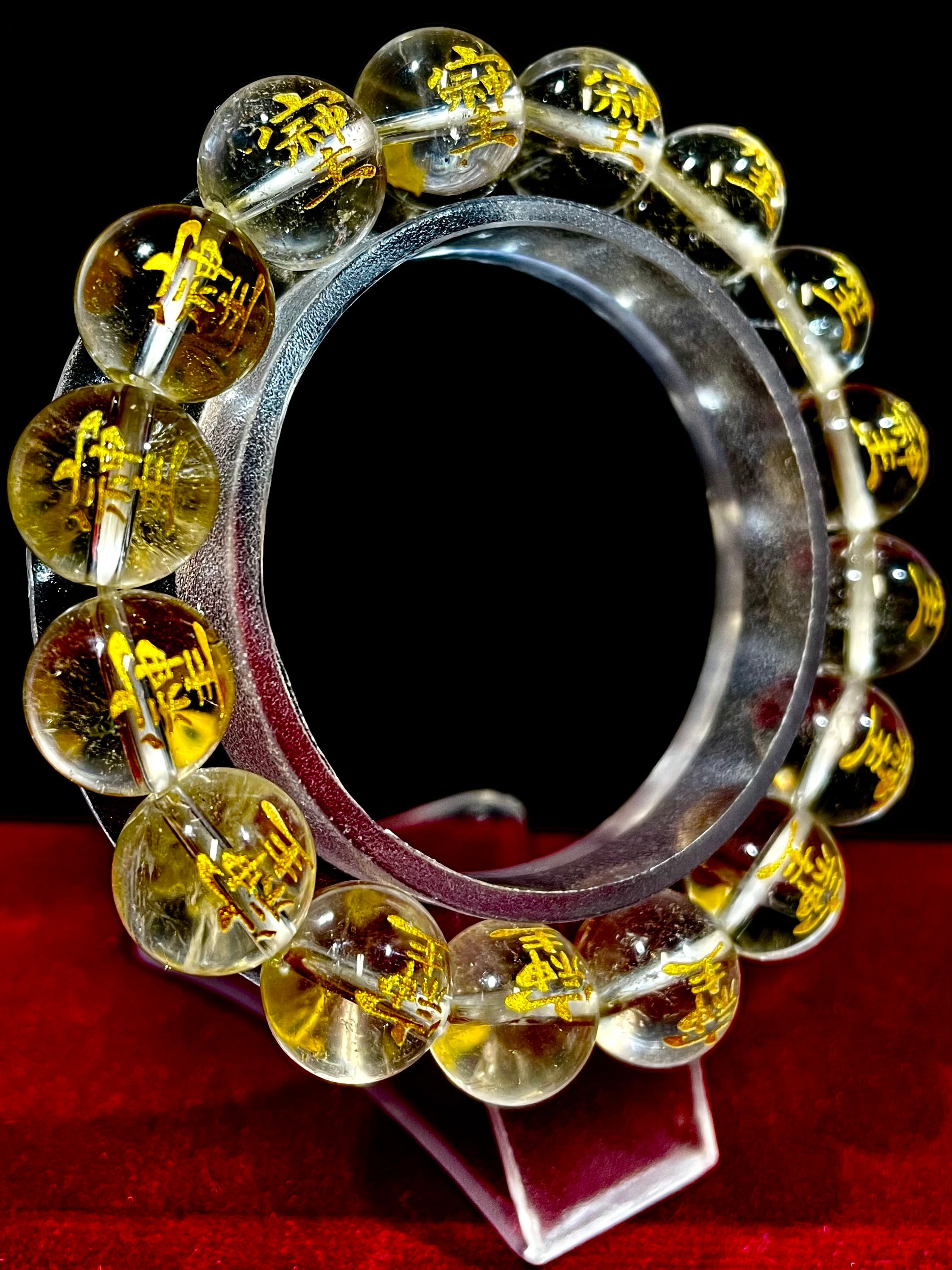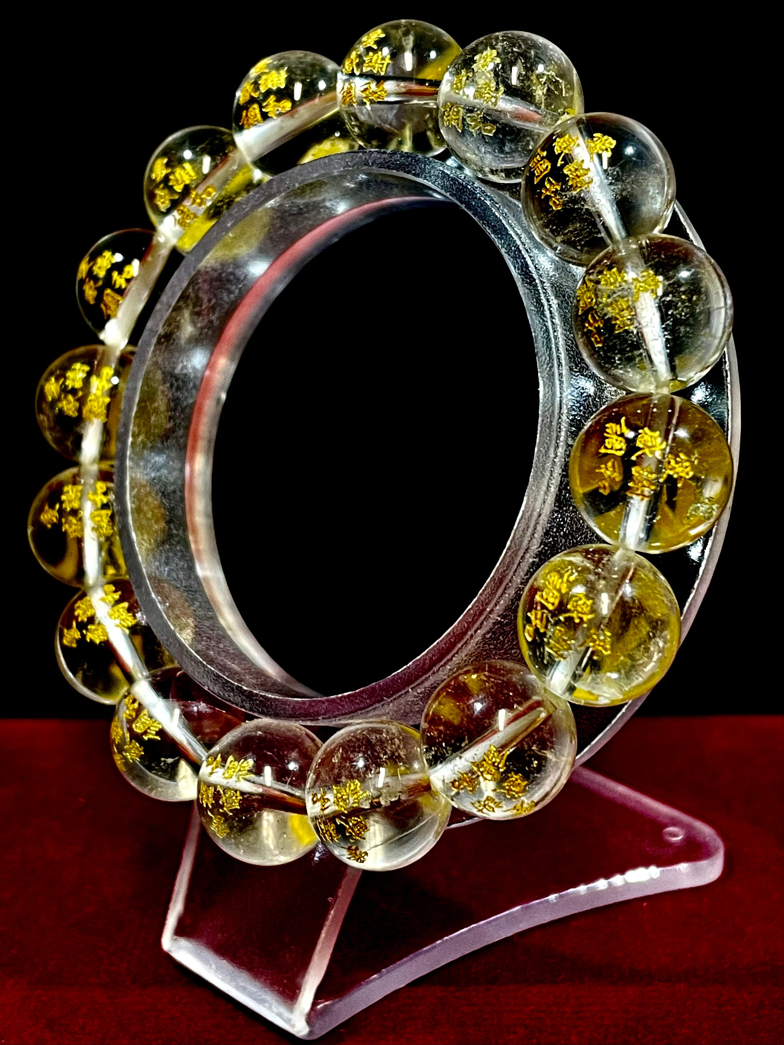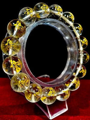 ブラジル産クオーツで作られたビーズの表に「そしじ」の漢字、裏に「愛」「感謝」「調和」の漢字が彫刻されています。