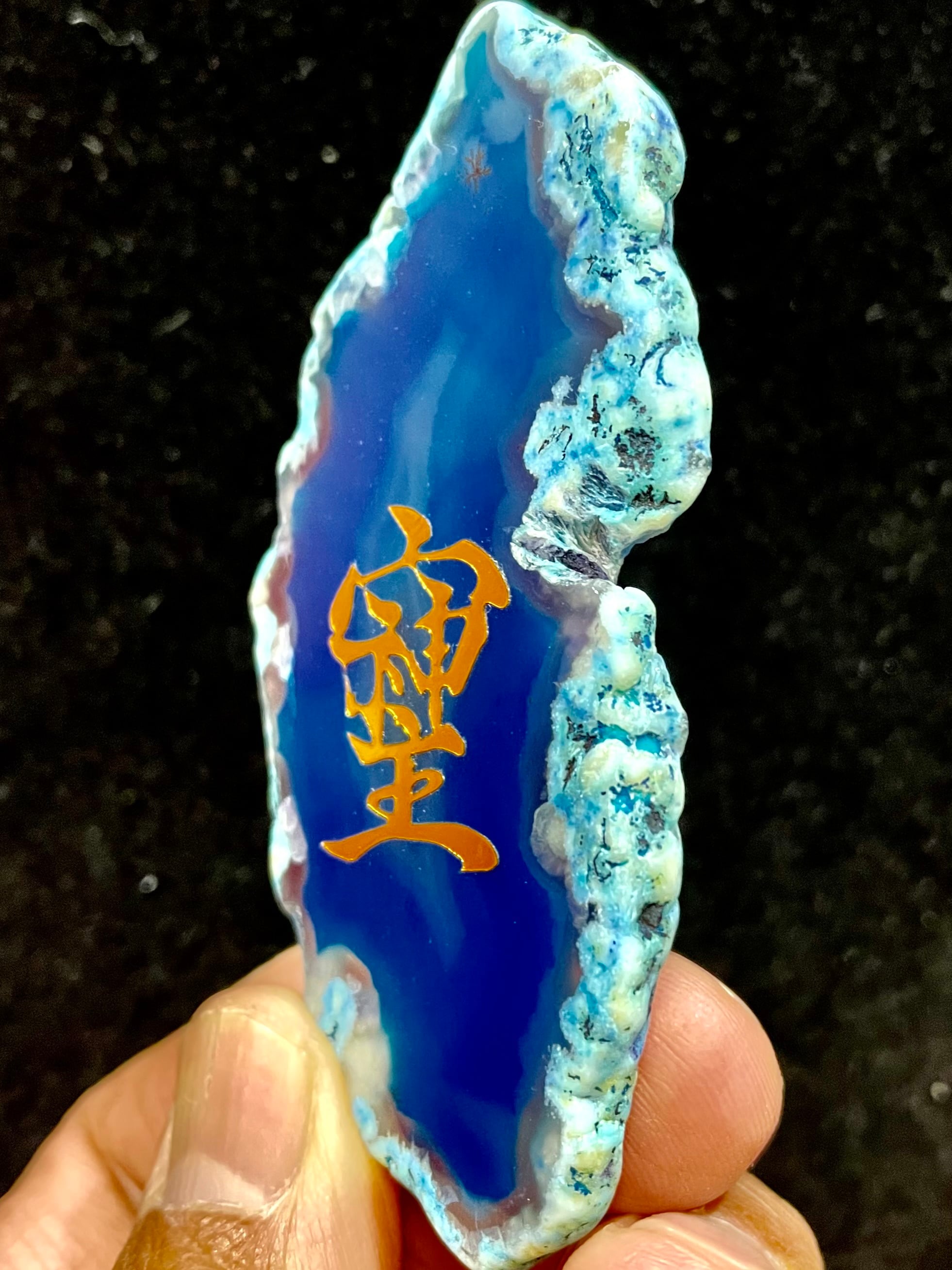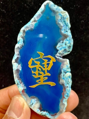 鮮やかなブラジル産アゲート(染色)に「そしじ」高品質・光沢ゴールド・ステッカー(日常防水)を貼っています。