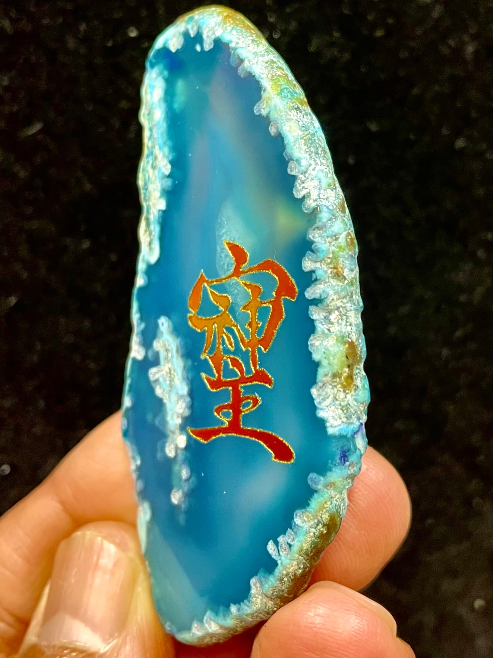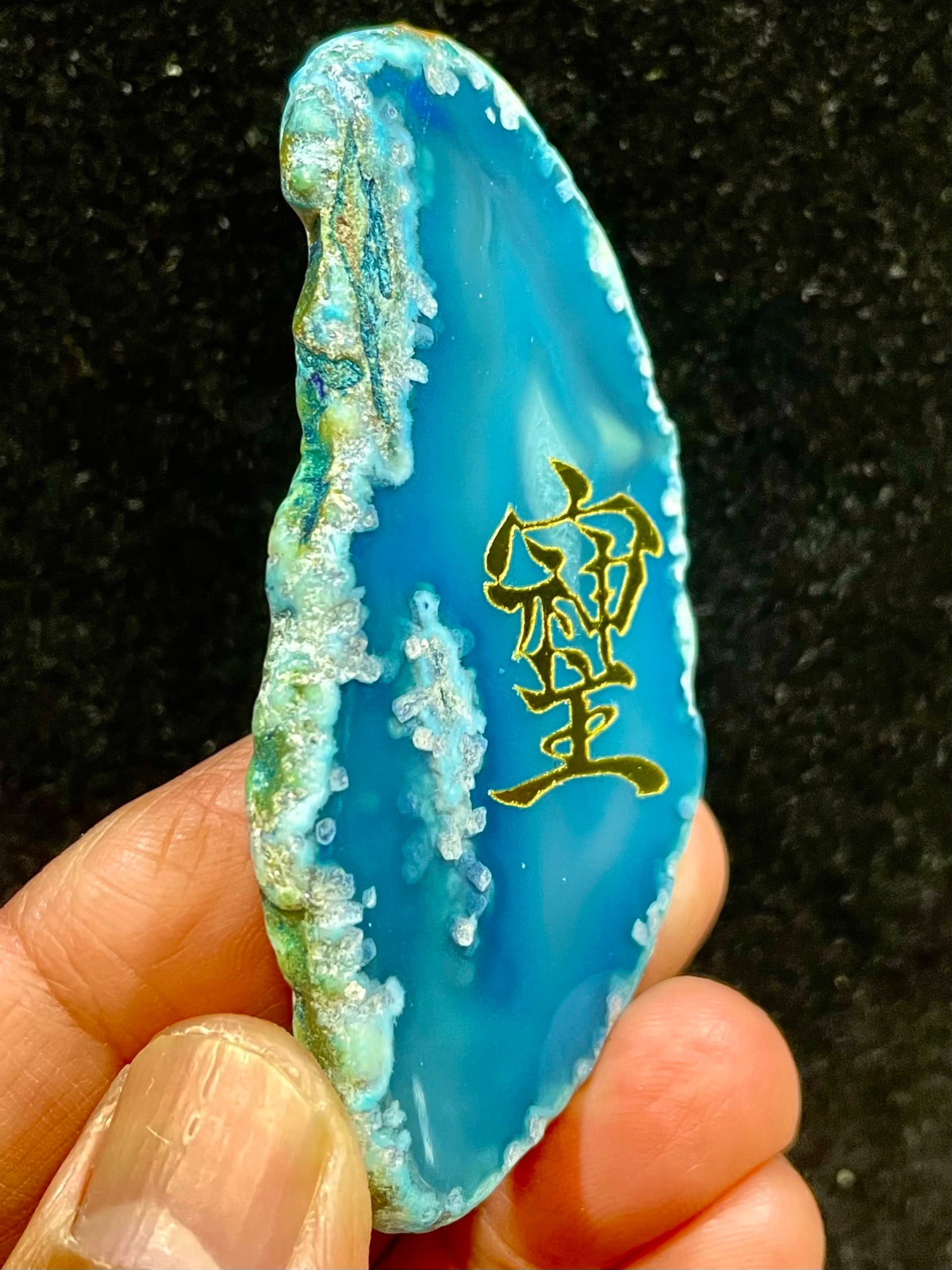 鮮やかなブラジル産アゲート(染色)に「そしじ」高品質・光沢ゴールド・ステッカー(日常防水)を貼っています。