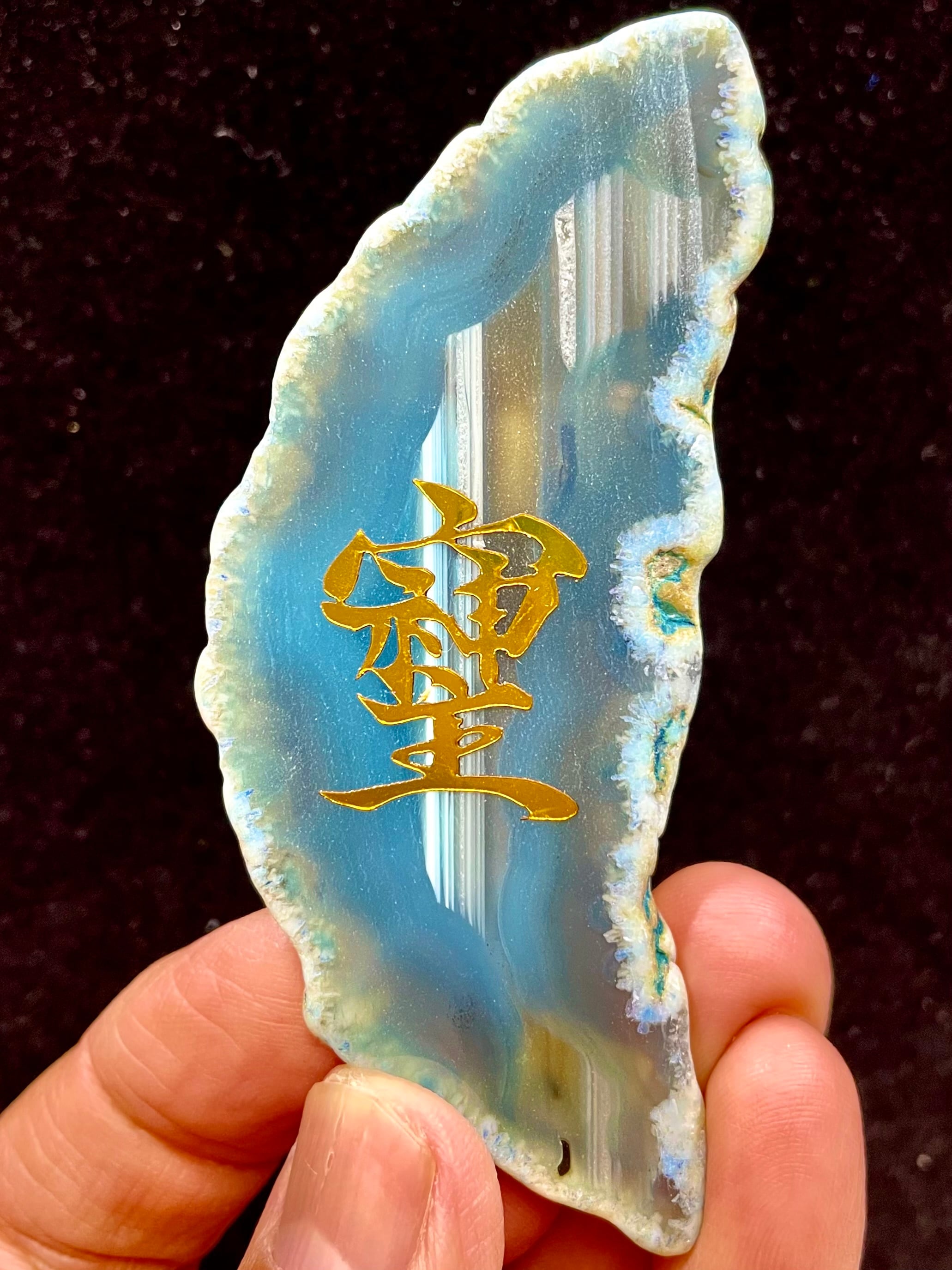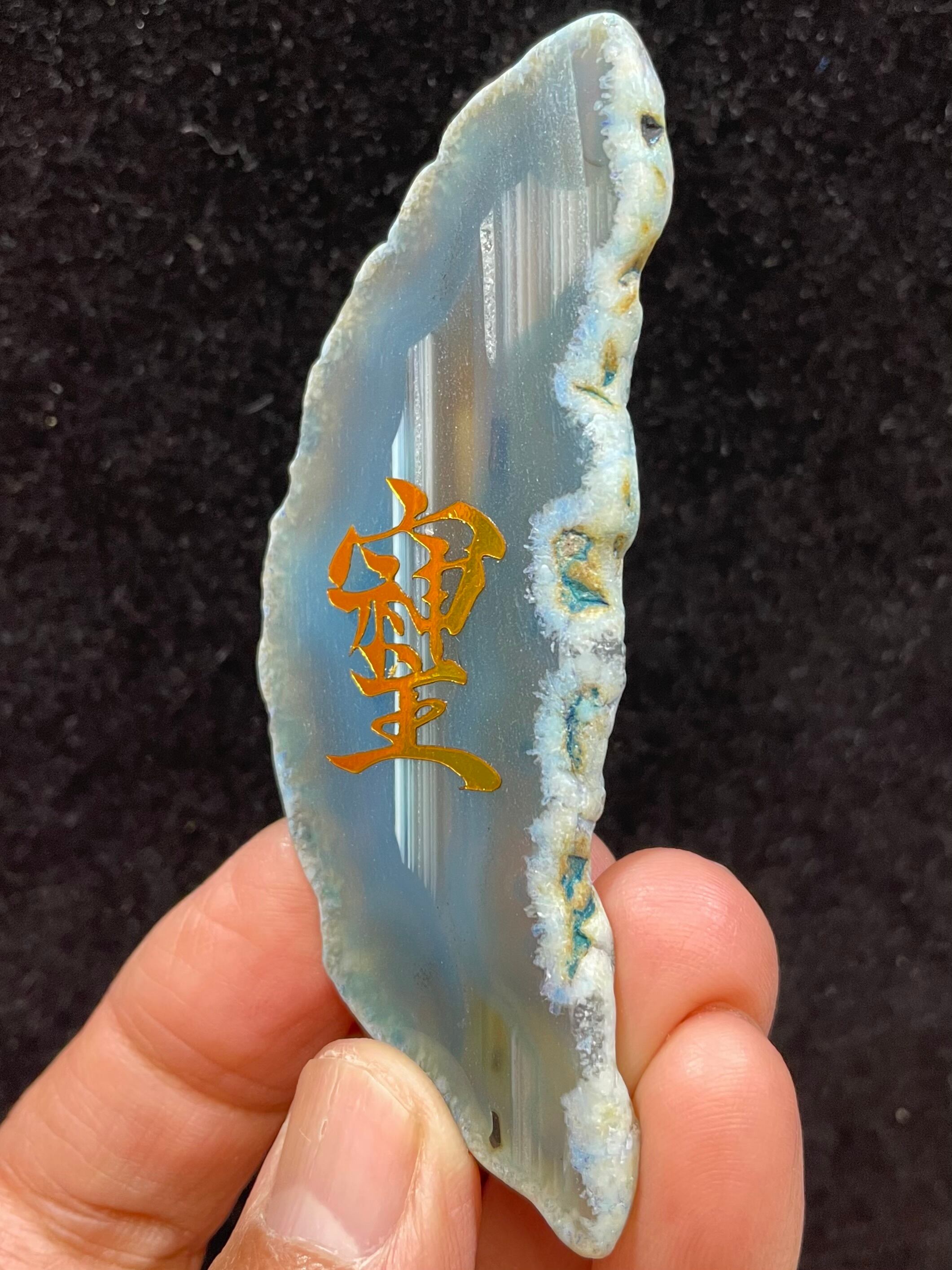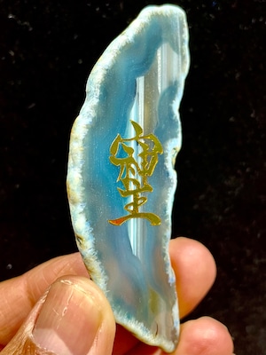 鮮やかなブラジル産アゲート(染色)に「そしじ」高品質・光沢ゴールド・ステッカー(日常防水)を貼っています。