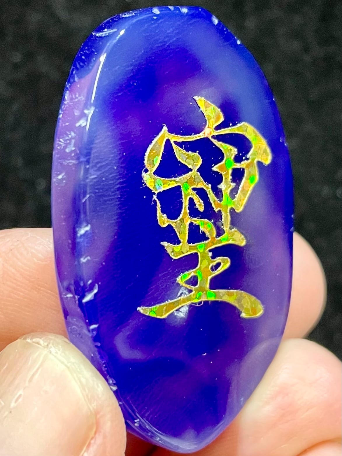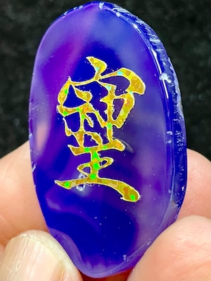 鮮やかなブラジル産アゲート(染色)に「そしじ」レインボー・ラメ入り高品質ステッカー(無防水)を貼っています。