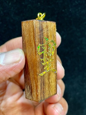 ペンダントのものは、光沢塗装が施されているため、まず表面の塗装がブルーに反射してしまいますが、よく見ますと塗装の下で薄っすら黄色っぽく蛍光しているのがわかります。