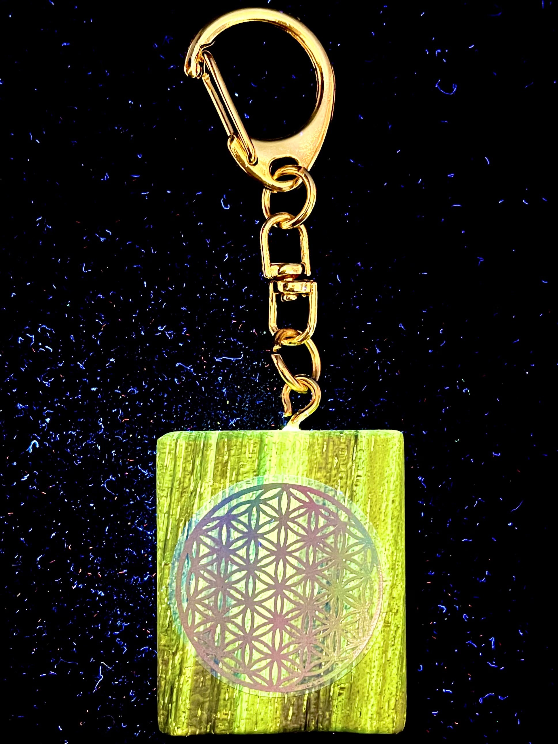 3) 強運の象徴「そしじ」&高波動と癒し「フラワーオブライフ(シルバー)」+聖なる神木「カウアイ・レムリアン・コアウッド」エナジー・キーホルダーC