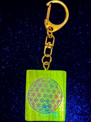 1) 高波動と癒し「フラワーオブライフ」+聖なる神木「カウアイ・レムリアン・コアウッド」エナジー・キーホルダーE