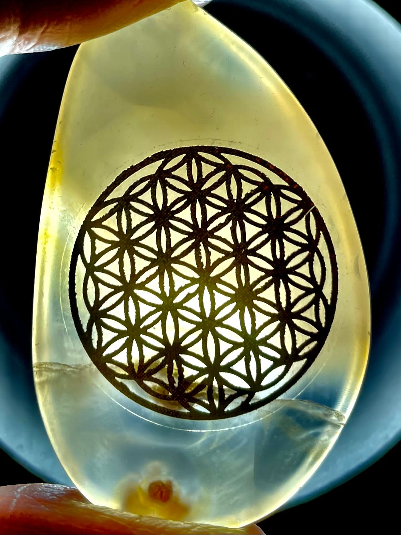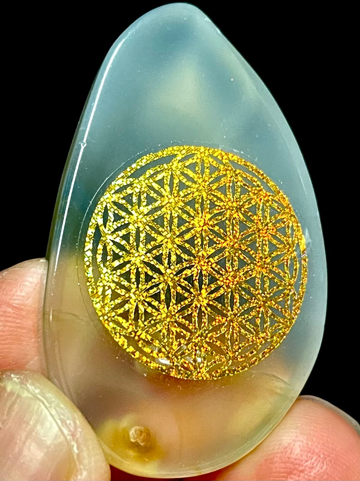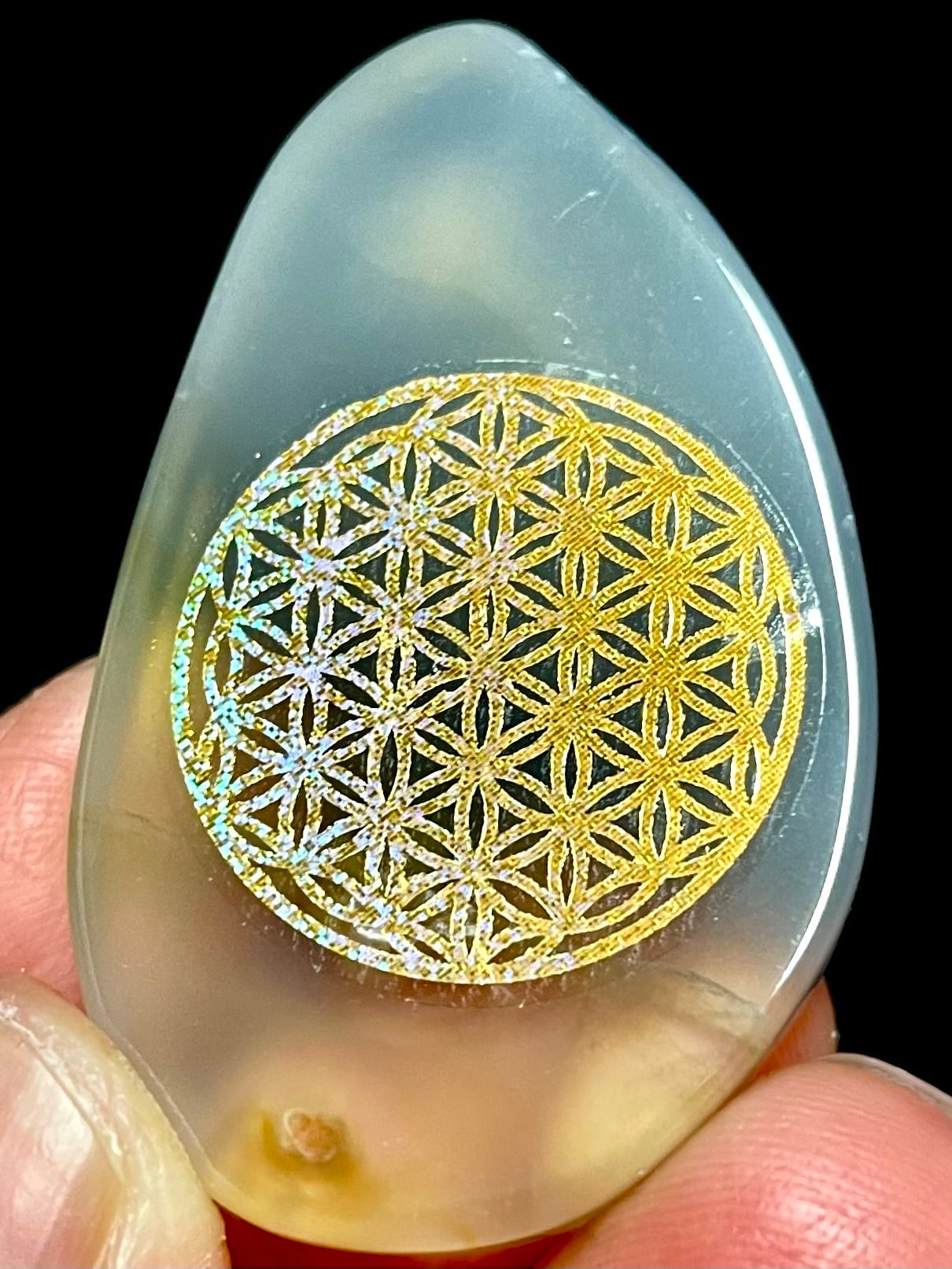 ブラジル産アゲートに「フラワーオブライフ」のラメ入りシールを貼っています。