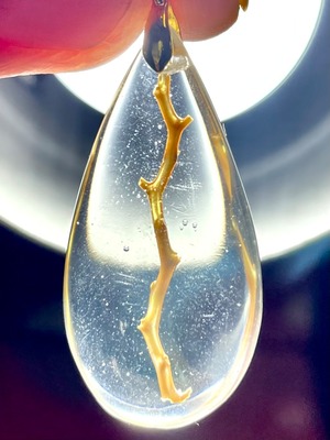 神々の棲む島と呼ばれる神秘の島「バリ島」の深海、「ポセイドン」が採取される深海より更に深い海でしか採取出来ない、大変希少かつ貴重な「オーロラ・ポセイドン」の枝を活用したペンダントトップ(樹脂の中に入っています)。