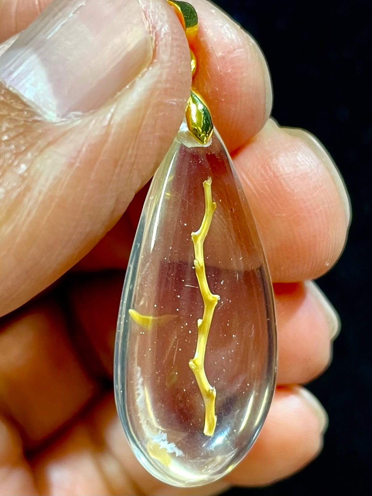 神々の棲む島と呼ばれる神秘の島「バリ島」の深海、「ポセイドン」が採取される深海より更に深い海でしか採取出来ない、大変希少かつ貴重な「オーロラ・ポセイドン」の枝を活用したペンダントトップ(樹脂の中に入っています)。