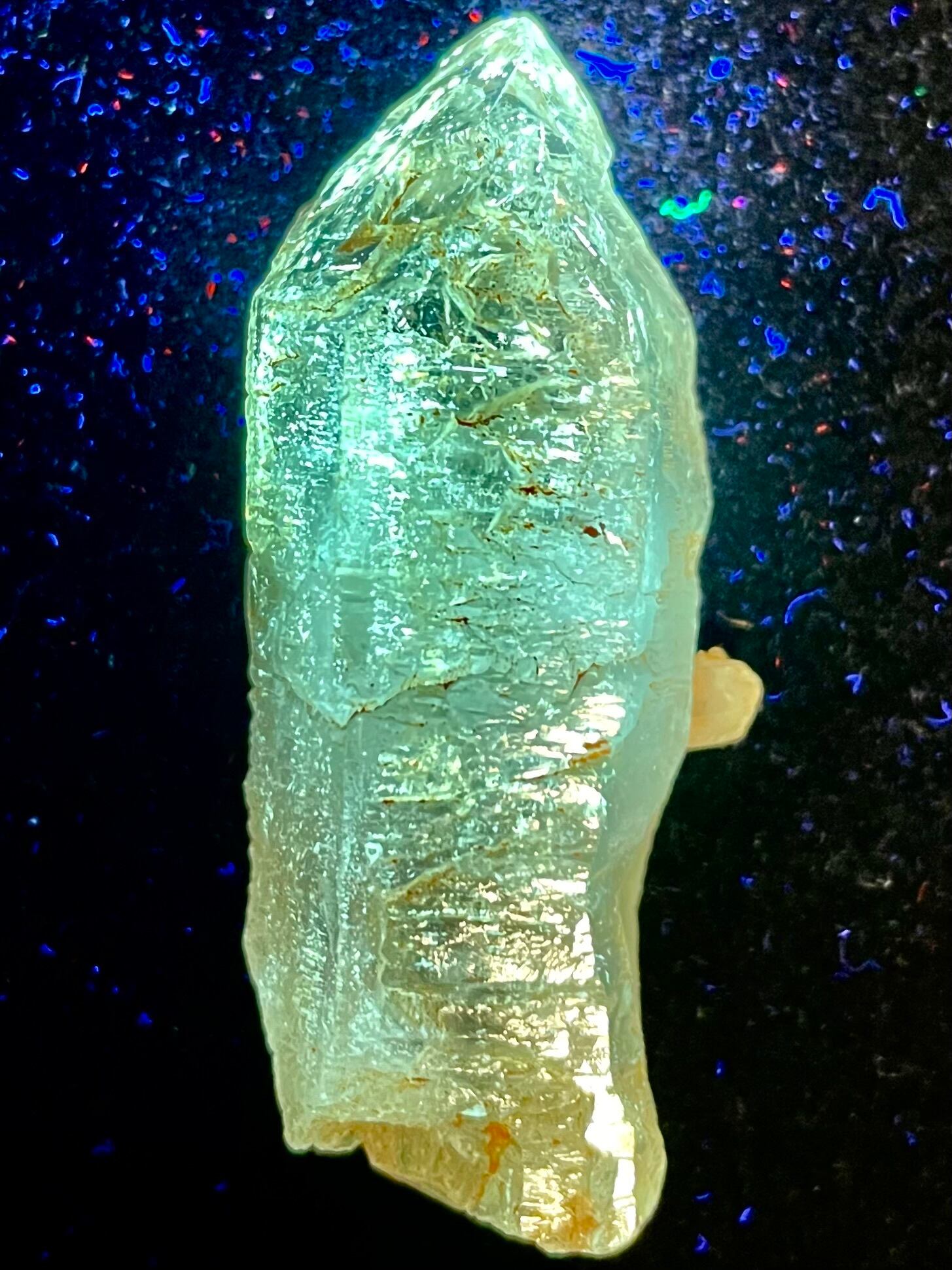 紫外線ライトを当てると蛍光します。