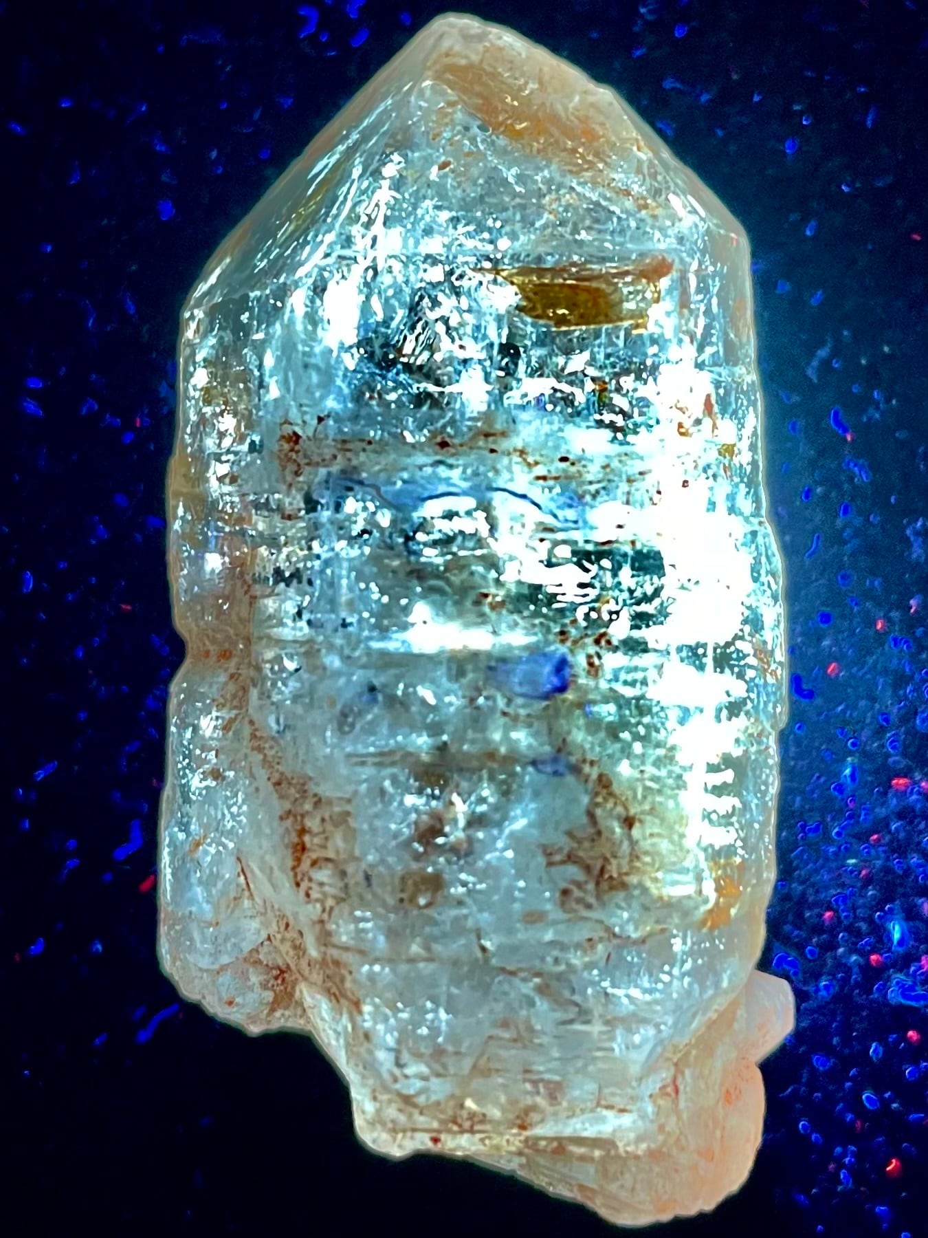 紫外線ライトを当てると蛍光します。