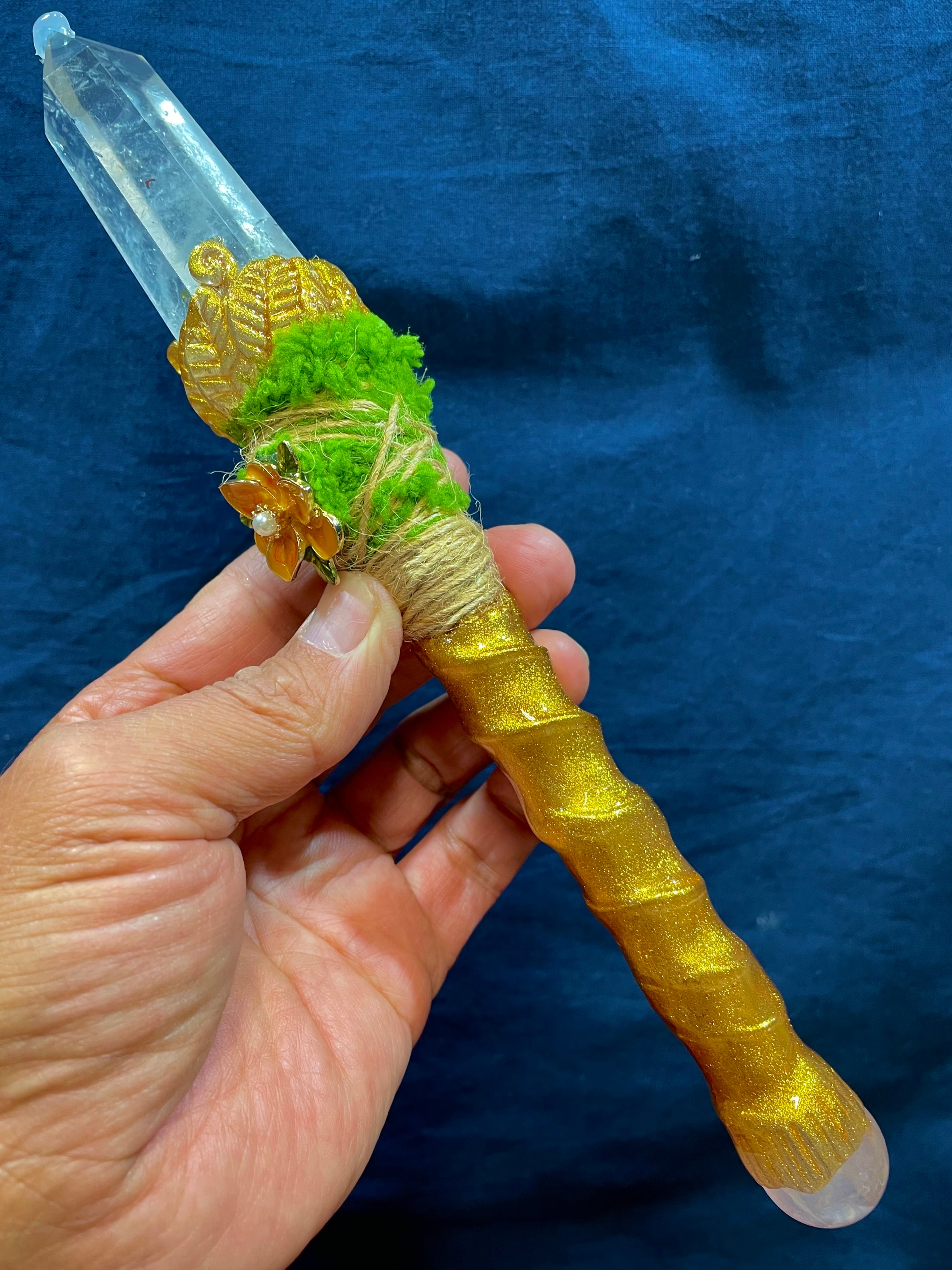 この美しい「クリスタルワンド」は、エネルギーを高めるために特別にデザインされました。卓越したアーティストの感性で丁寧に作られ、ハンドメイドの特性が際立っています。