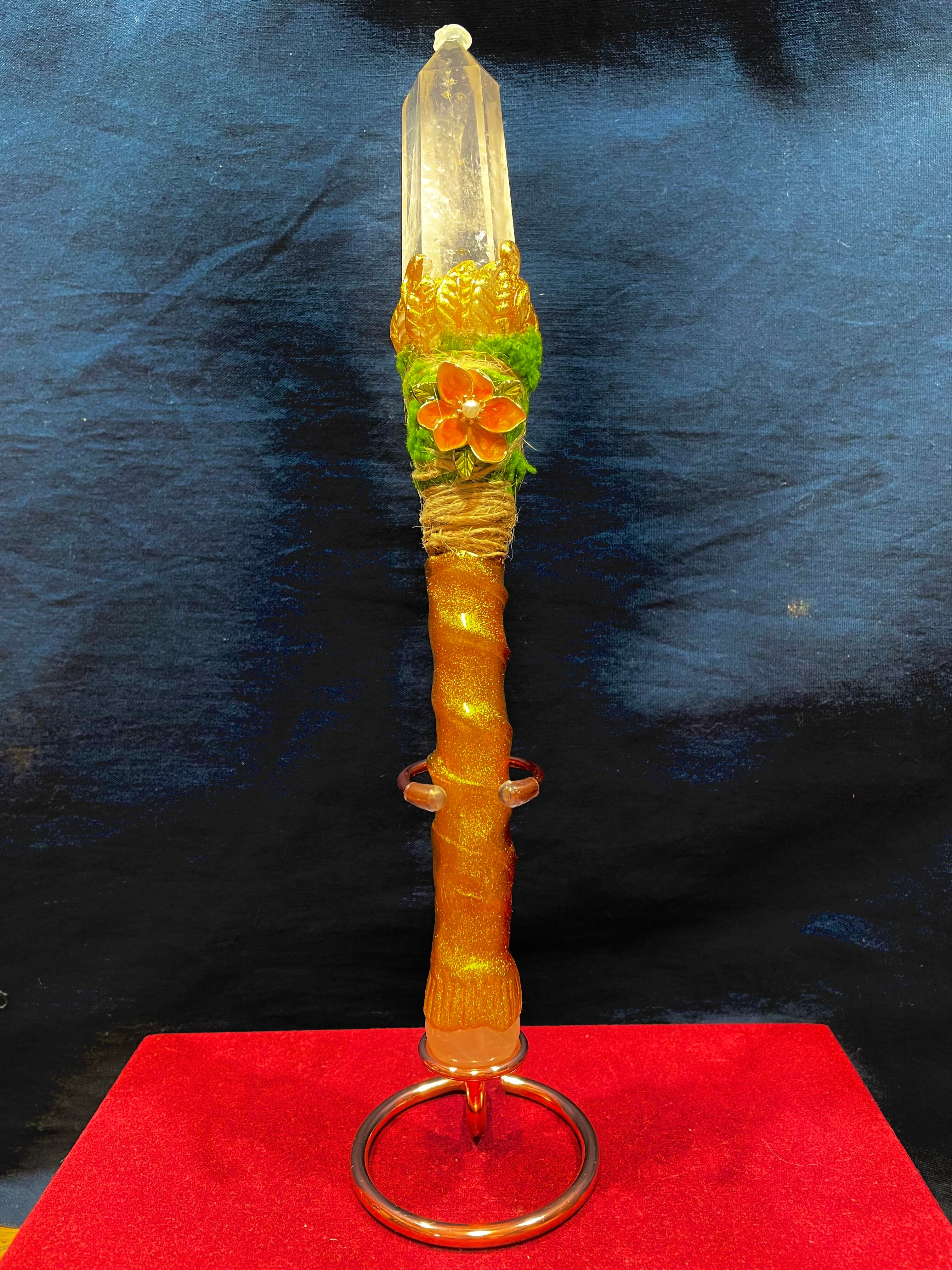 34) エネルギーを高める超アイテム!「アート・クリスタルワンド」ハンドメイド(台座付)