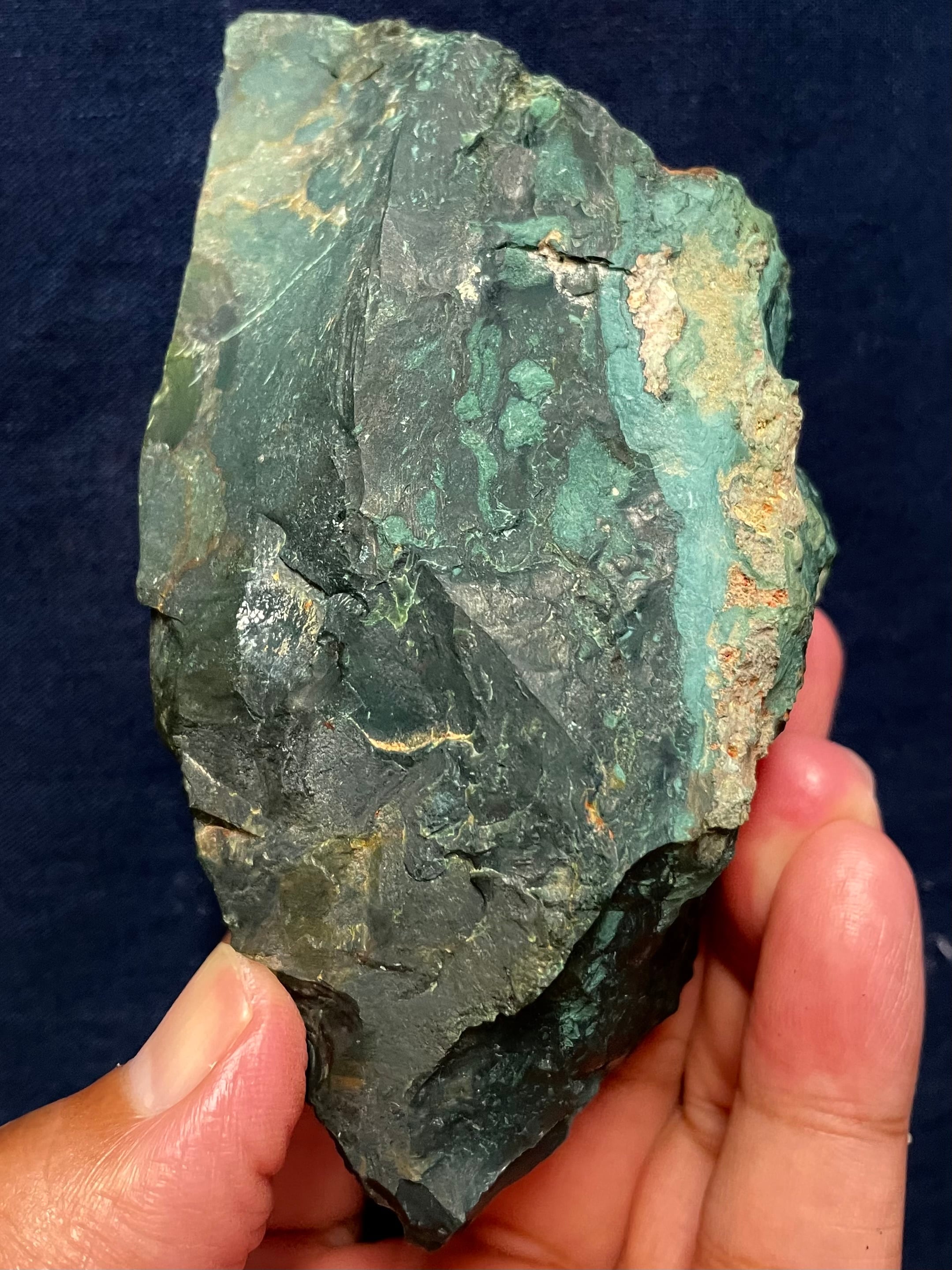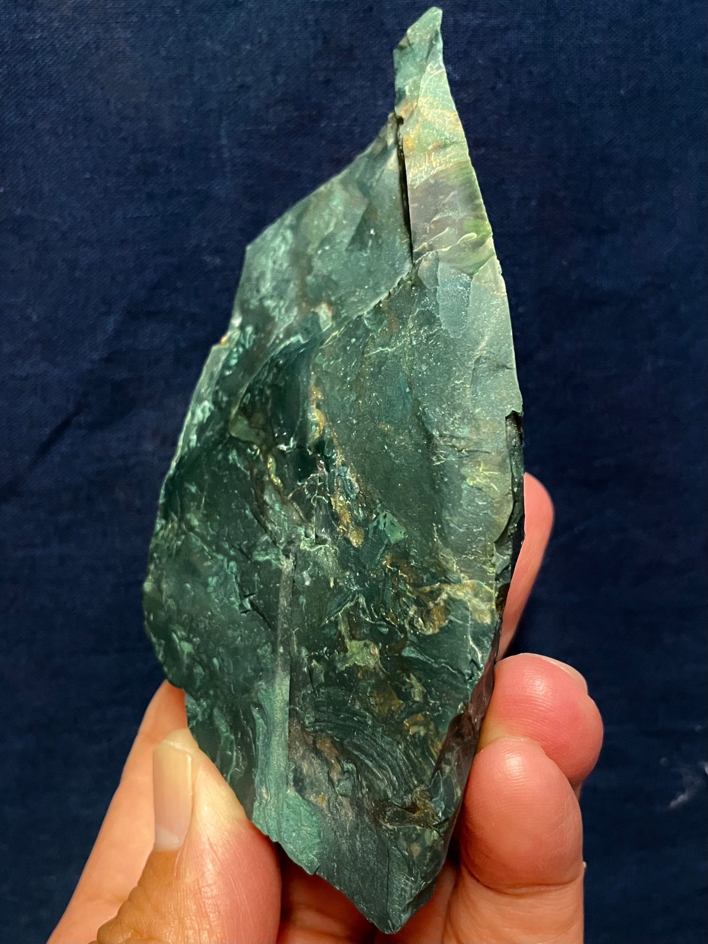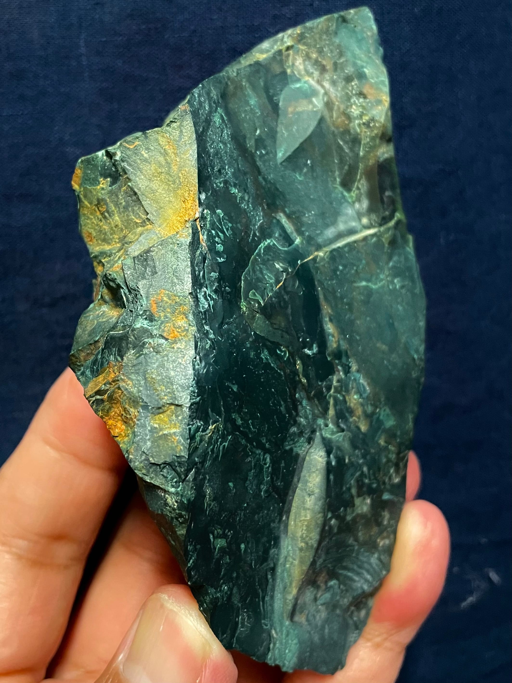 勾玉、ペンダント、ビーズブレスレットなどの加工に活用されるレベルの深濃緑の原石です。