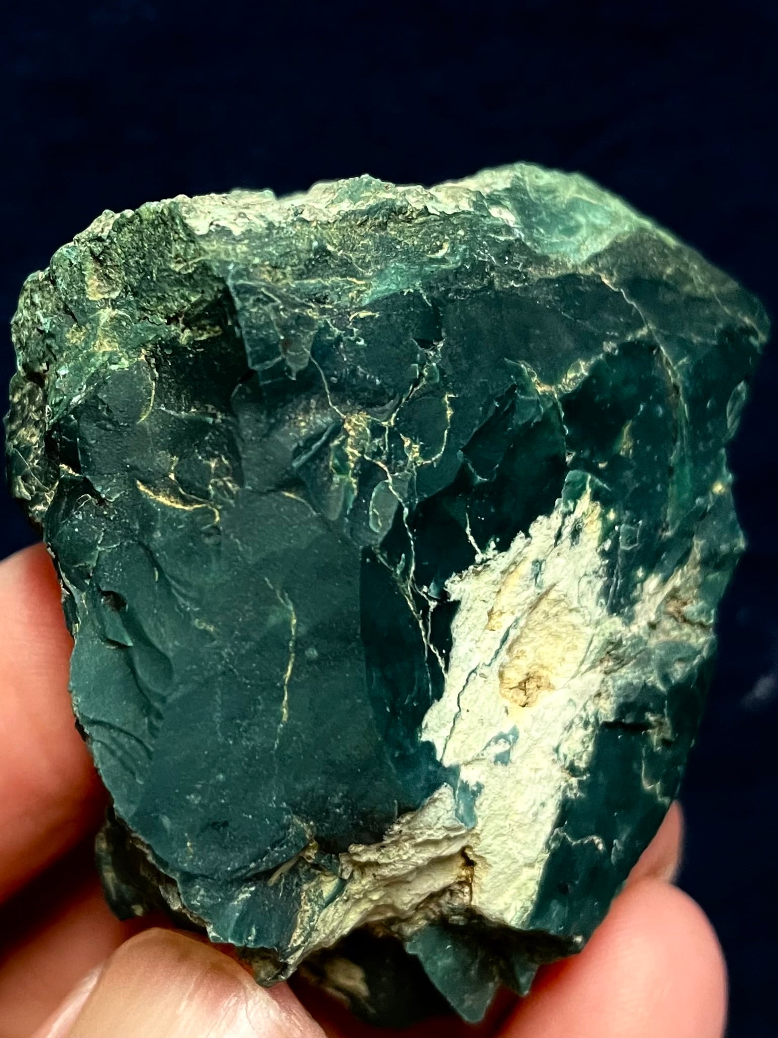 勾玉、ペンダント、ビーズブレスレットなどの加工に活用されるレベルの深濃緑の原石です。