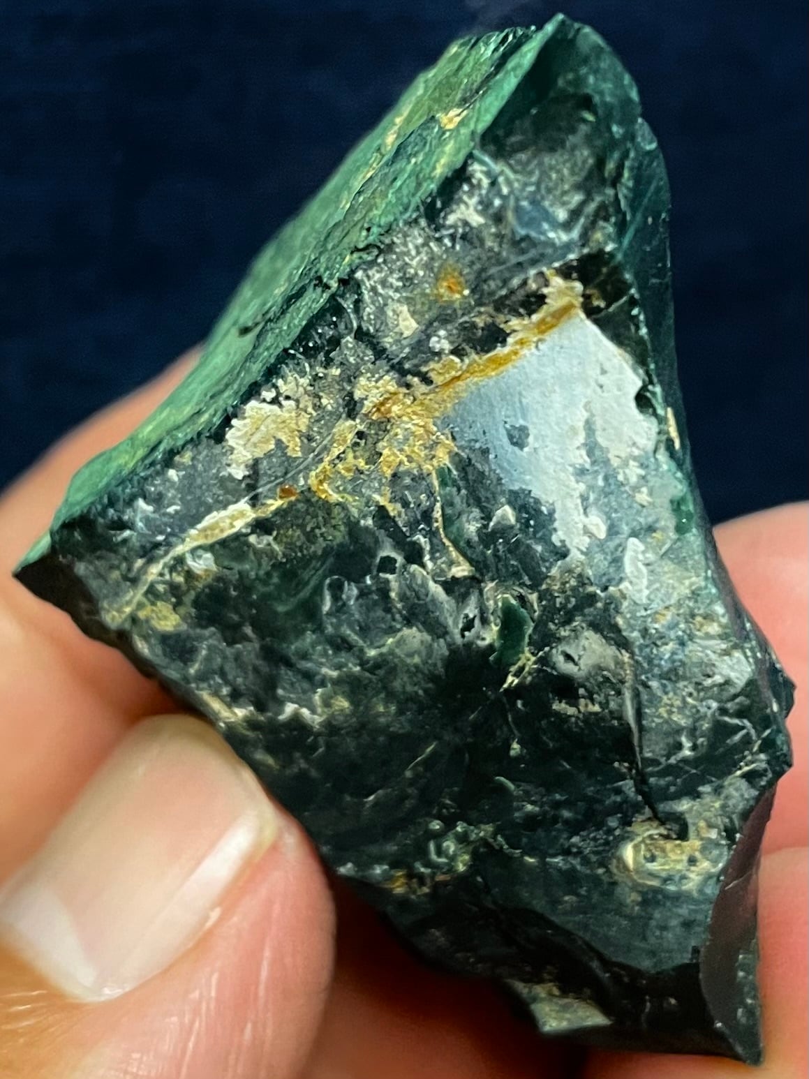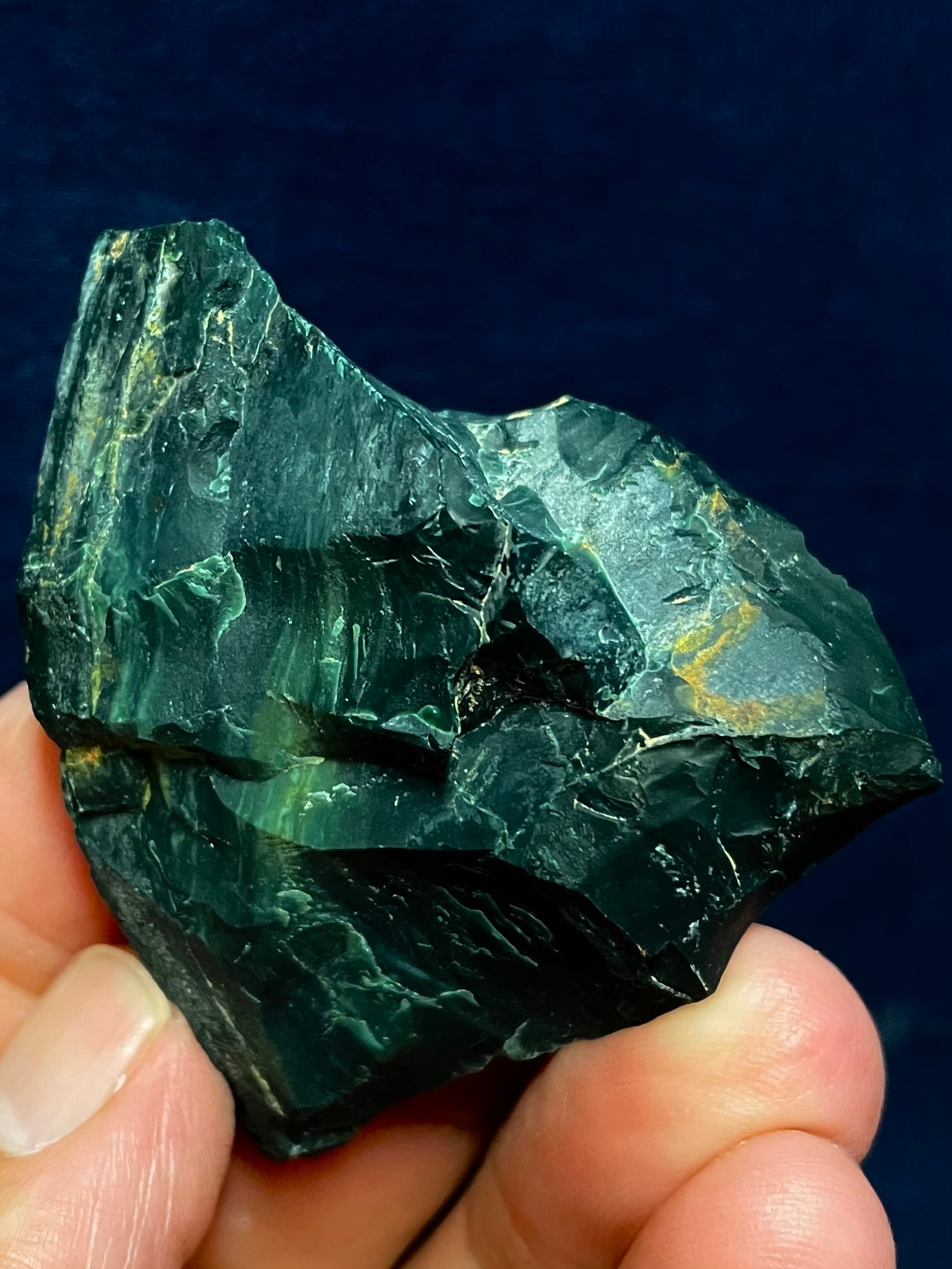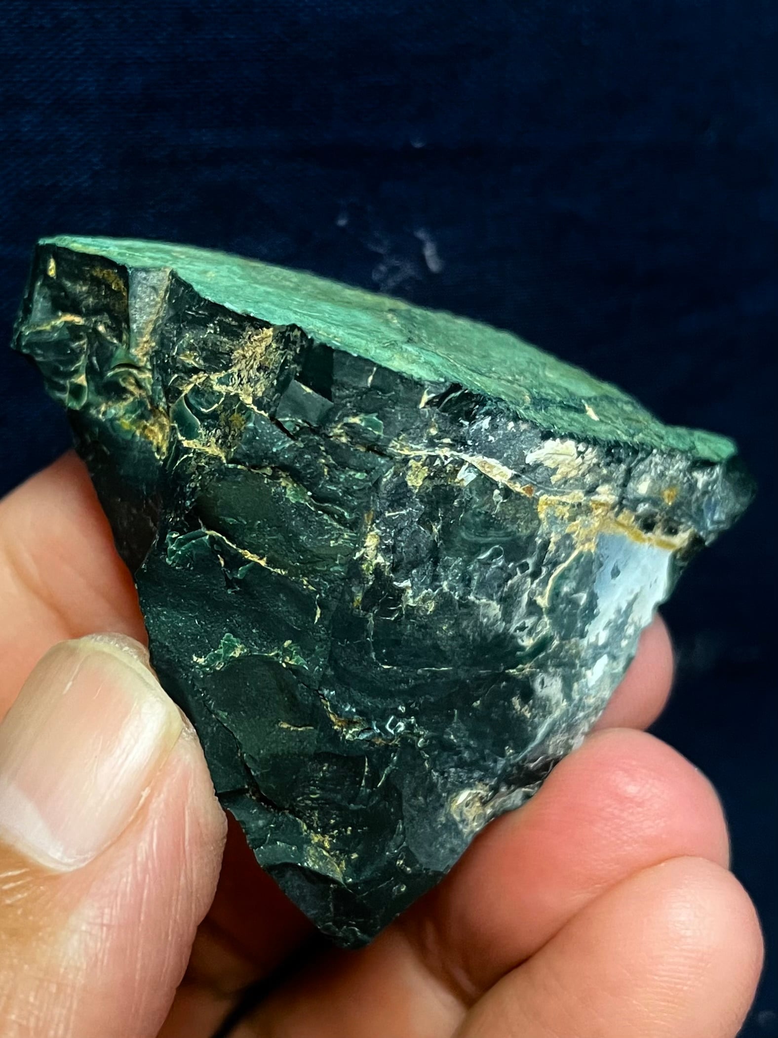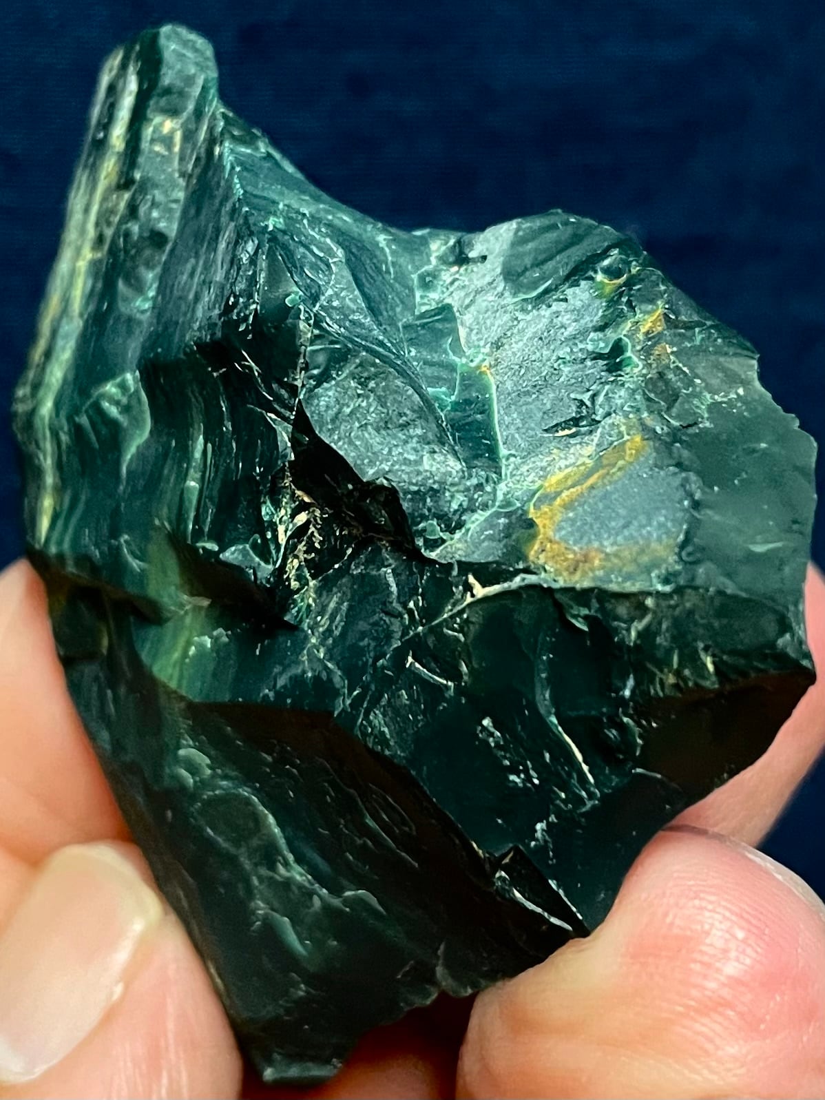 勾玉、ペンダント、ビーズブレスレットなどの加工に活用されるレベルの深濃緑の原石です。