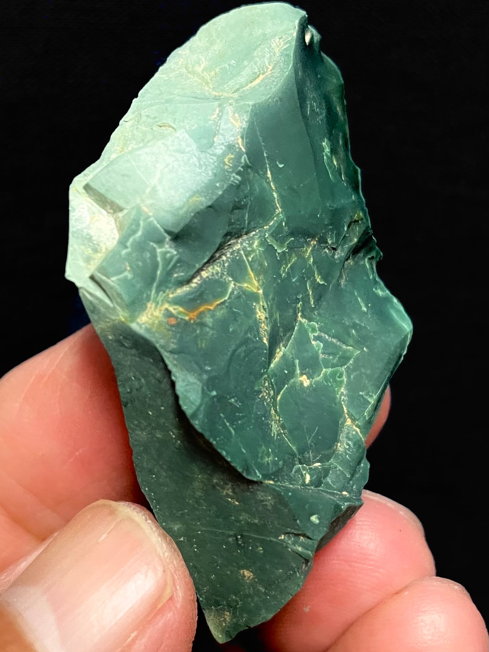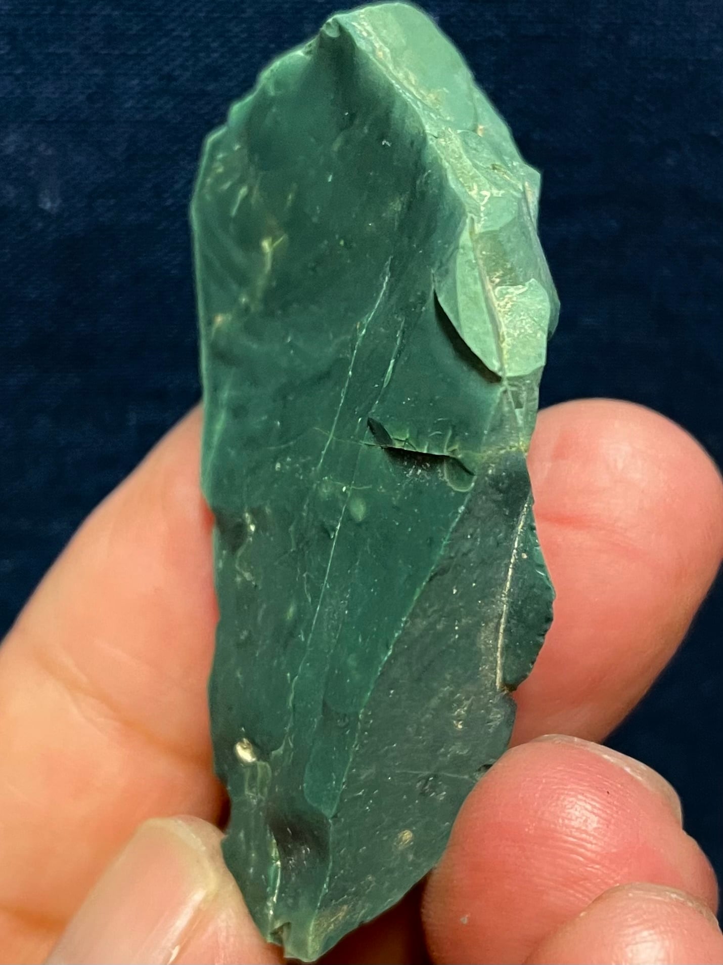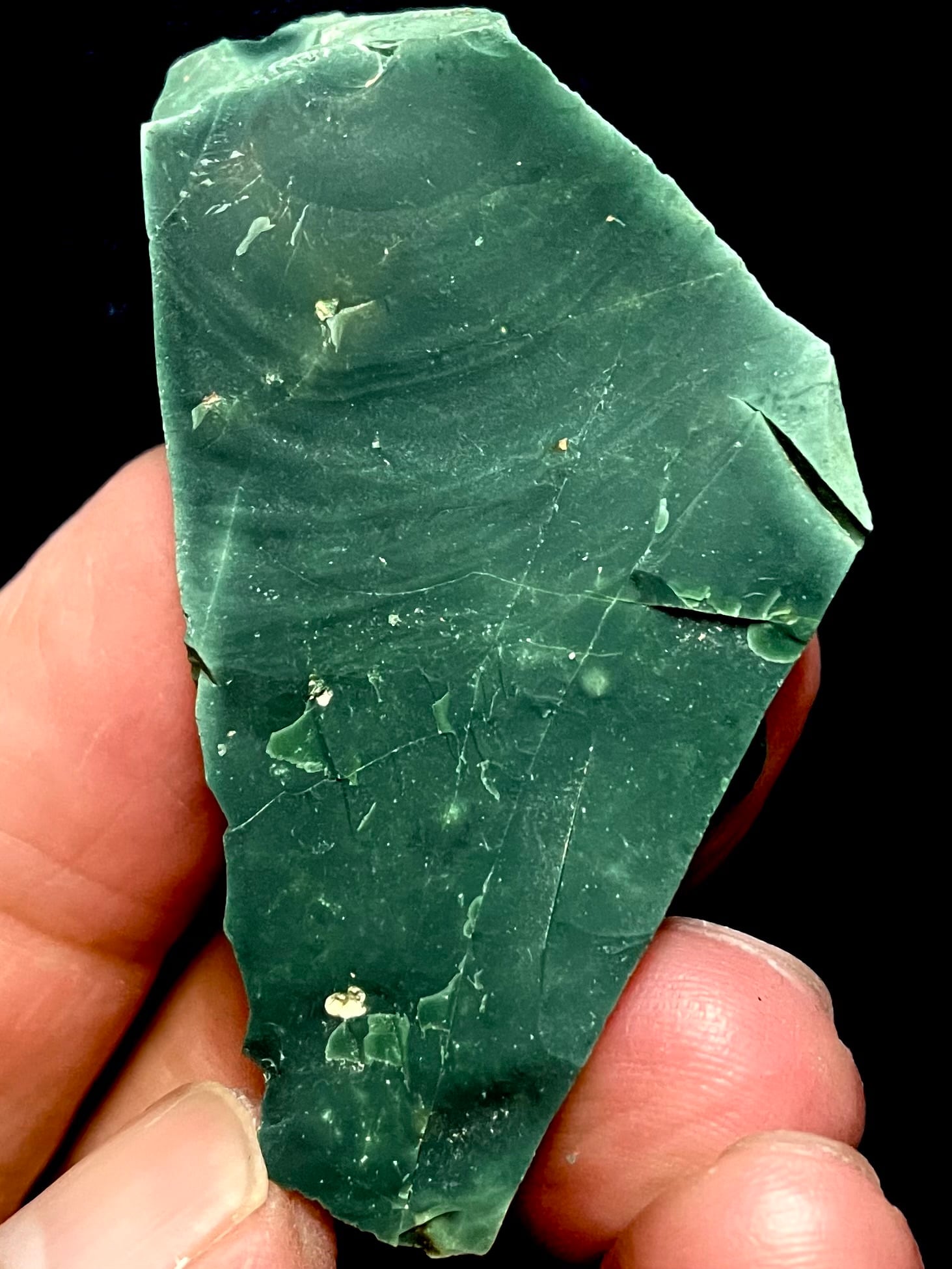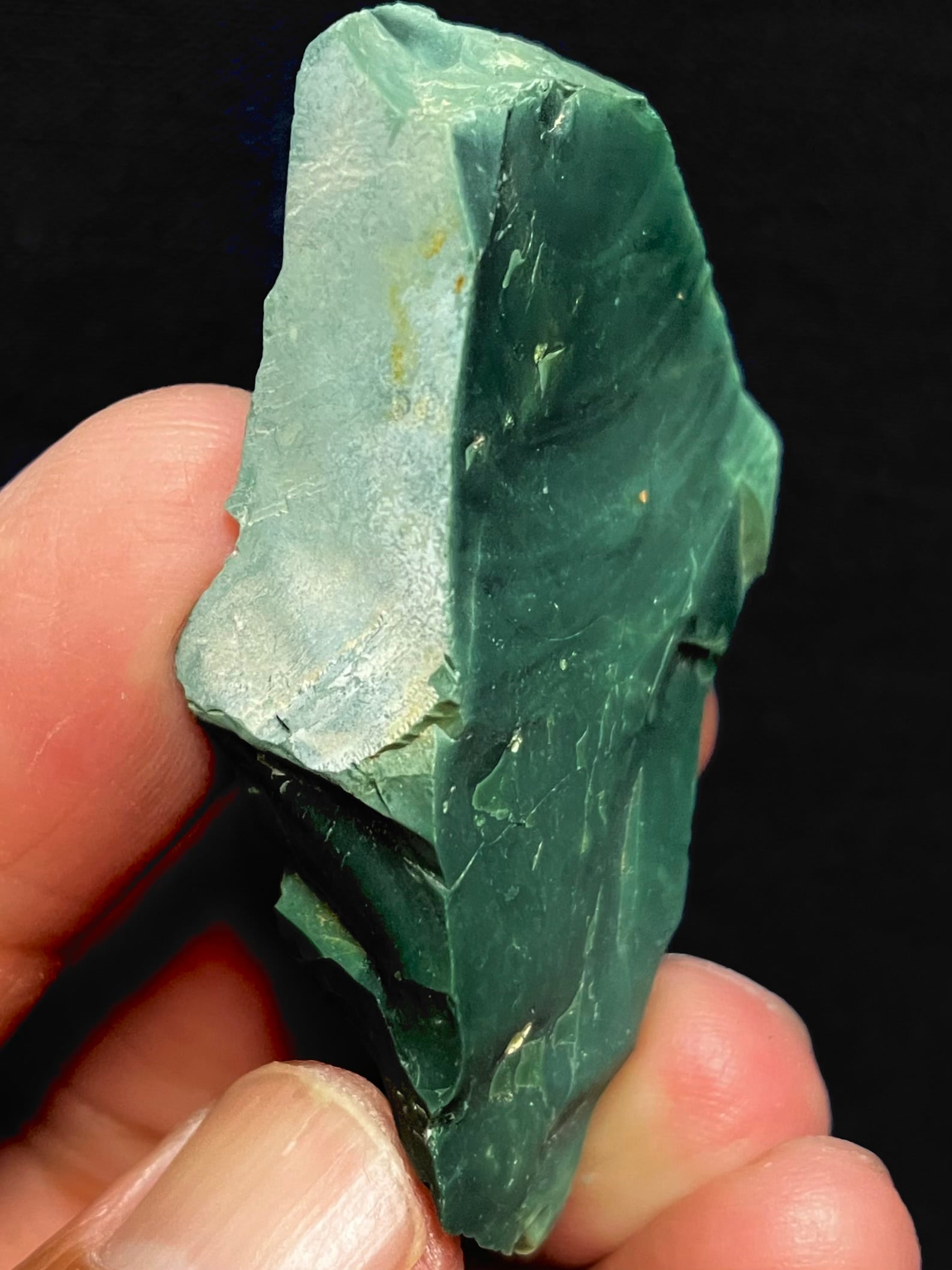 勾玉、ペンダント、ビーズブレスレットなどの加工に活用されるレベルの深濃緑の原石です。