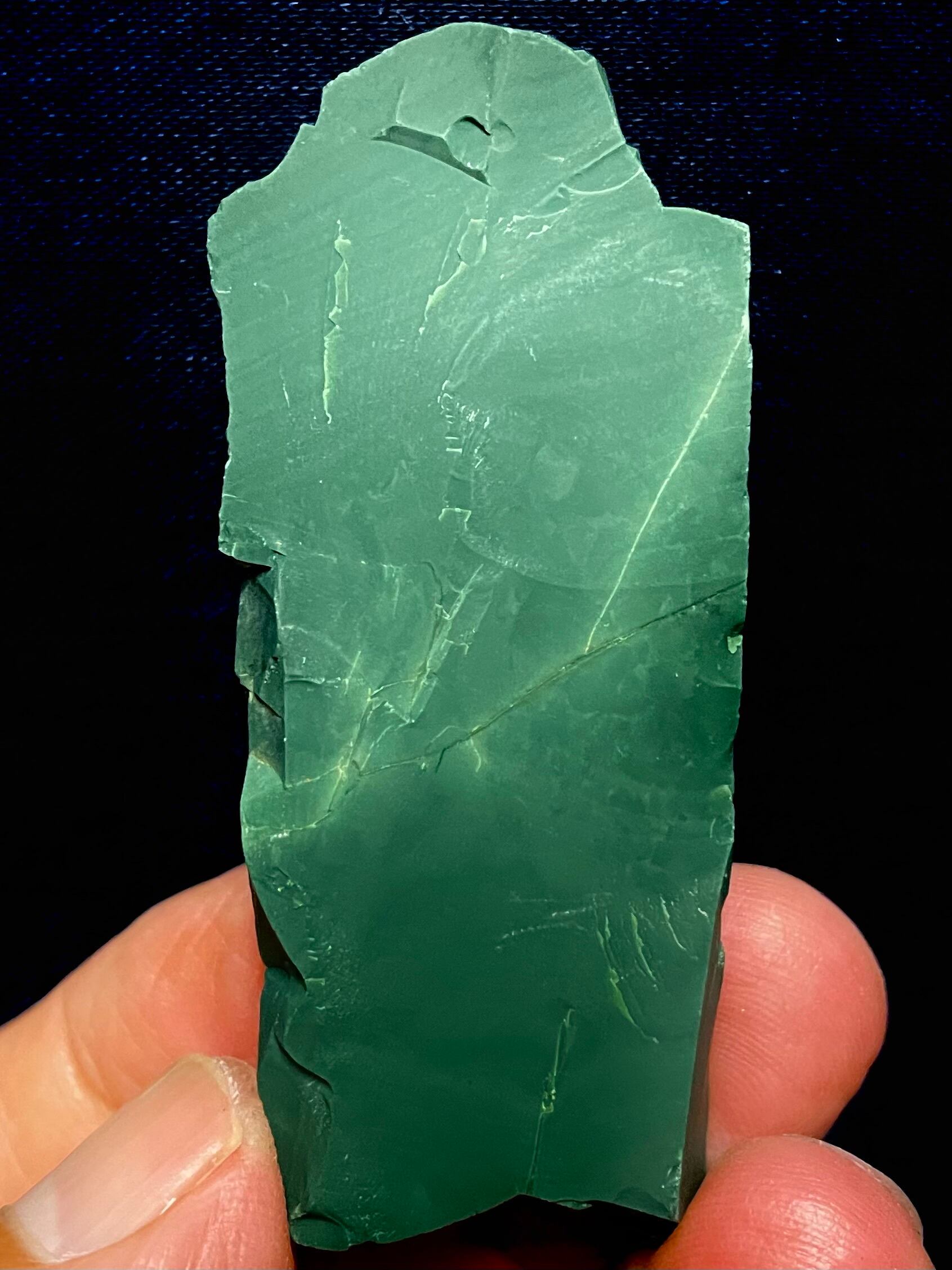 勾玉、ペンダント、ビーズブレスレットなどの加工に活用されるレベルの深濃緑の原石です。
