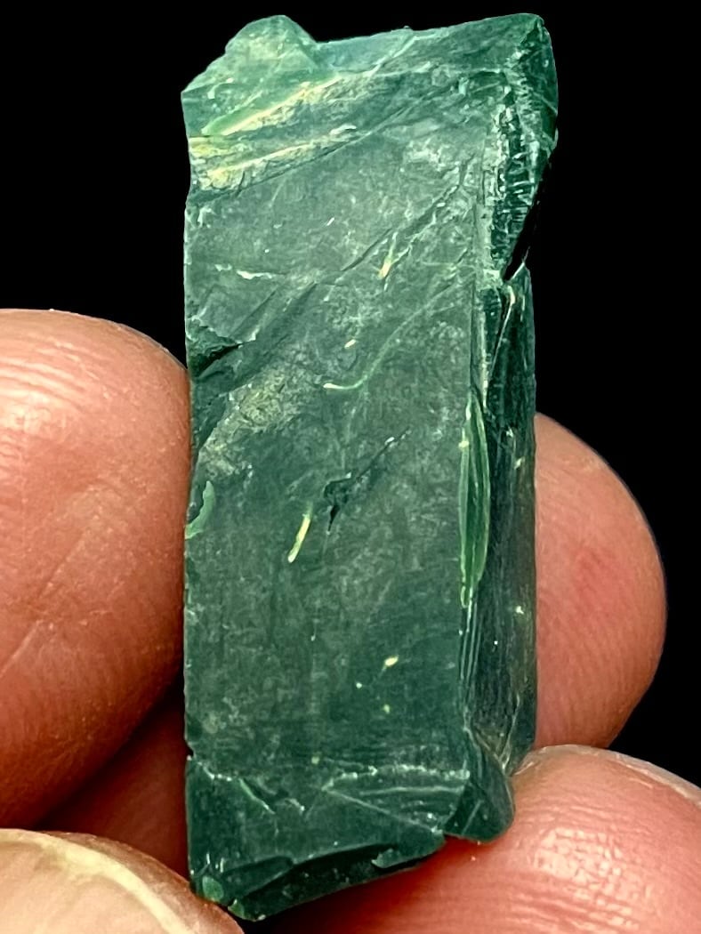 勾玉、ペンダント、ビーズブレスレットなどの加工に活用されるレベルの深濃緑の原石です。