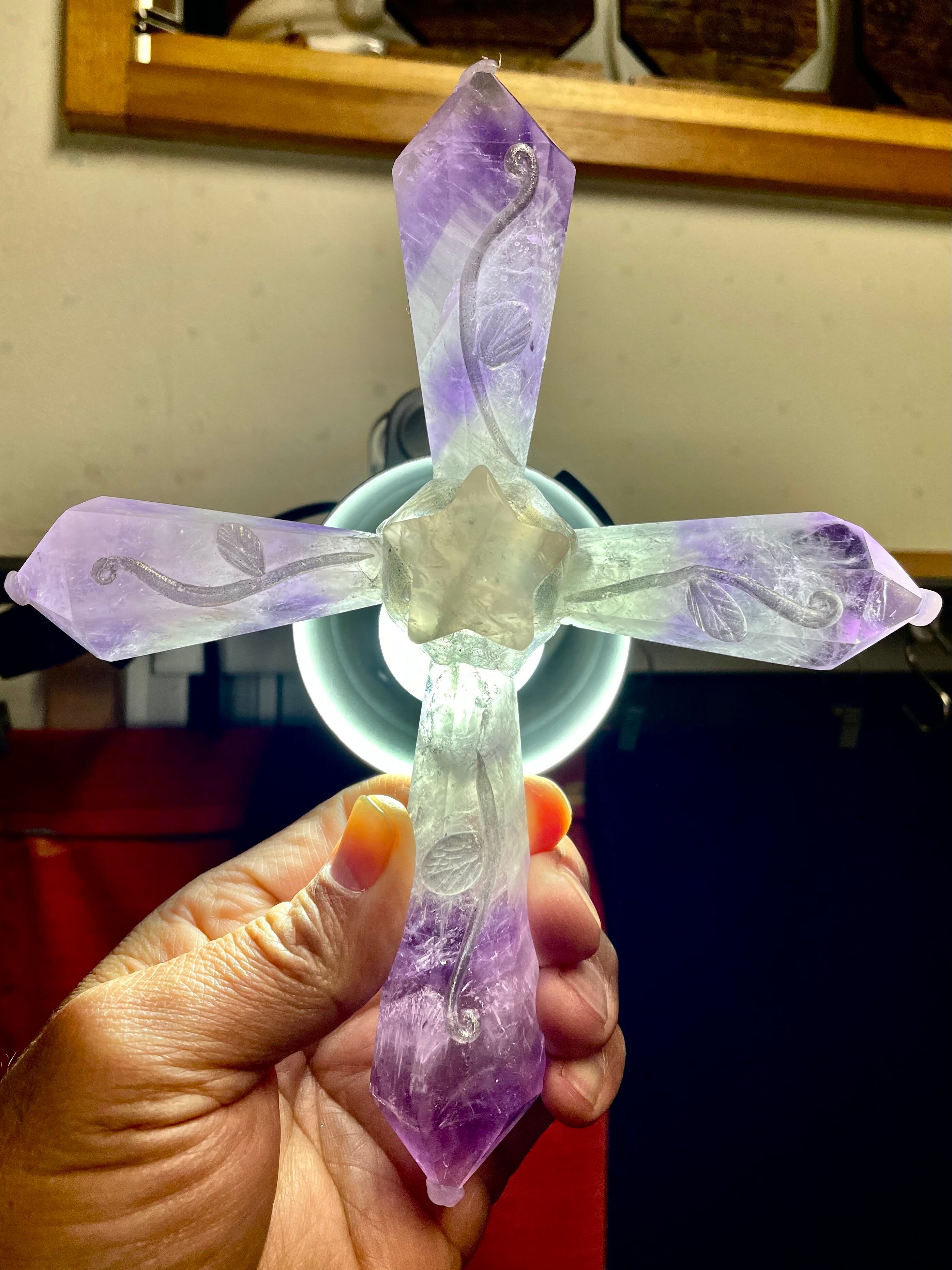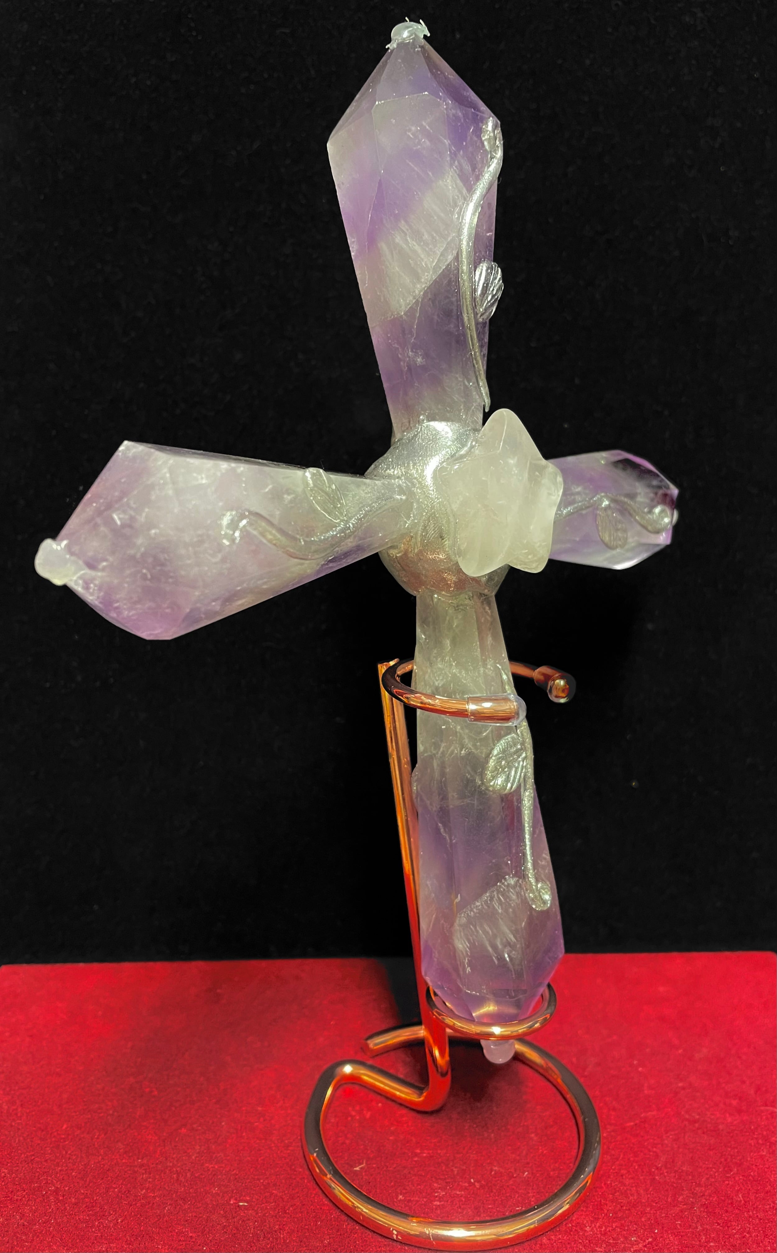 1) 愛と平和のアメジスト・クロス!「アート・クリスタルワンド」ハンドメイド(台座付)