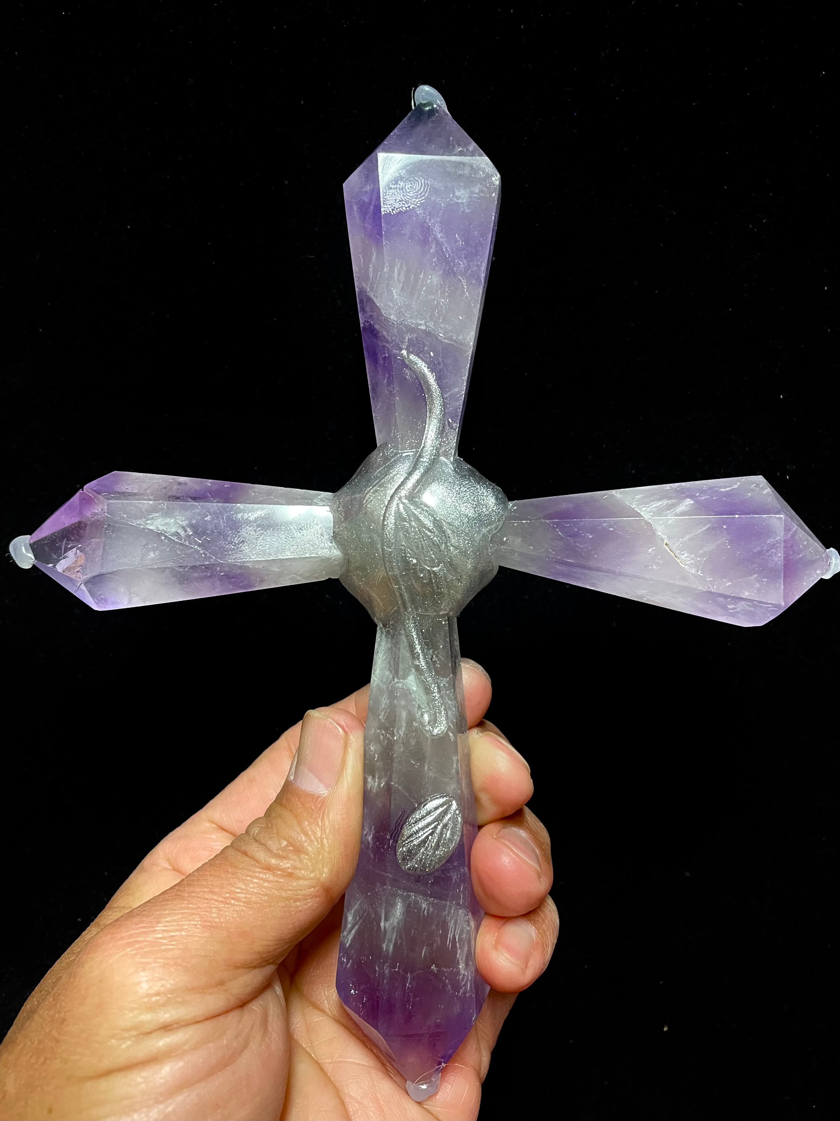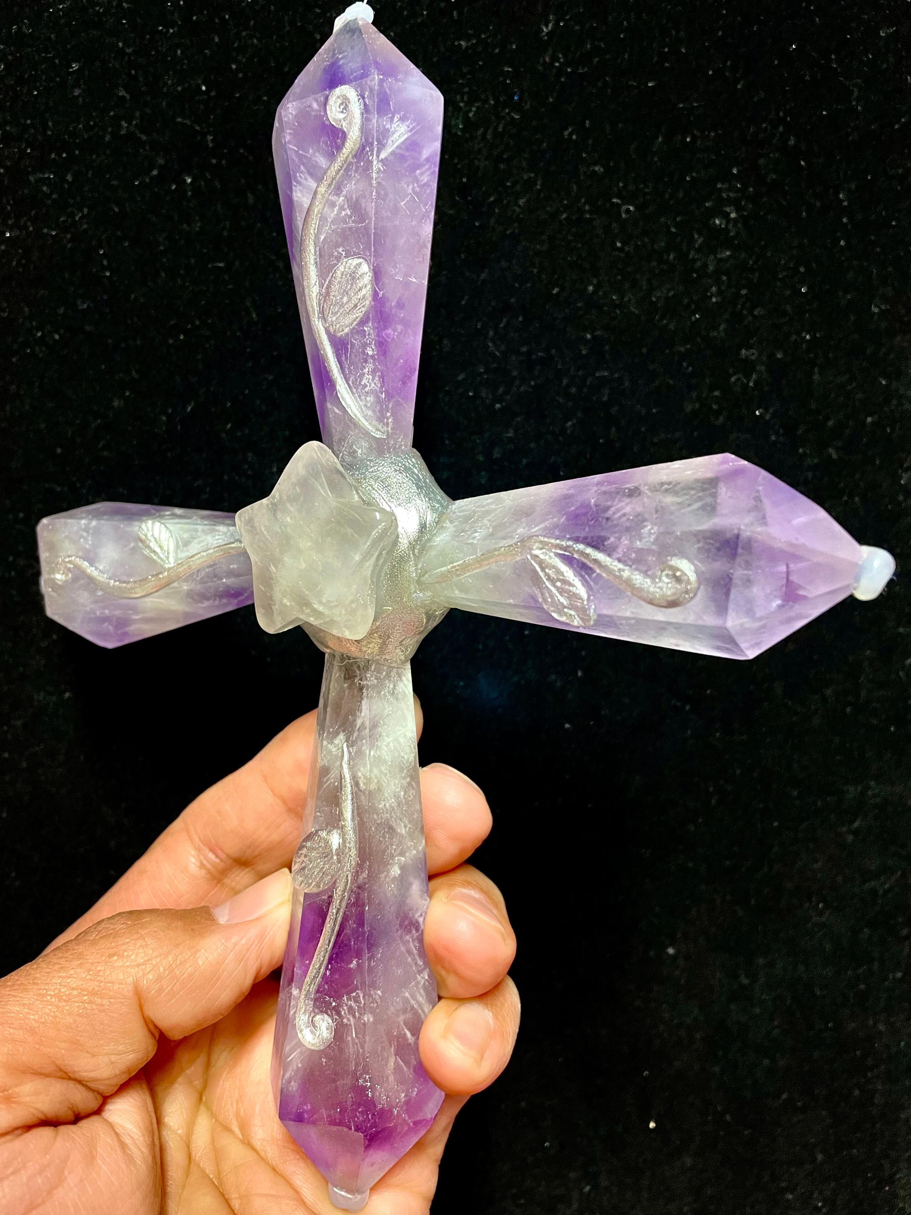 美しいアメジストを使用したハンドメイドのアート・クリスタルワンド「クロス」。