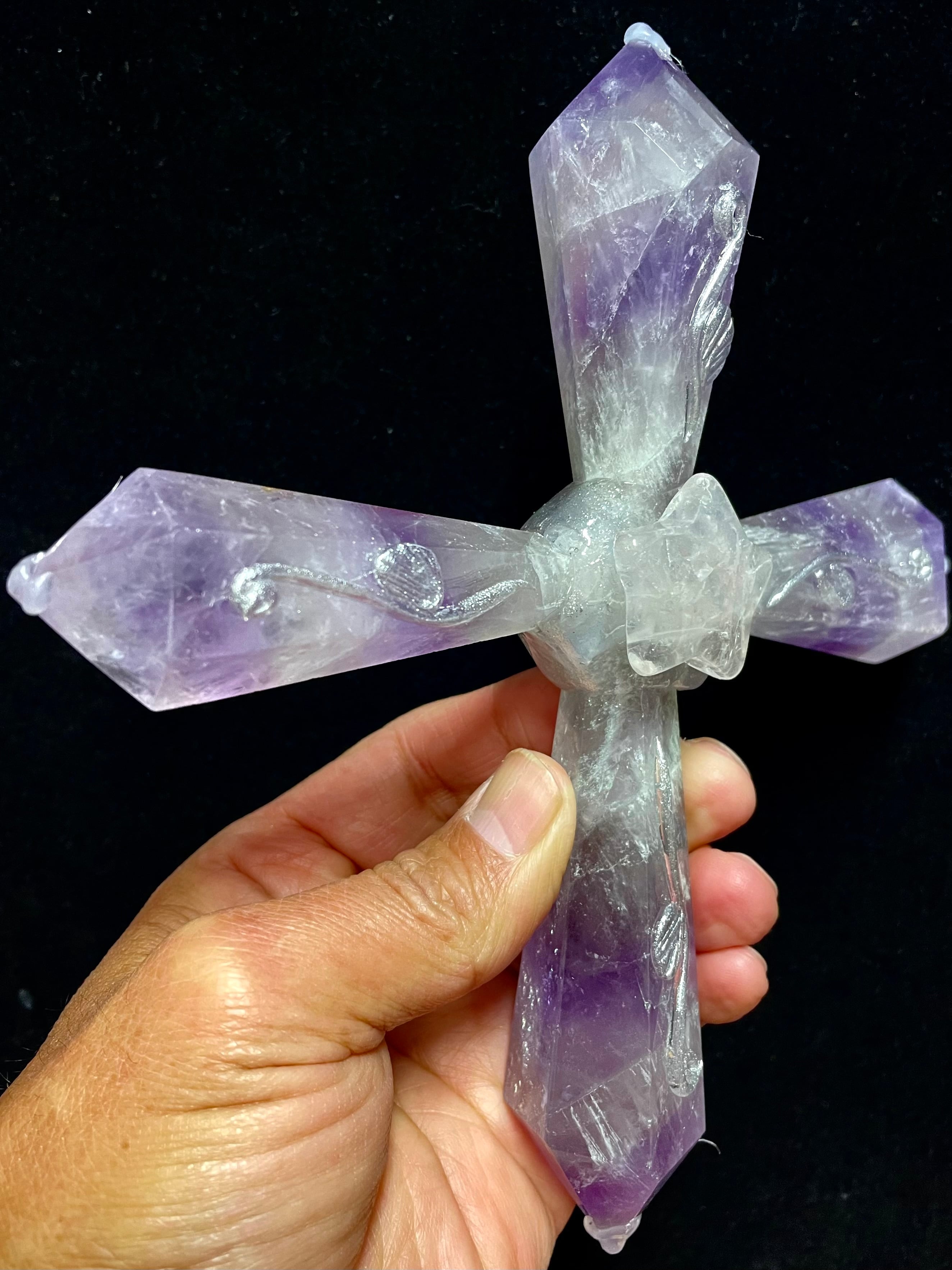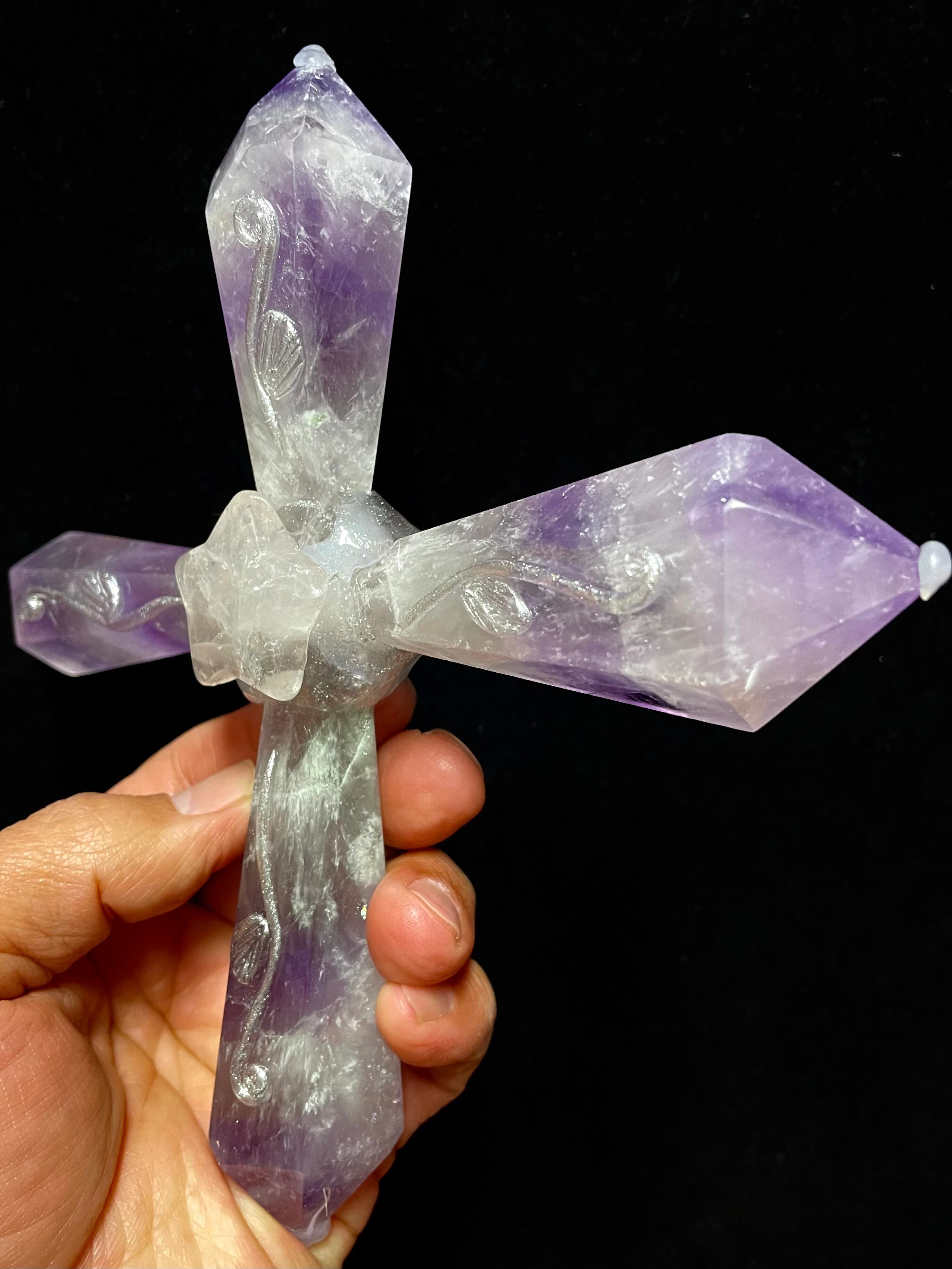 美しいアメジストを使用したハンドメイドのアート・クリスタルワンド「クロス」。
