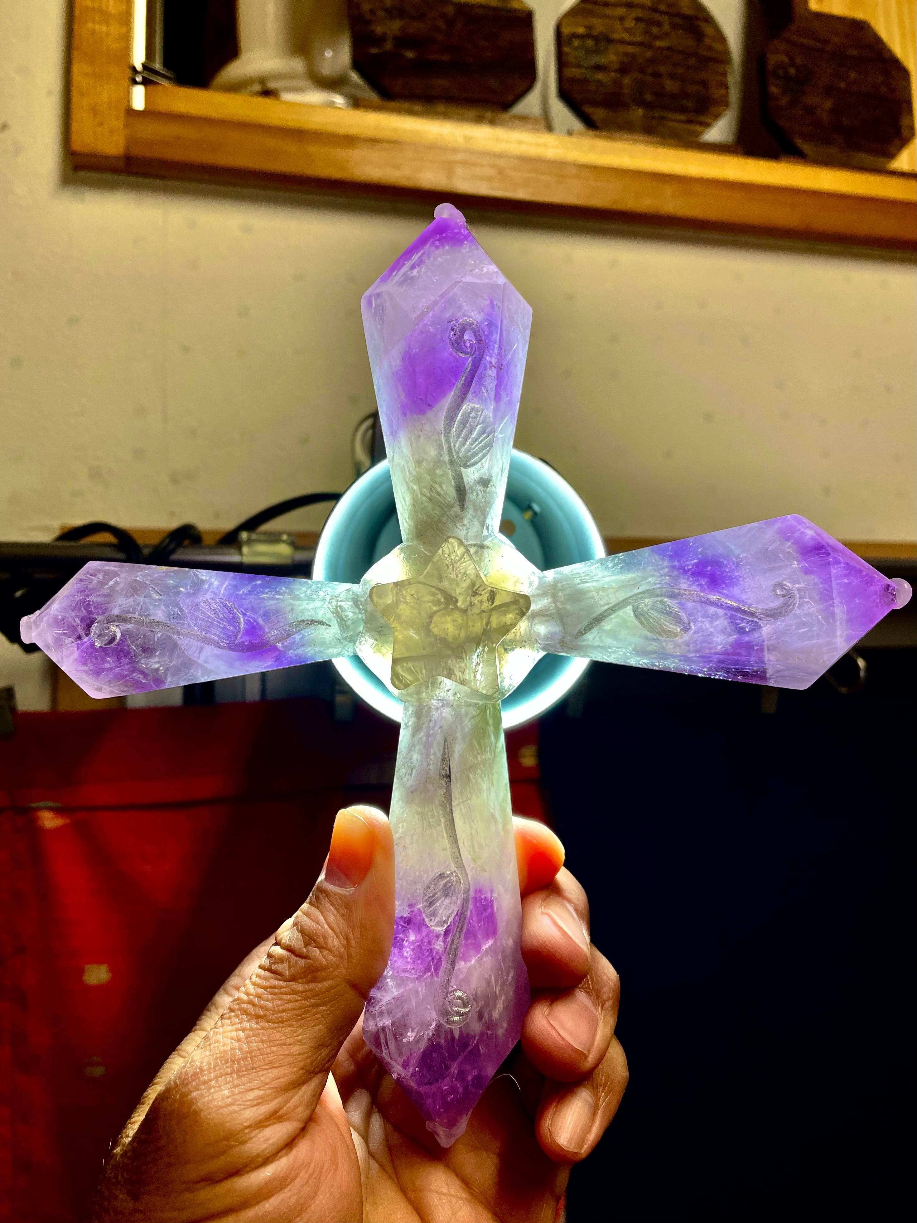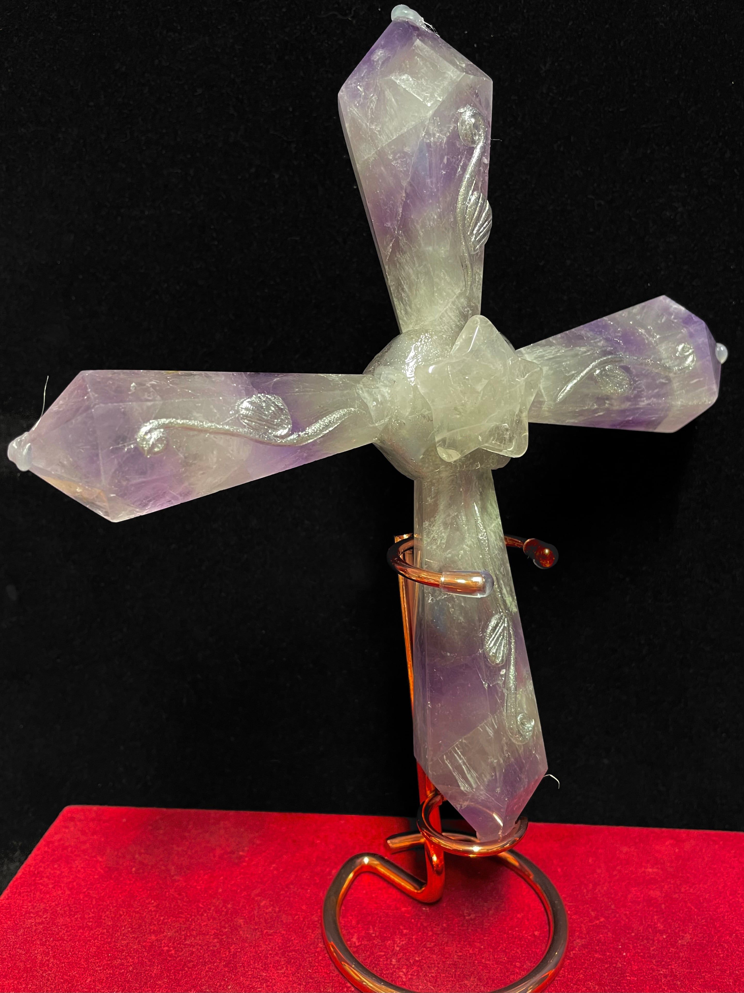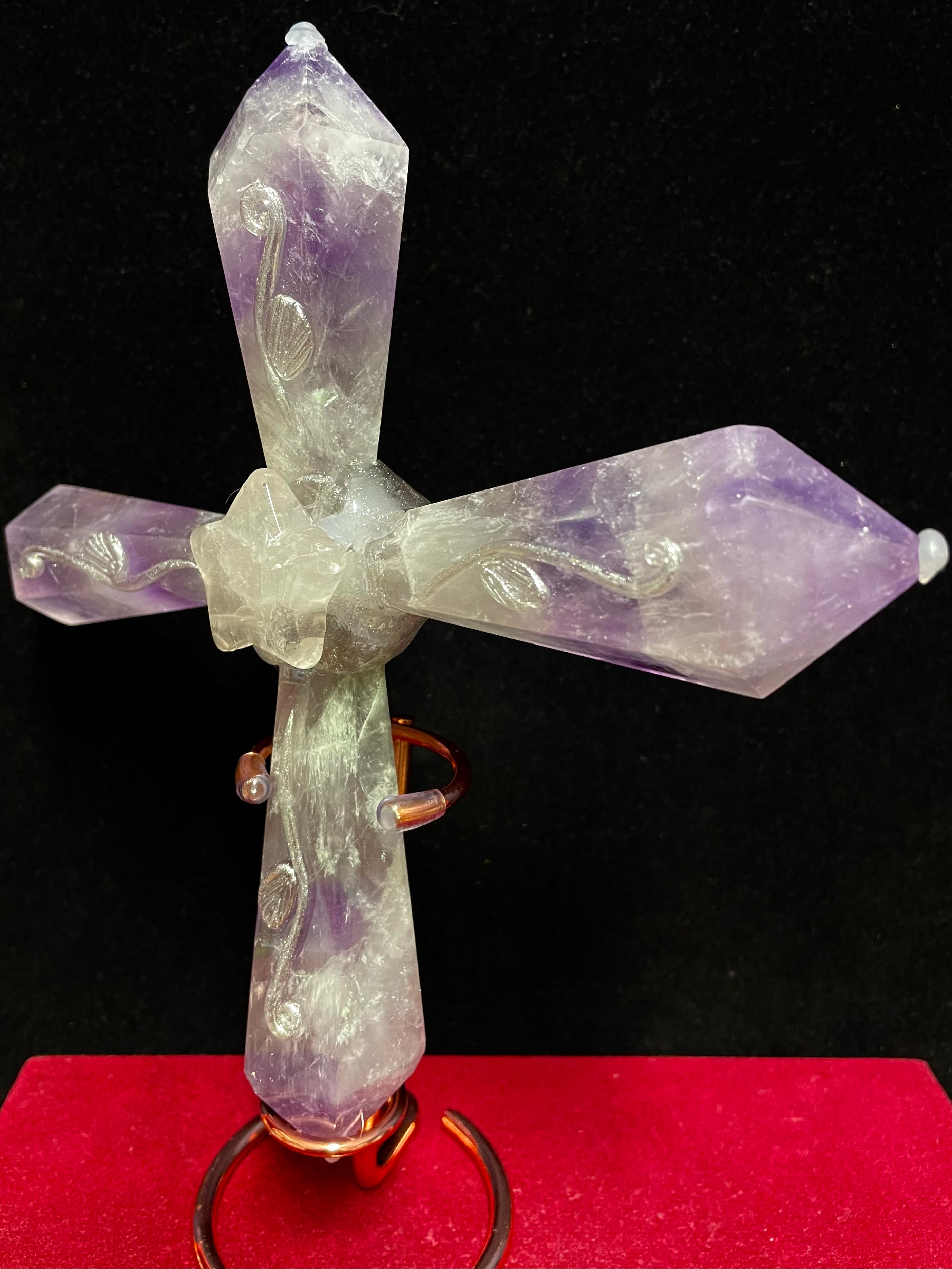 2) 愛と平和のアメジスト・クロス!「アート・クリスタルワンド」ハンドメイド(台座付)